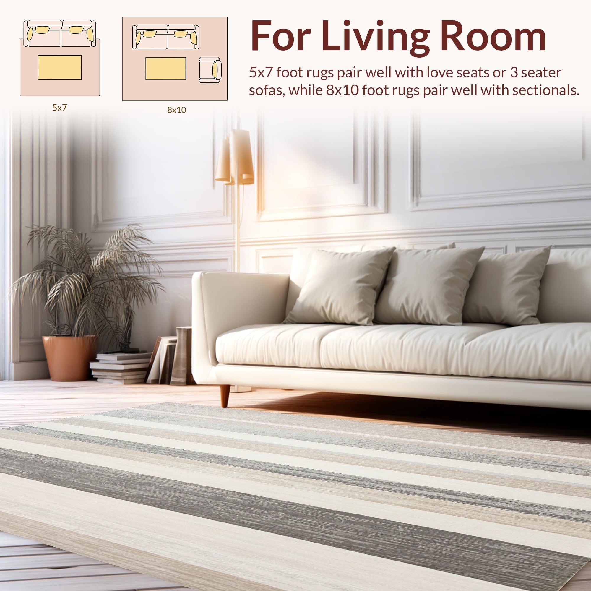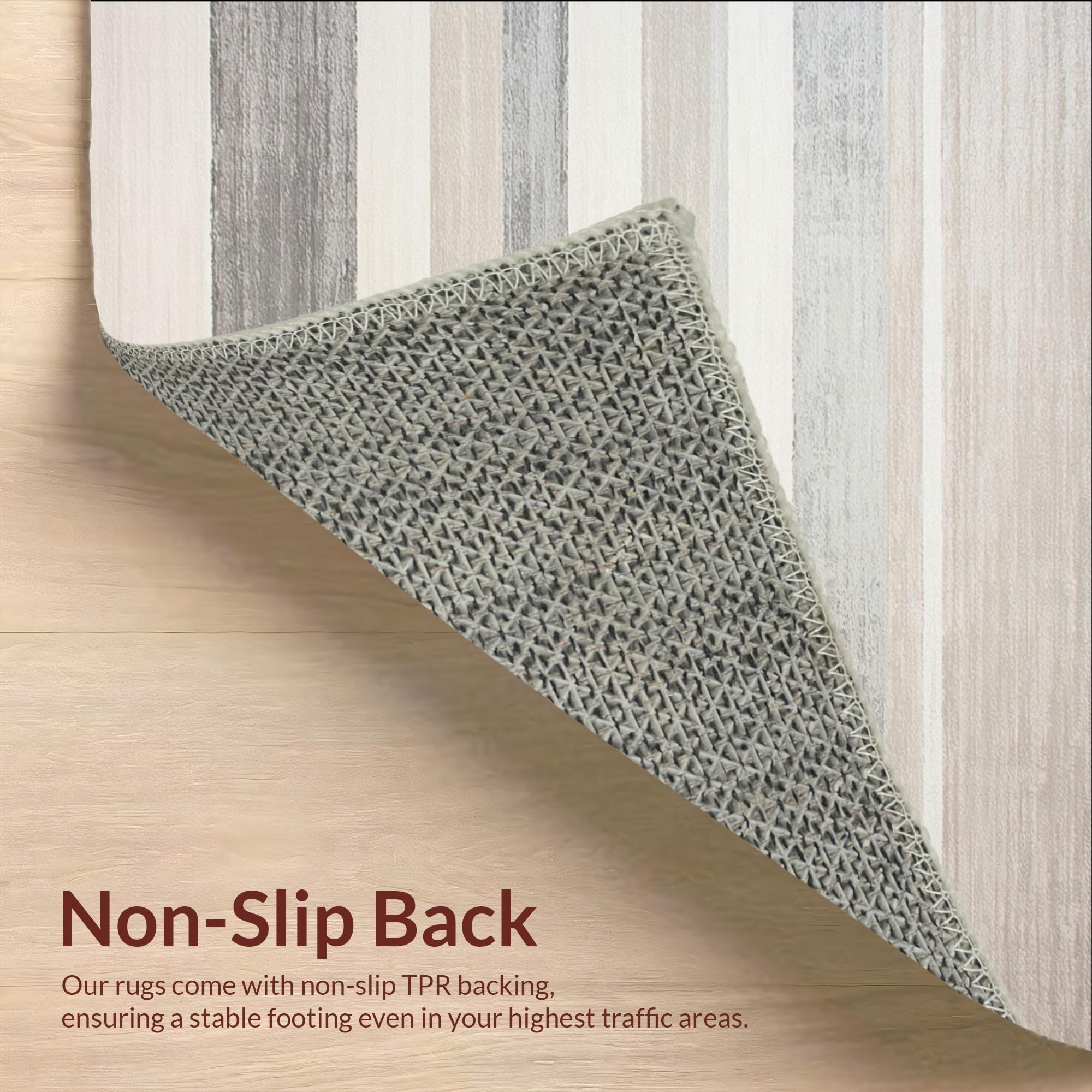 Ultra Soft Area Rug, Non Slip, Stain Resistant, Washable Area Rugs for Living Room, Bedroom, Contemporary Striped Area Runner With Distressed Beige and Slate Accents(Beige) Overview: