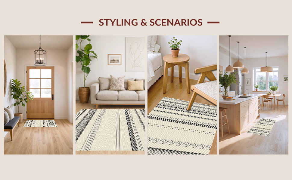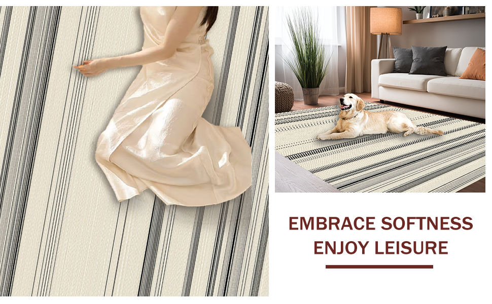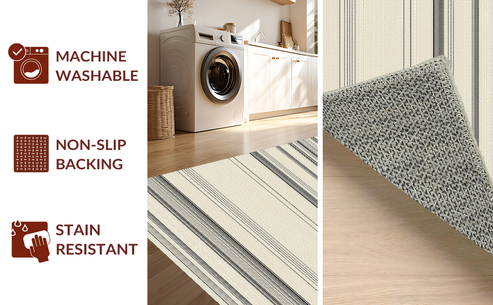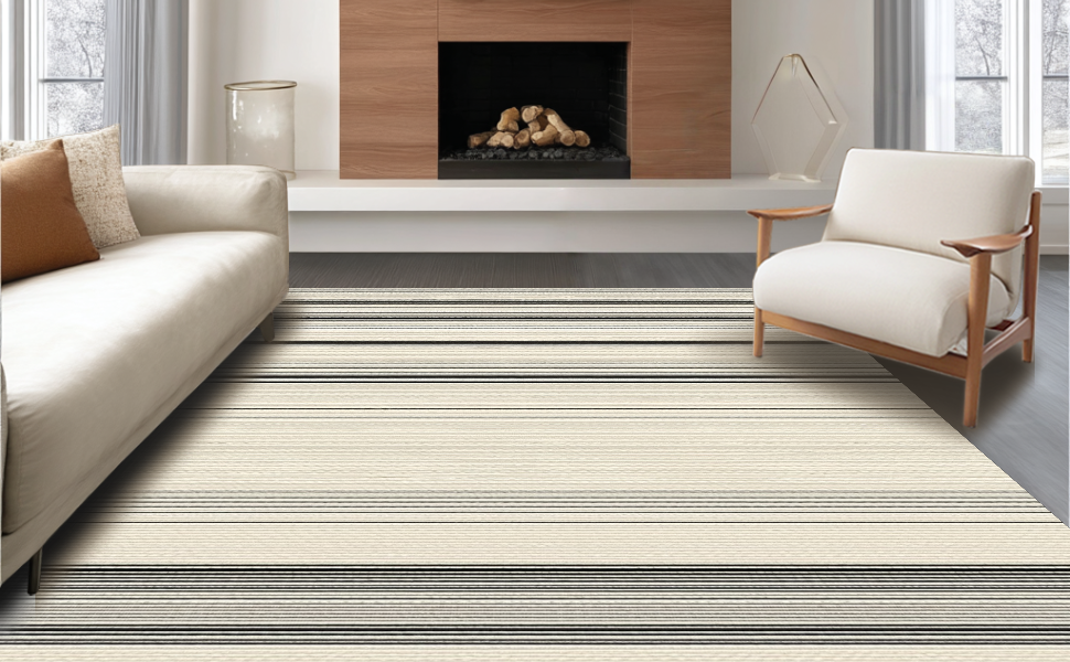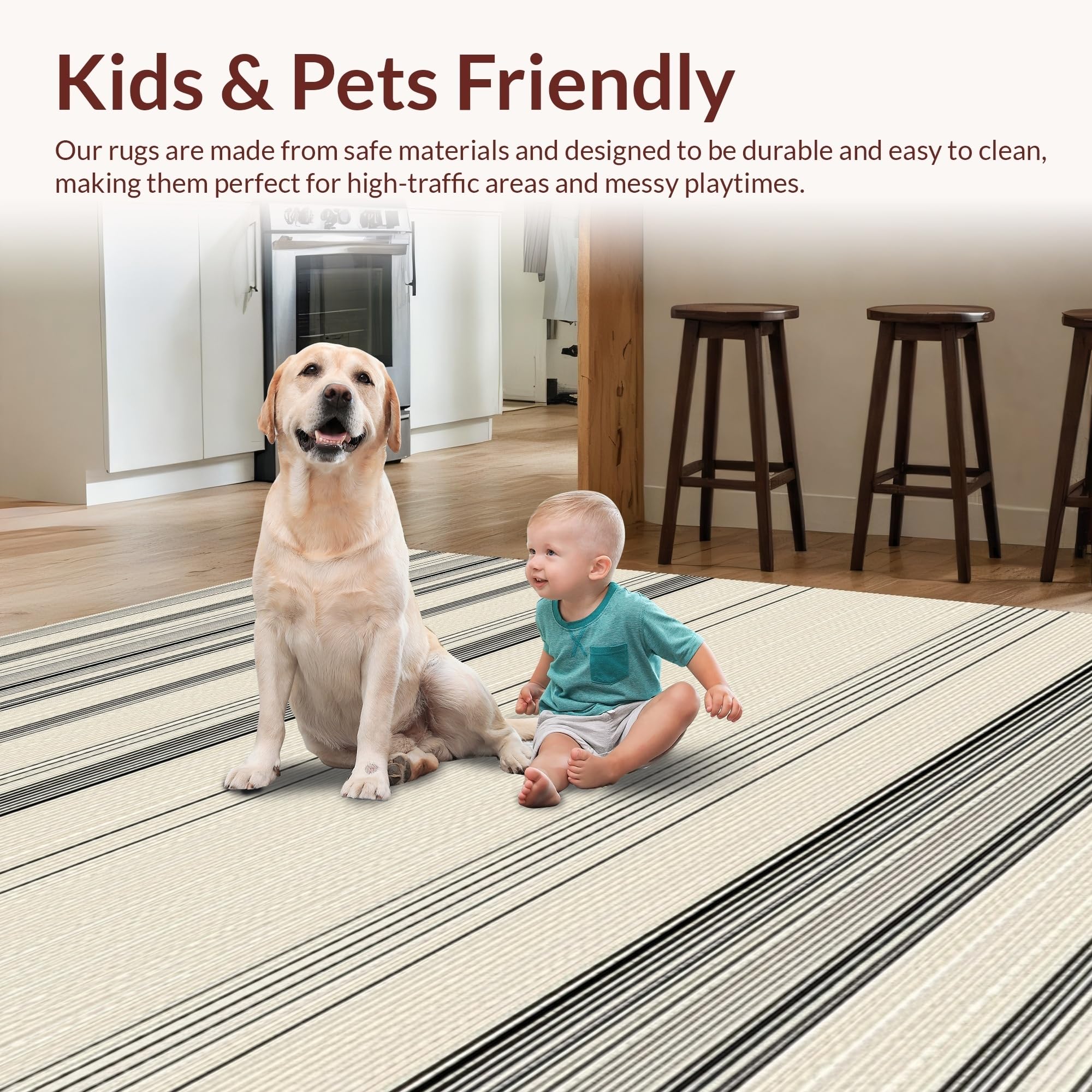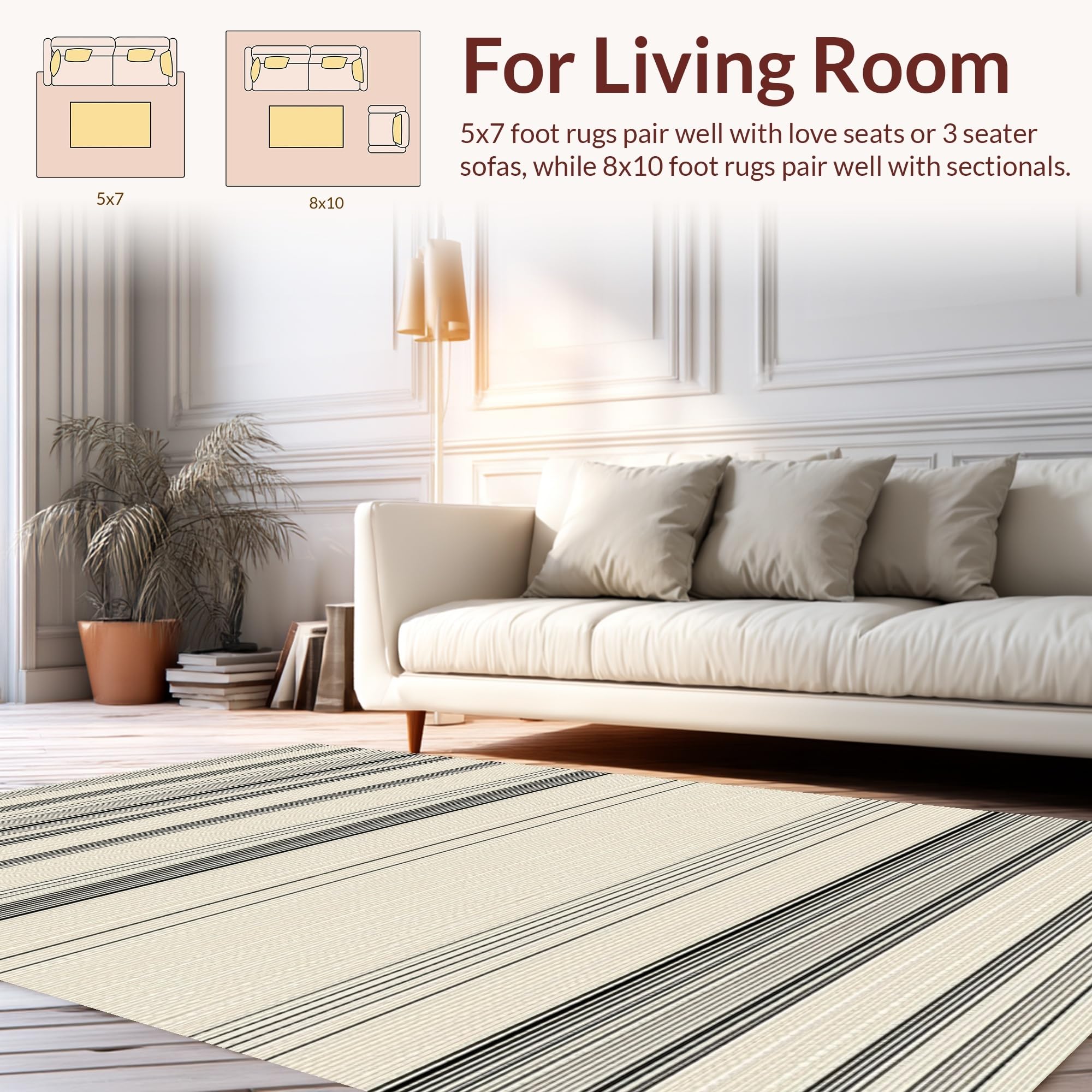 Ultra Soft Area Rug, Non Slip, Stain Resistant, Washable Area Rugs for Living Room, Bedroom, Contemporary Striped Earthy Tones(Beige) Overview: