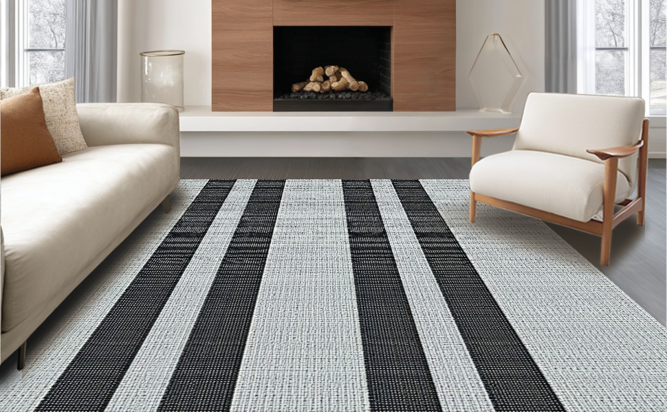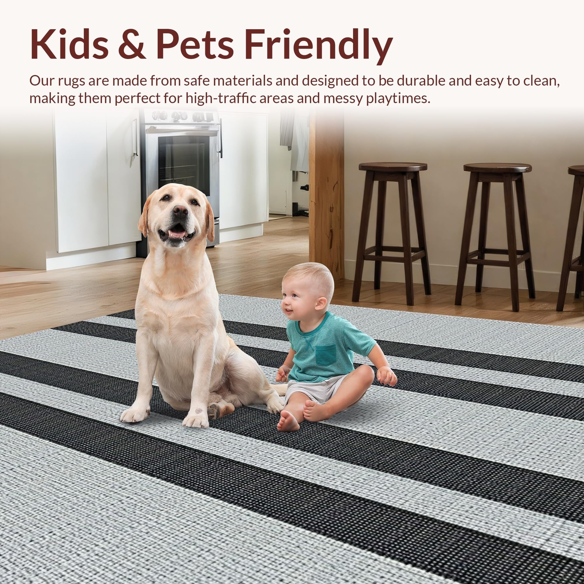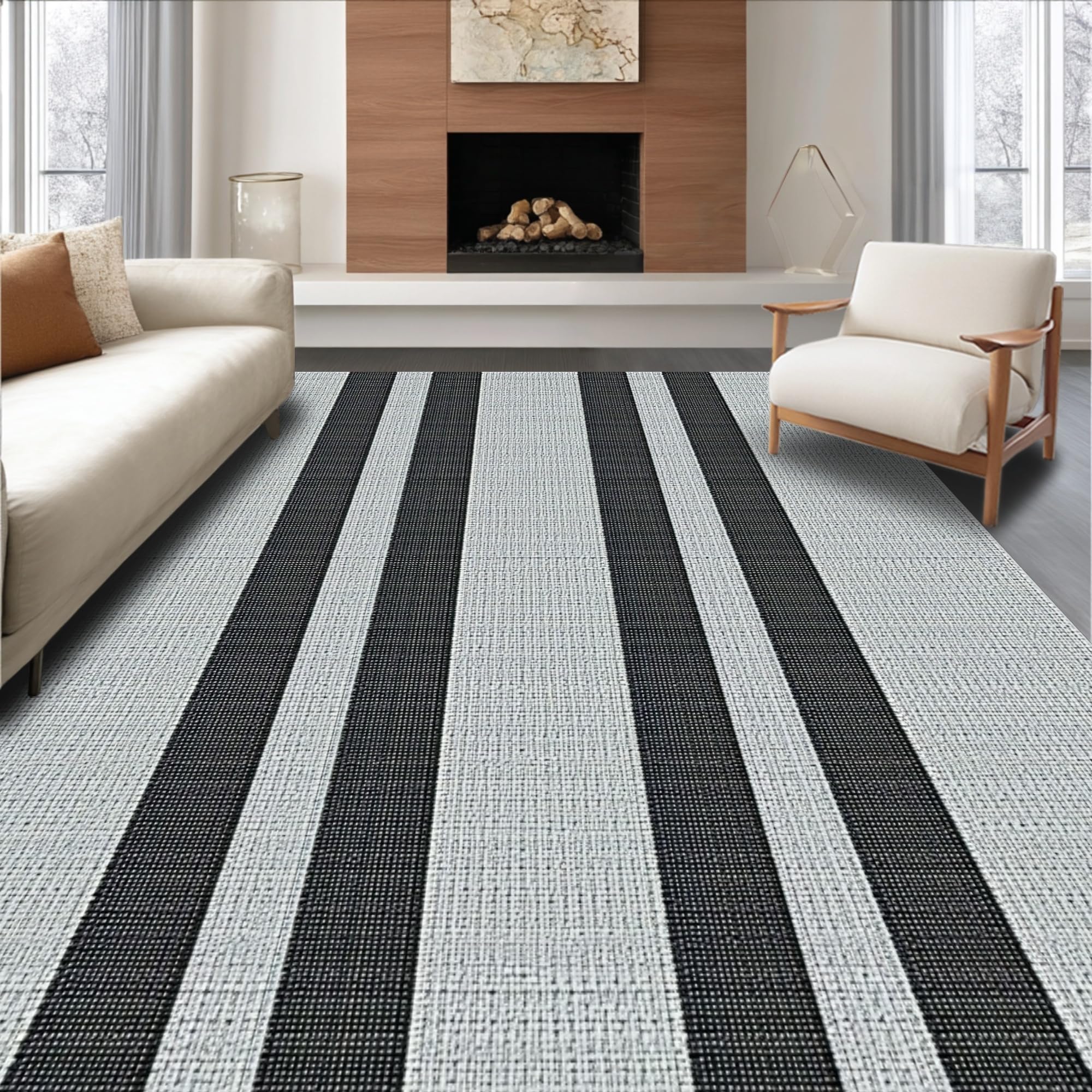 Ultra Soft Area Rug, Non Slip, Stain Resistant, Washable Area Rugs for Living Room, Bedroom, Contemporary Striped Monochrome Style(Black) Overview: