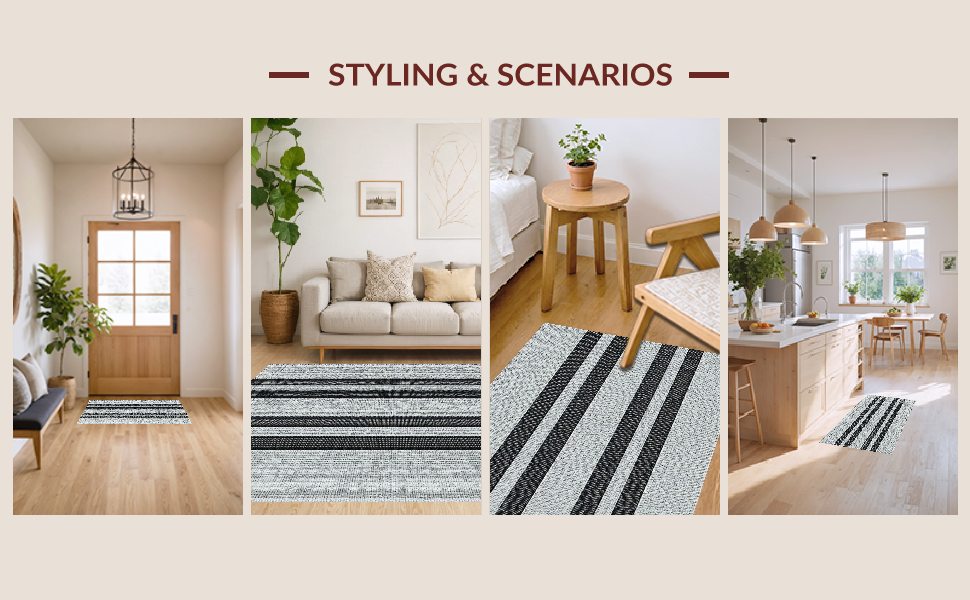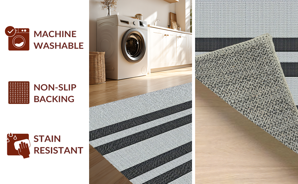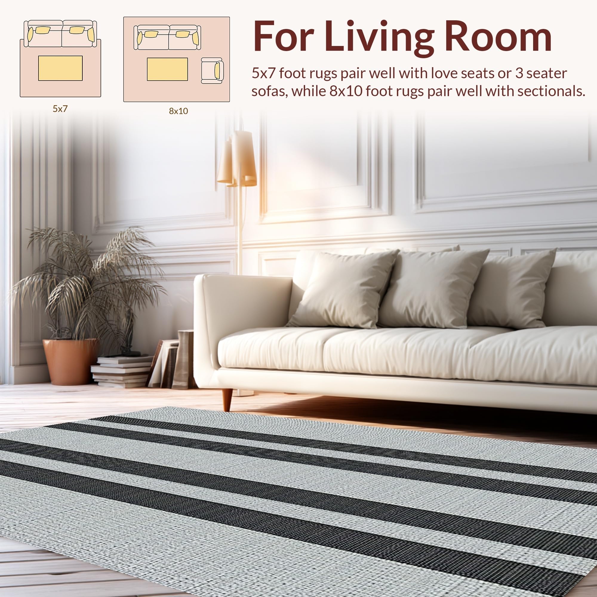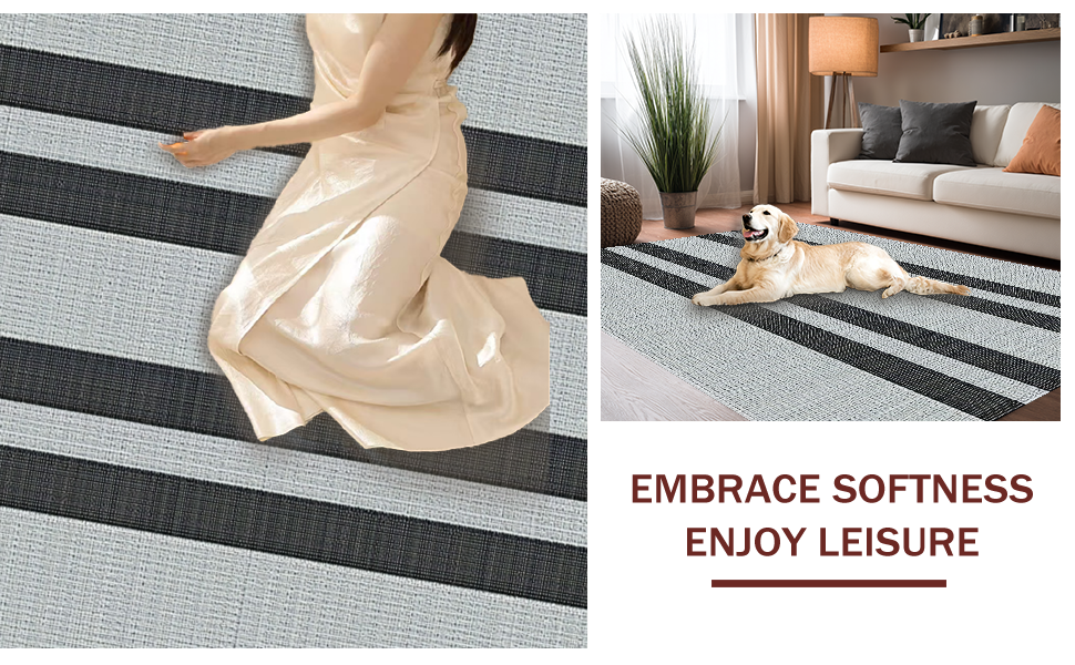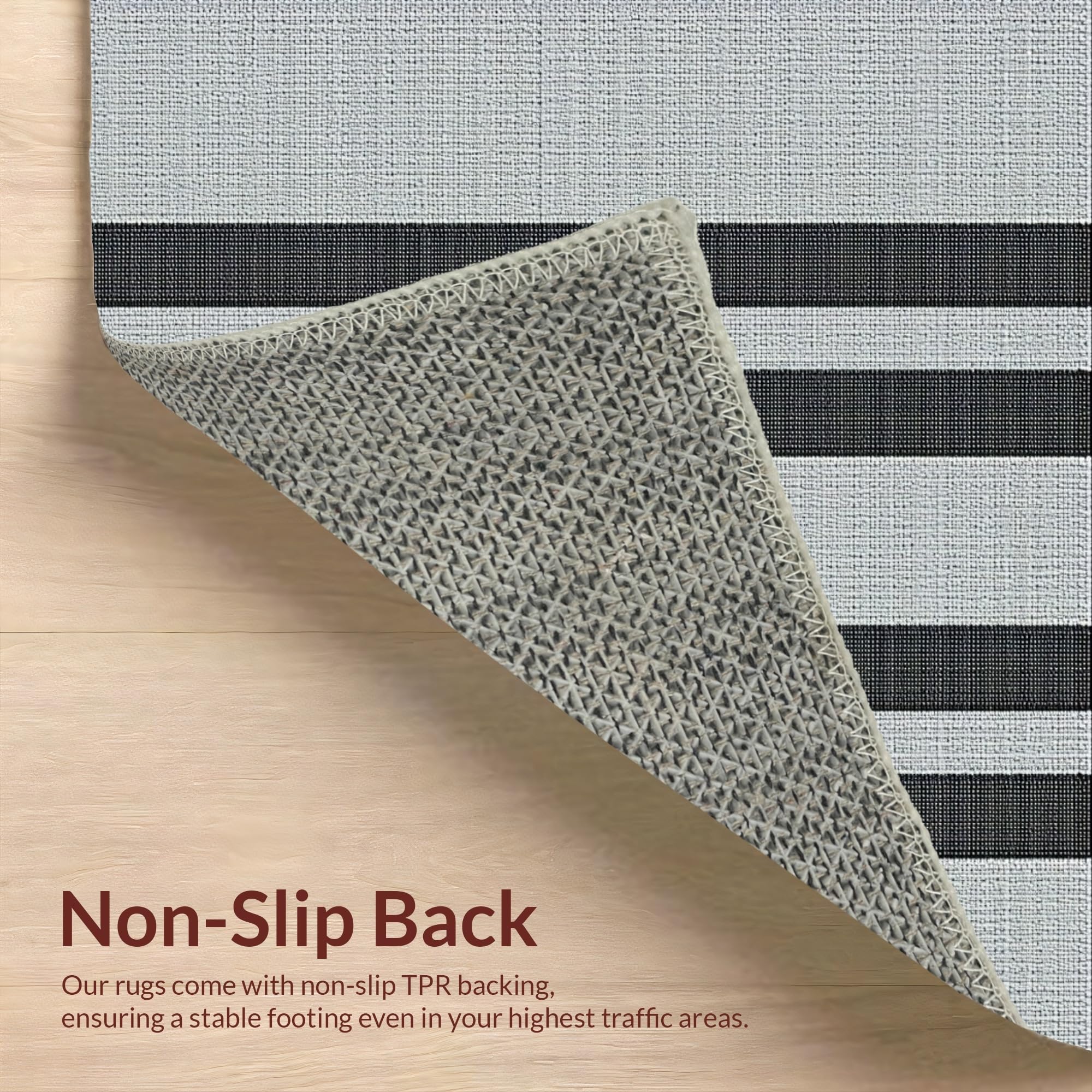 Ultra Soft Area Rug, Non Slip, Stain Resistant, Washable Area Rugs for Living Room, Bedroom, Contemporary Striped Monochrome Style(Black) Overview: