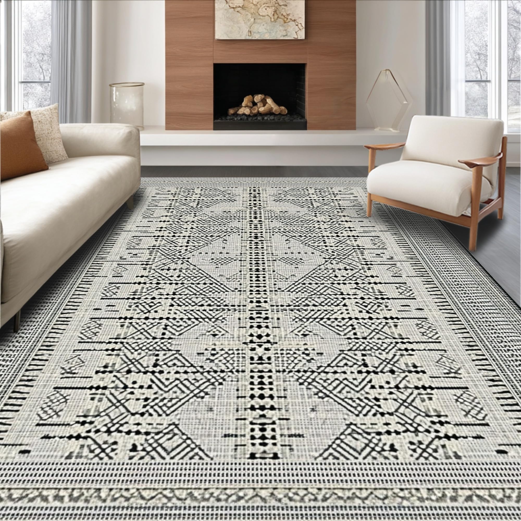 Ultra Soft Area Rug, Non Slip, Stain Resistant, Washable Area Rugs for Living Room, Bedroom, Contemporary Striped Outdoor Decor(Gray) Overview: