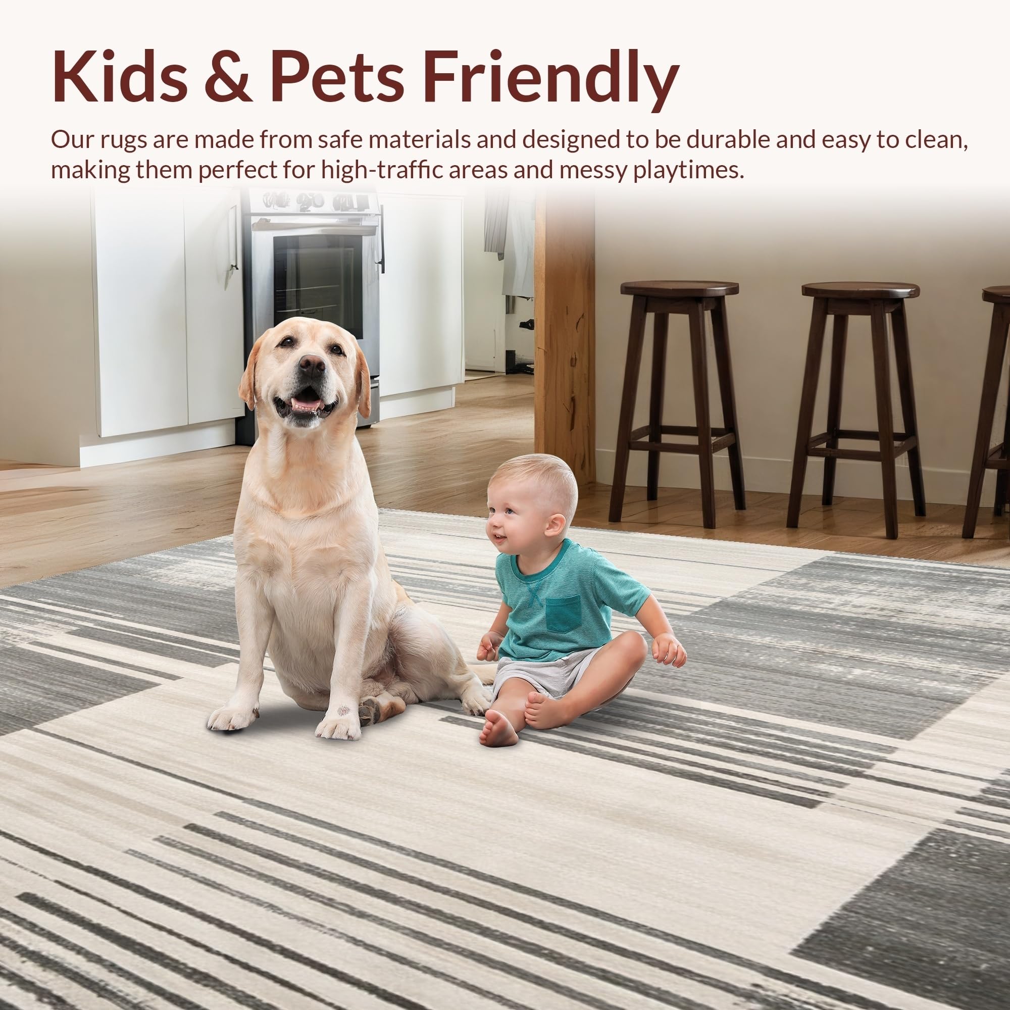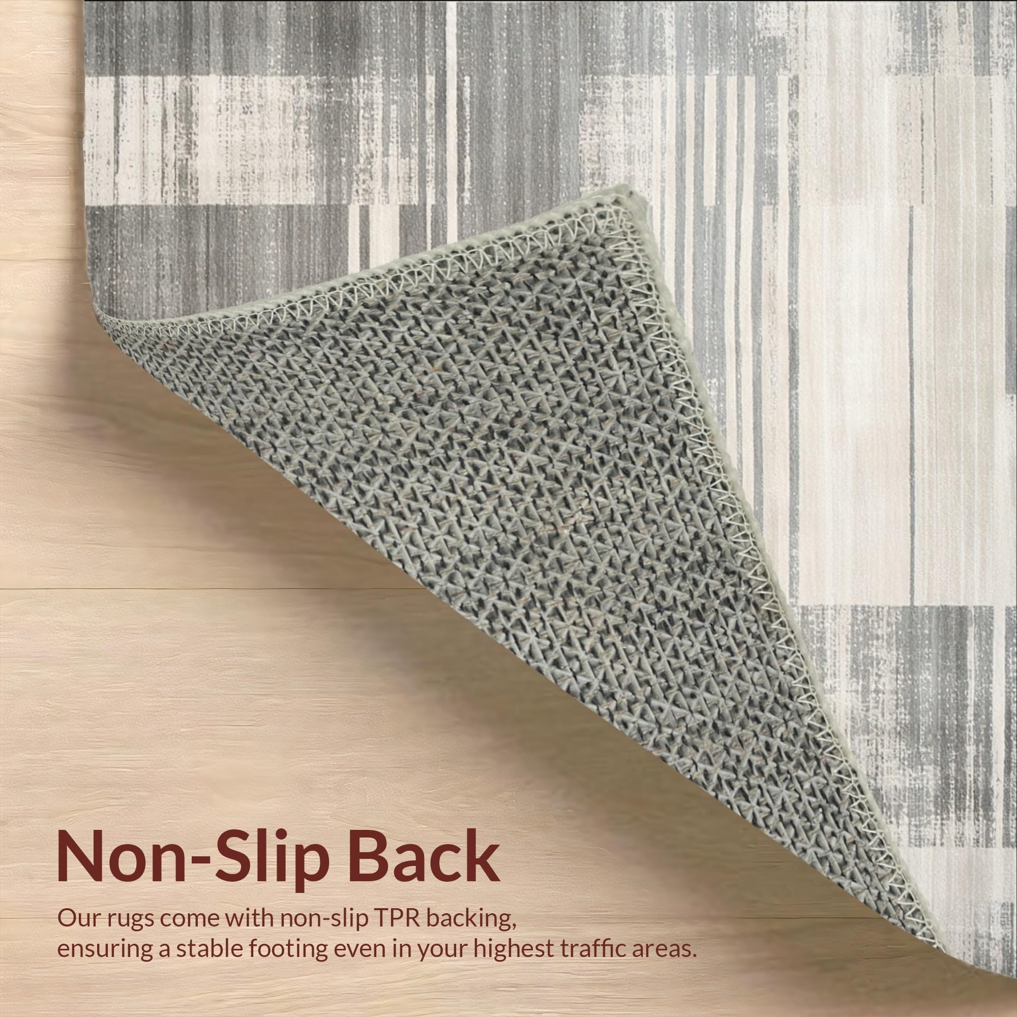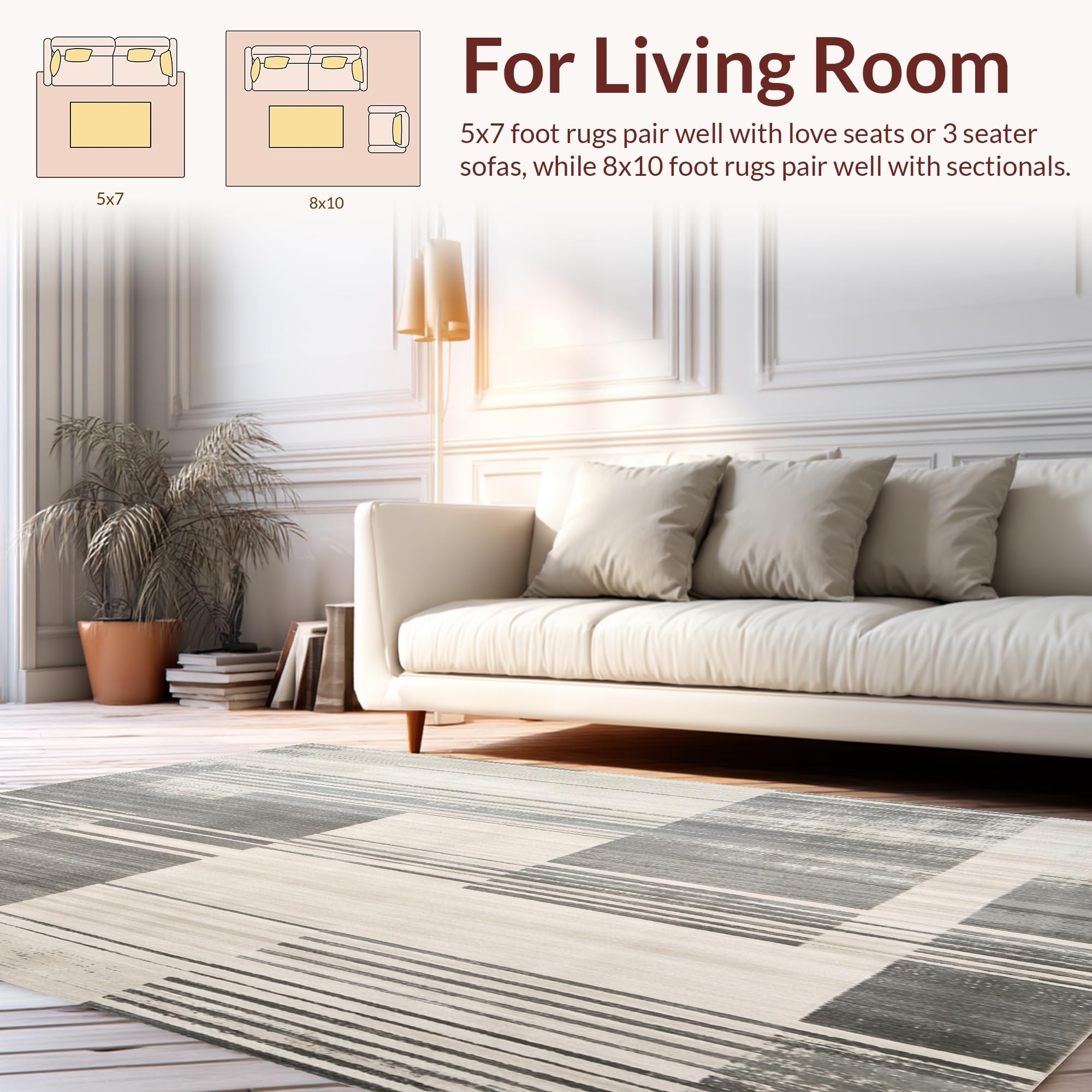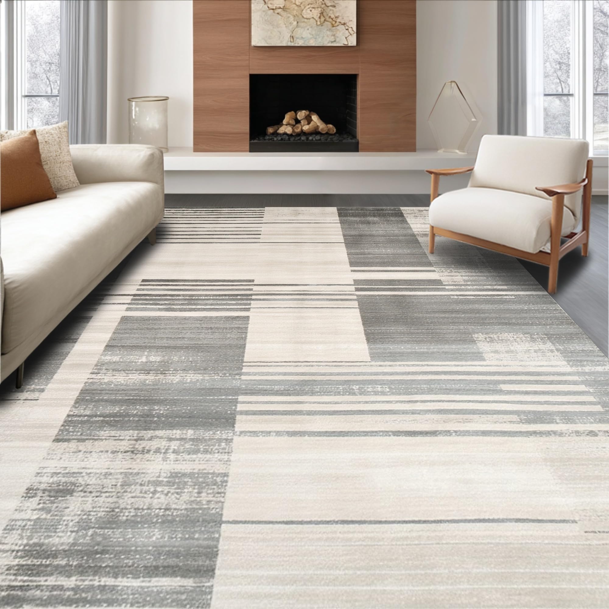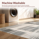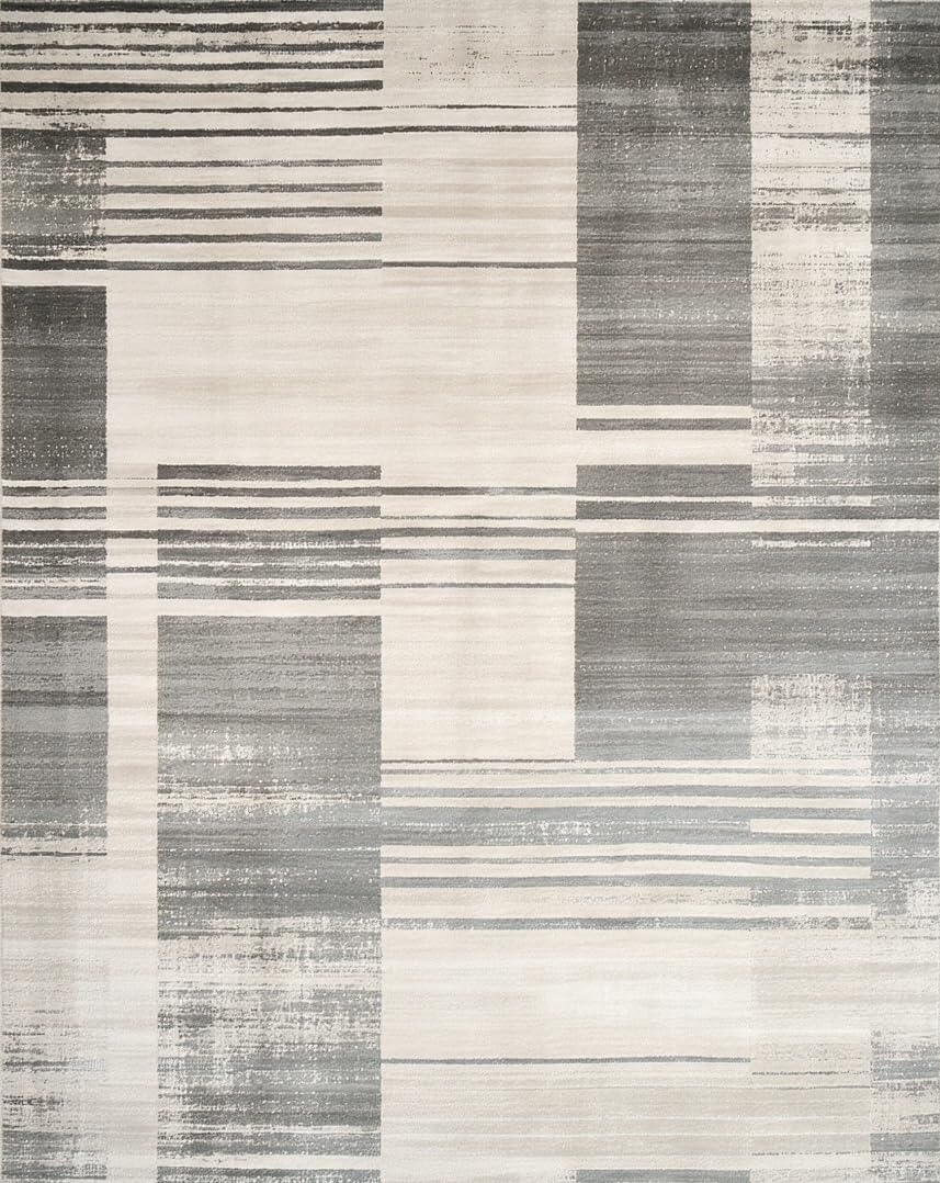 Ultra Soft Area Rug, Non Slip, Stain Resistant, Washable Area Rugs for Living Room, Bedroom, Contemporary Striped Runner with Distressed Beige and Slate Abstract Lines(Gray) Overview: