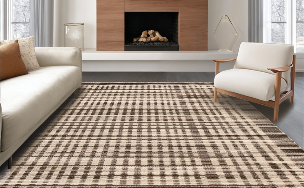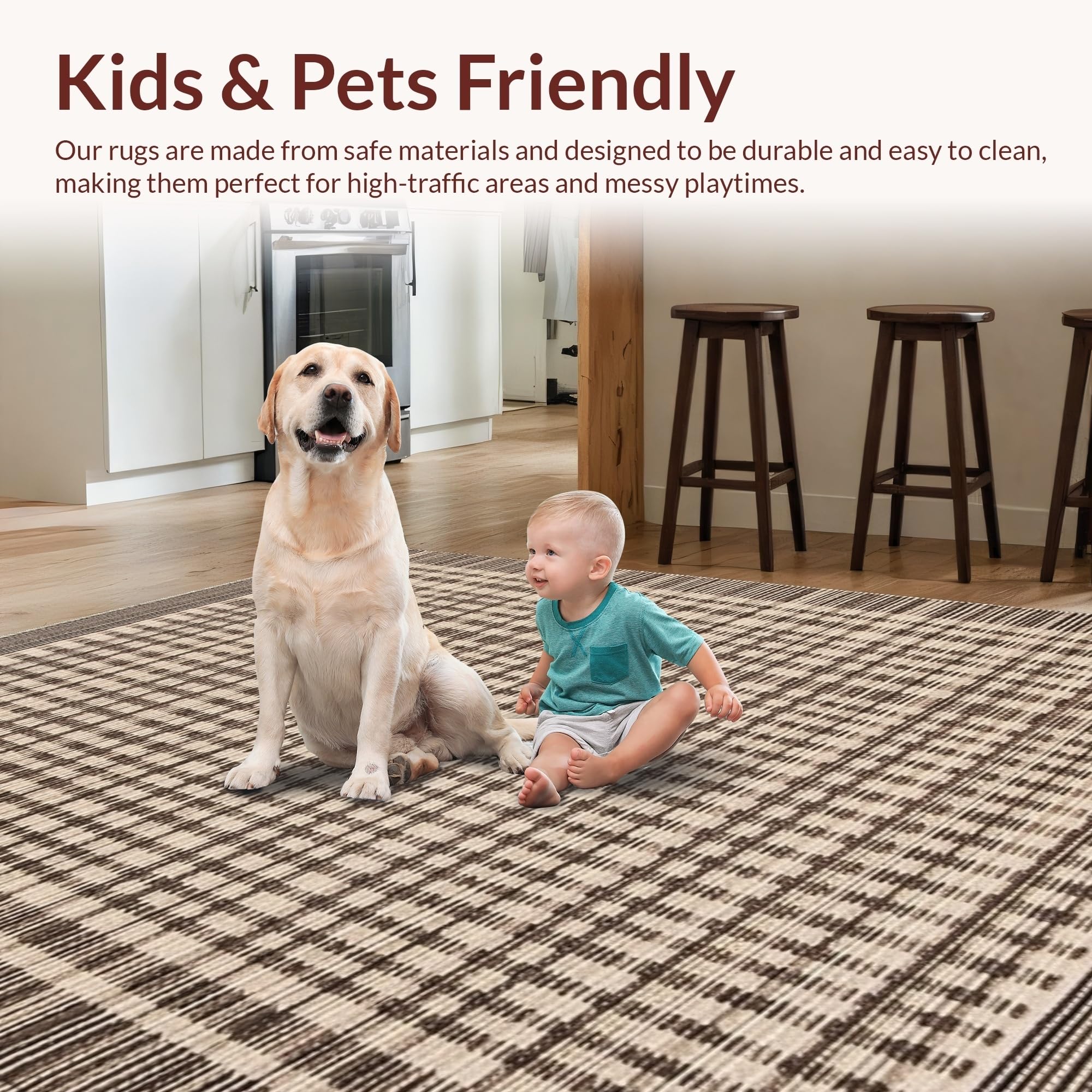 Ultra Soft Area Rug, Non Slip, Stain Resistant, Washable Area Rugs for Living Room, Bedroom, Contemporary Subtle Textural Design(Beige) Overview: