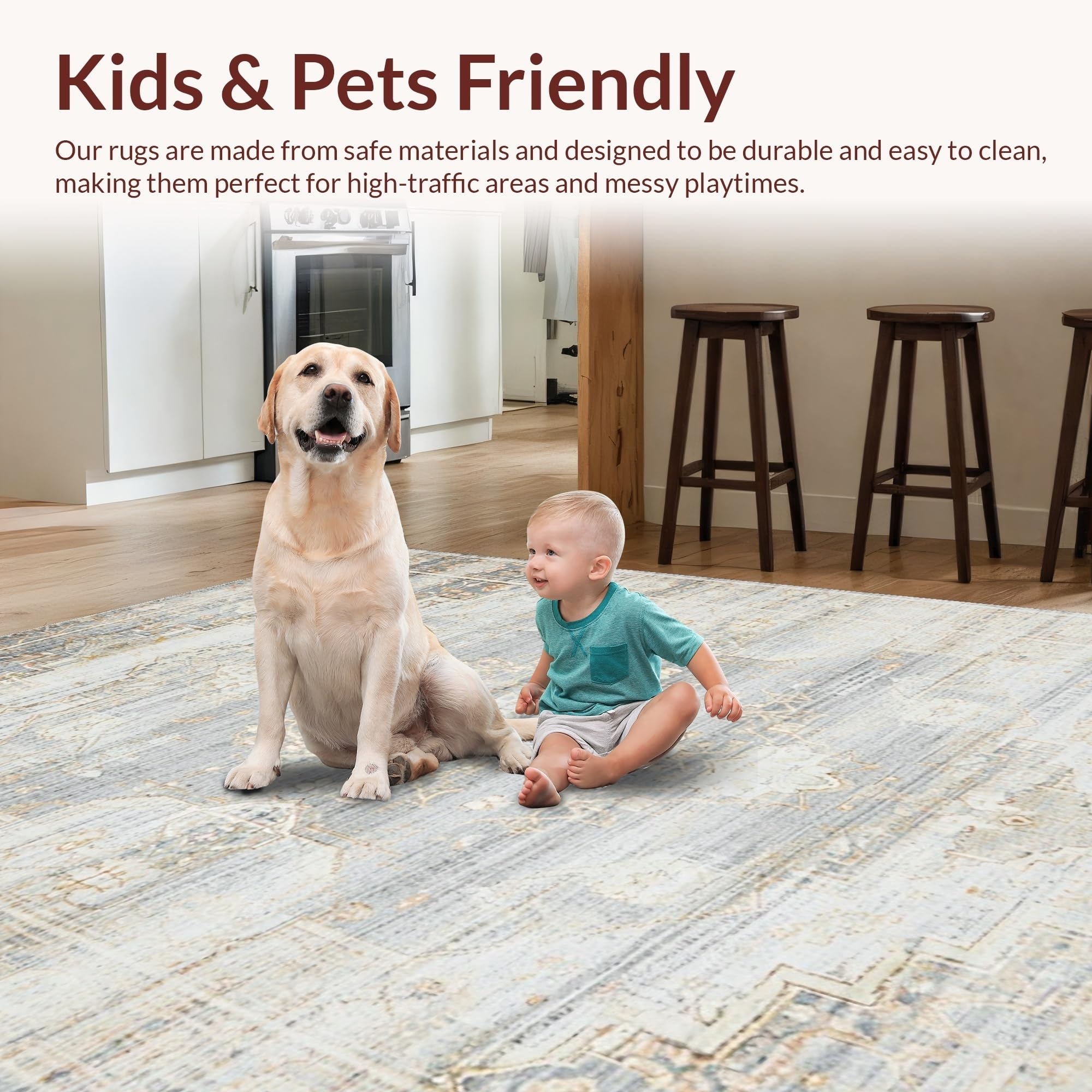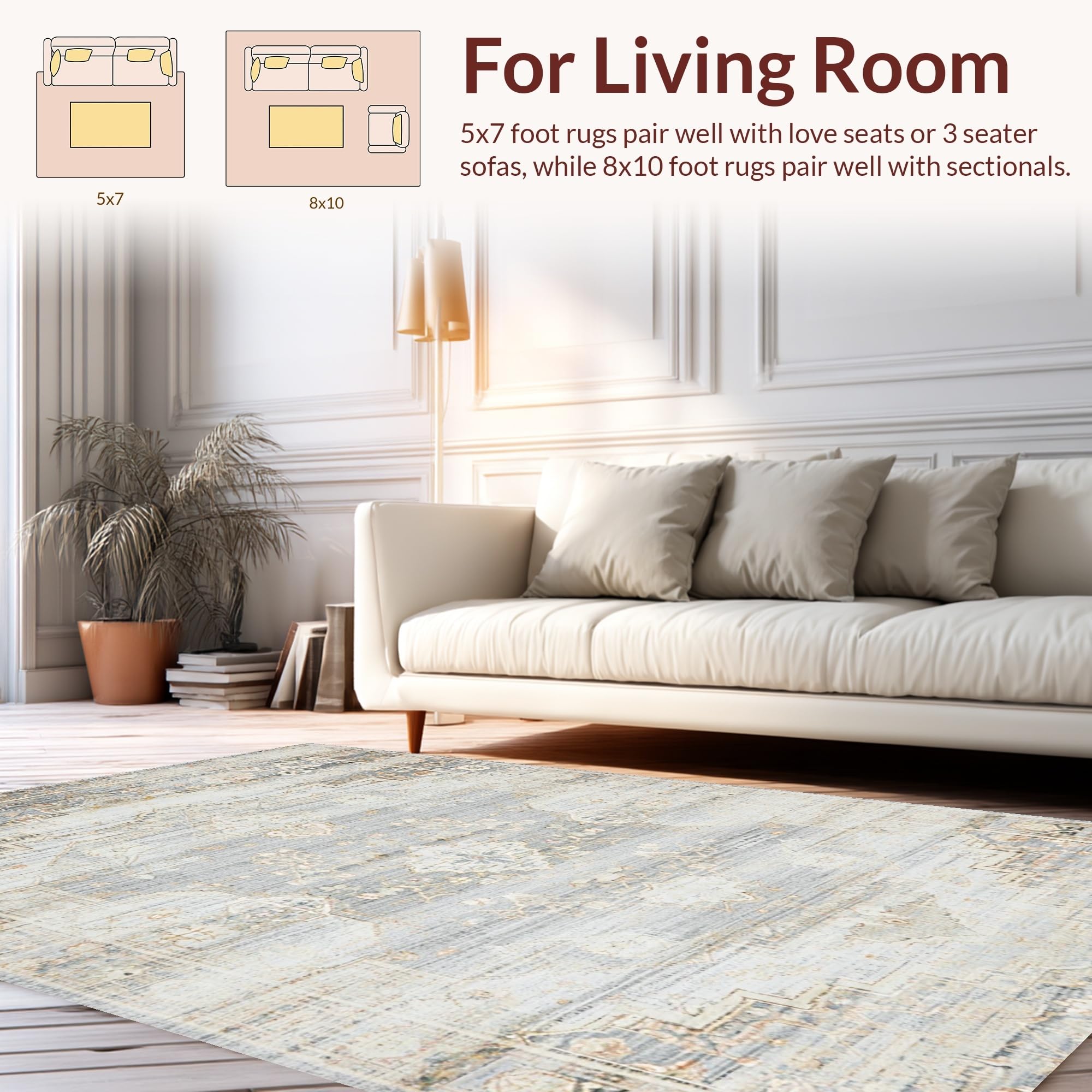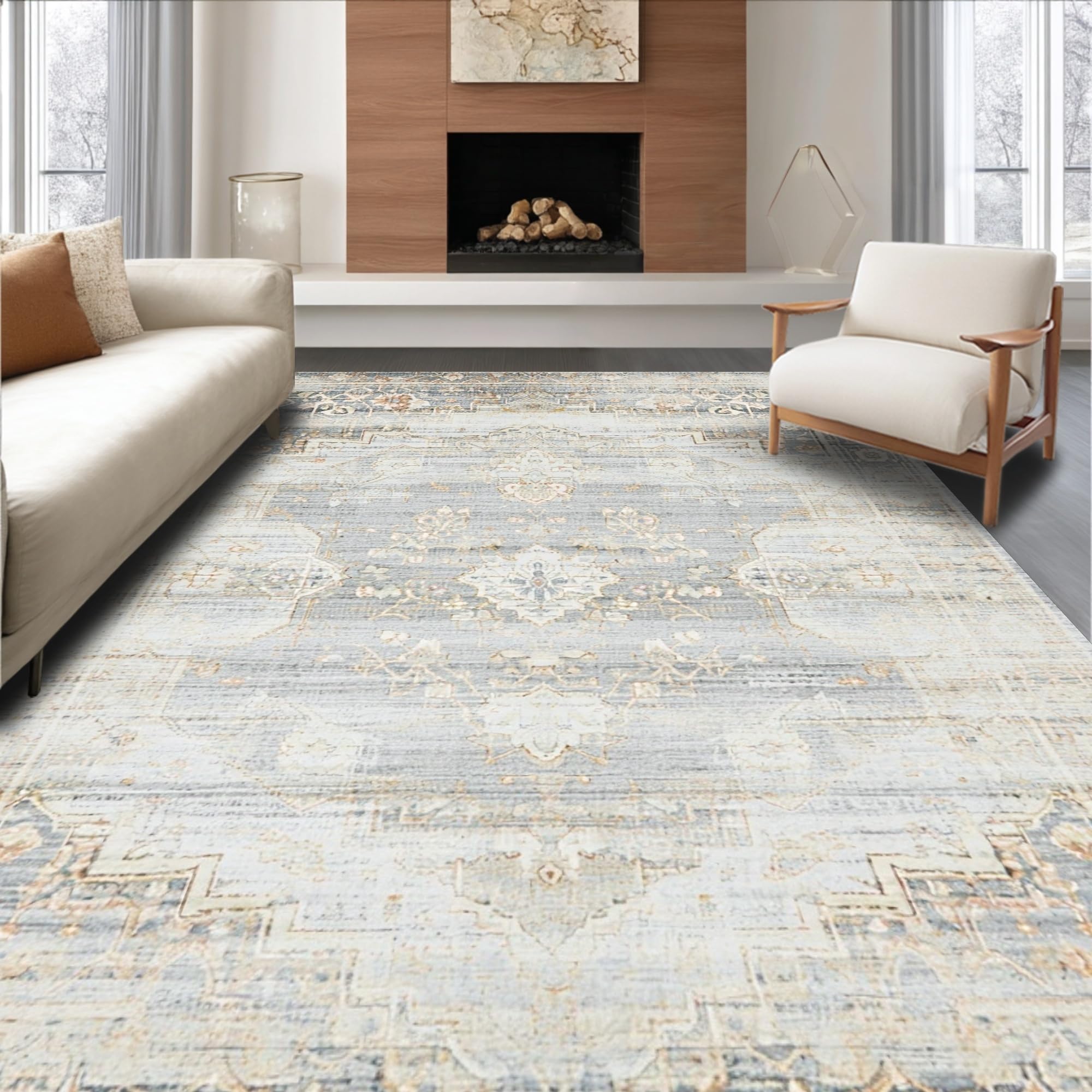 Ultra Soft Area Rug, Non Slip, Stain Resistant, Washable Area Rugs for Living Room, Bedroom, Contemporary Subtle Trellis Aesthetics(Gray) Overview: