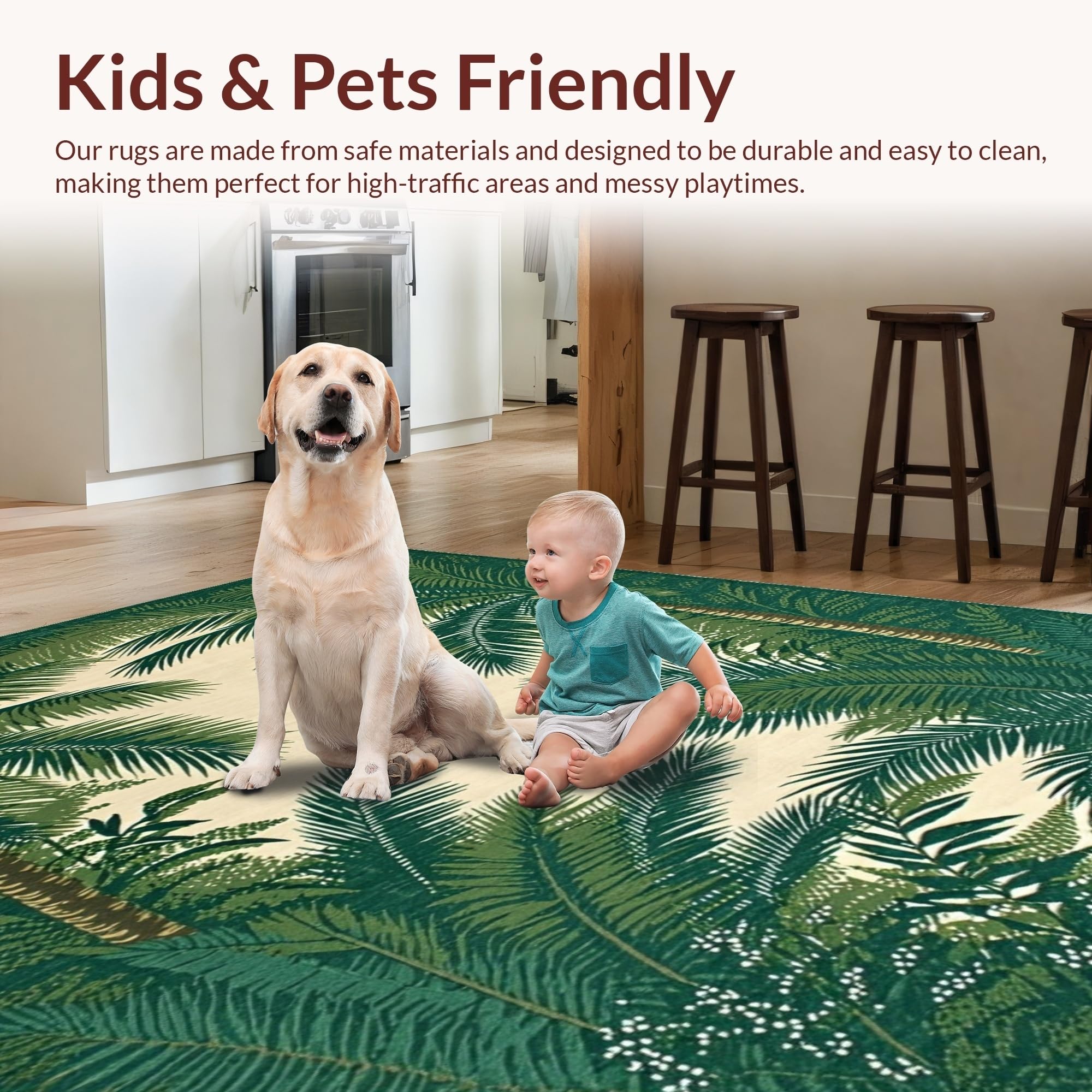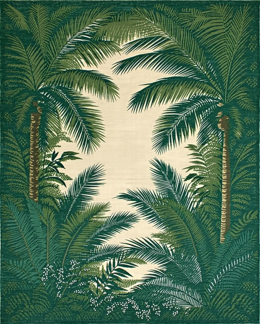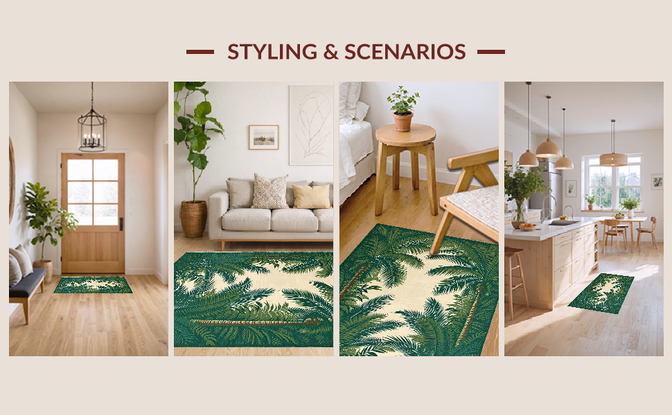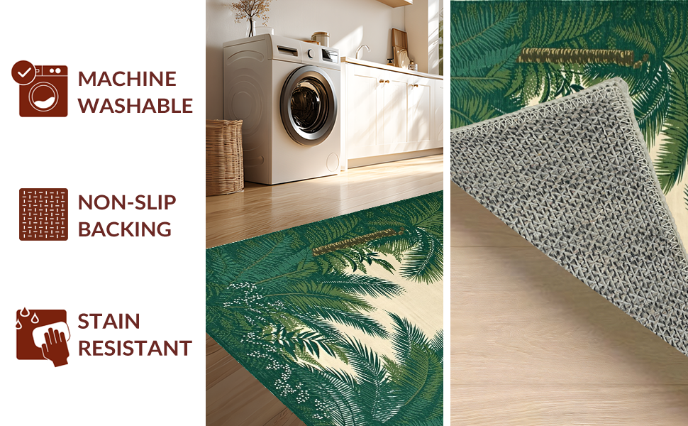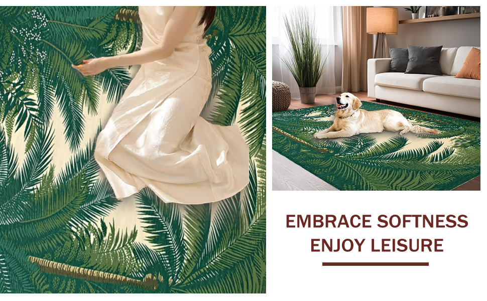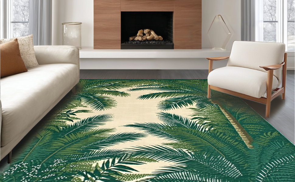 Ultra Soft Area Rug, Non Slip, Stain Resistant, Washable Area Rugs for Living Room, Bedroom, Contemporary Subtle Tropical Hues(Green) Overview: