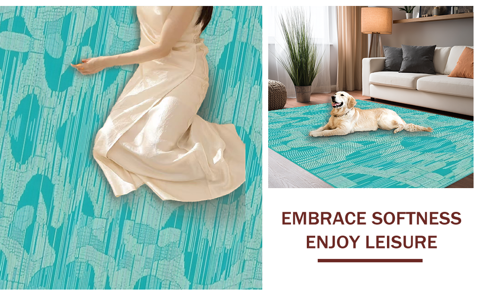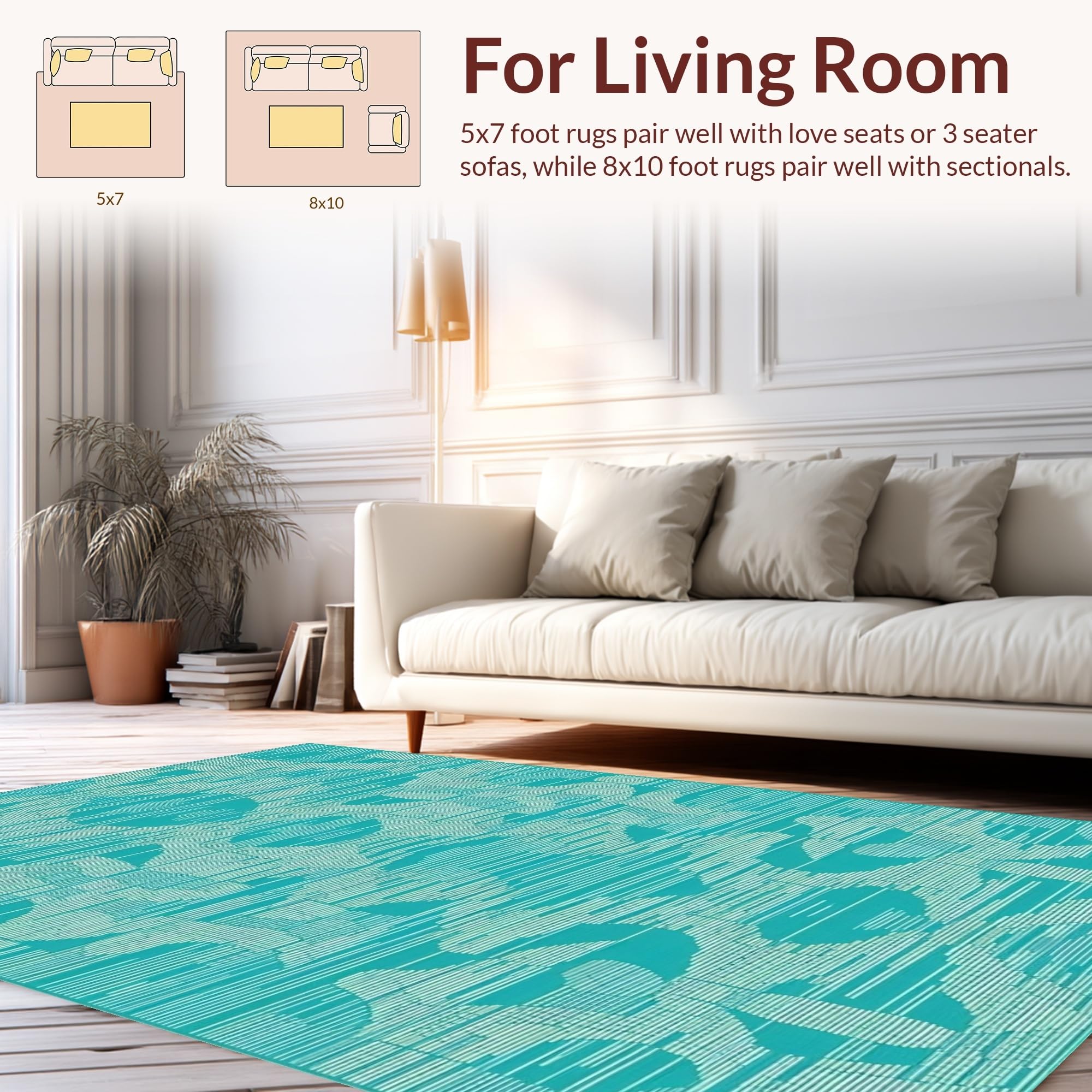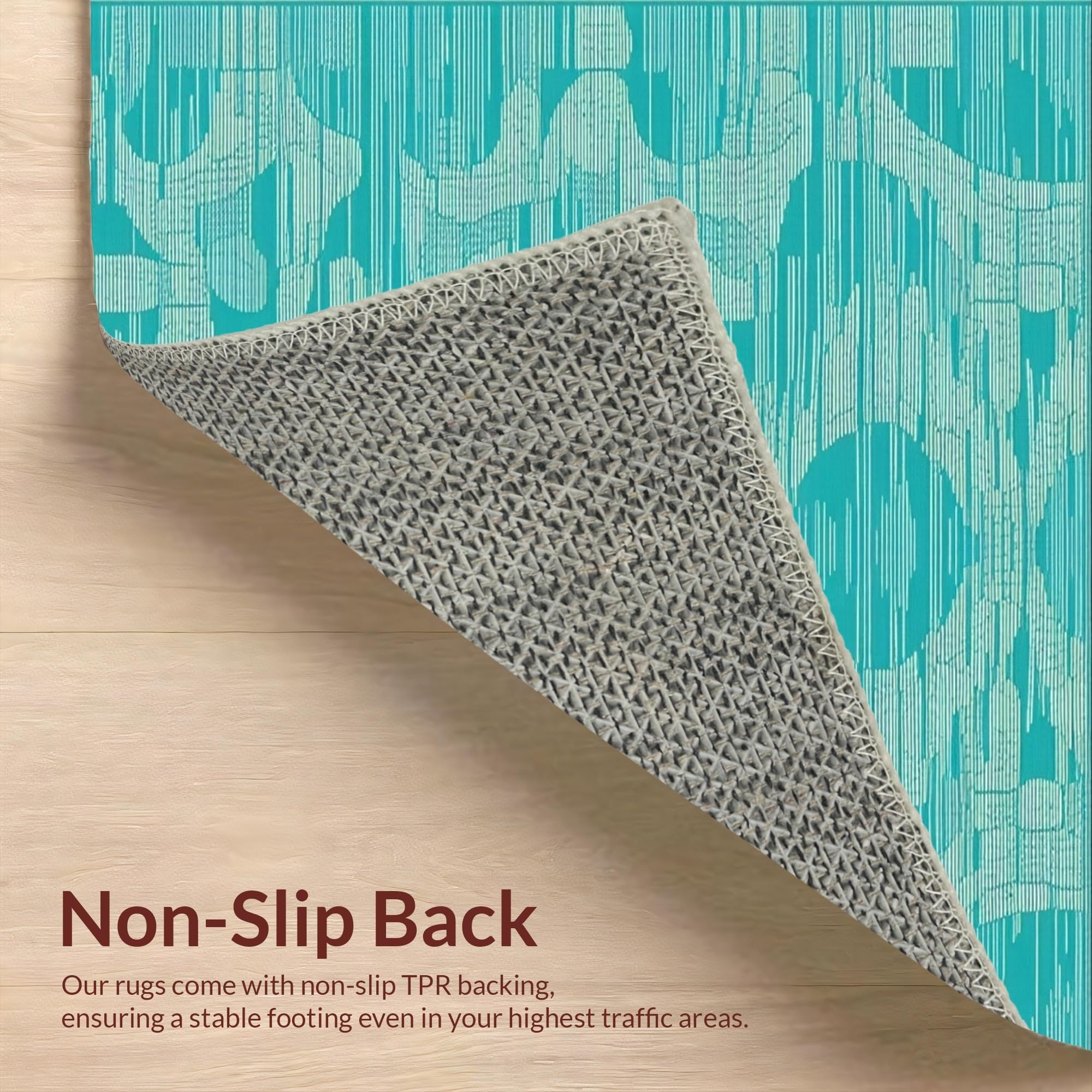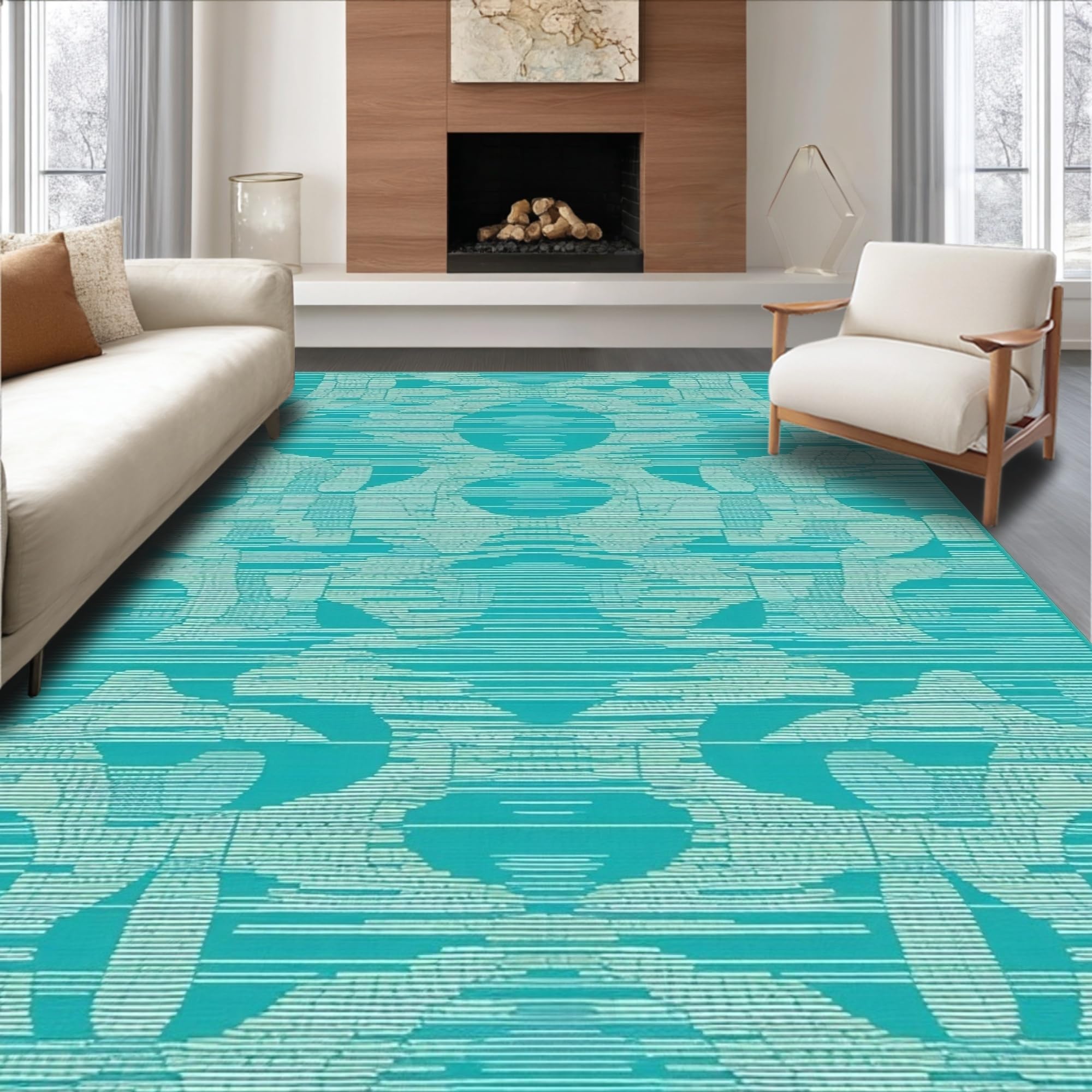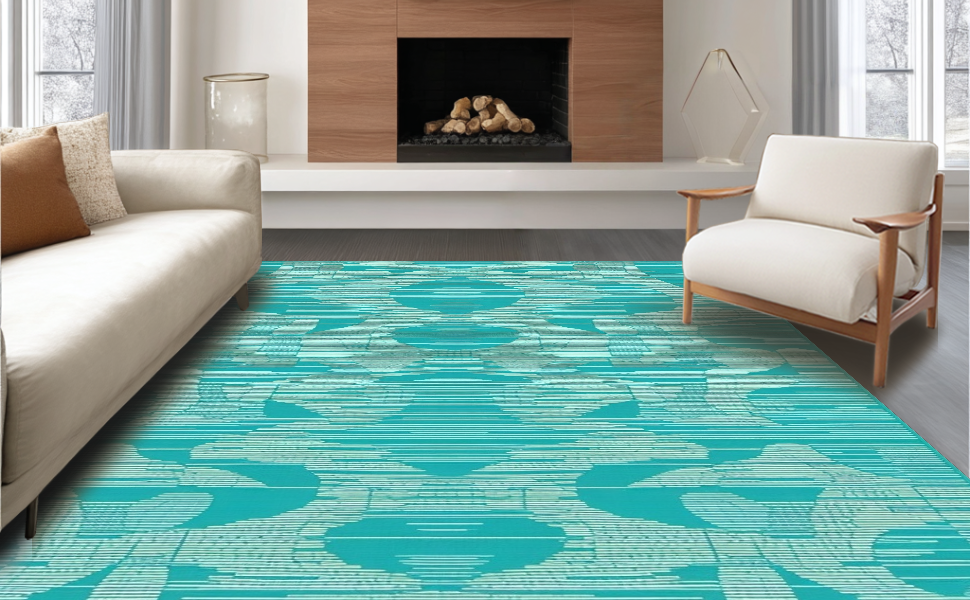 Ultra Soft Area Rug, Non Slip, Stain Resistant, Washable Area Rugs for Living Room, Bedroom, Contemporary Teal Geometric Motif(Blue) Overview: