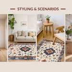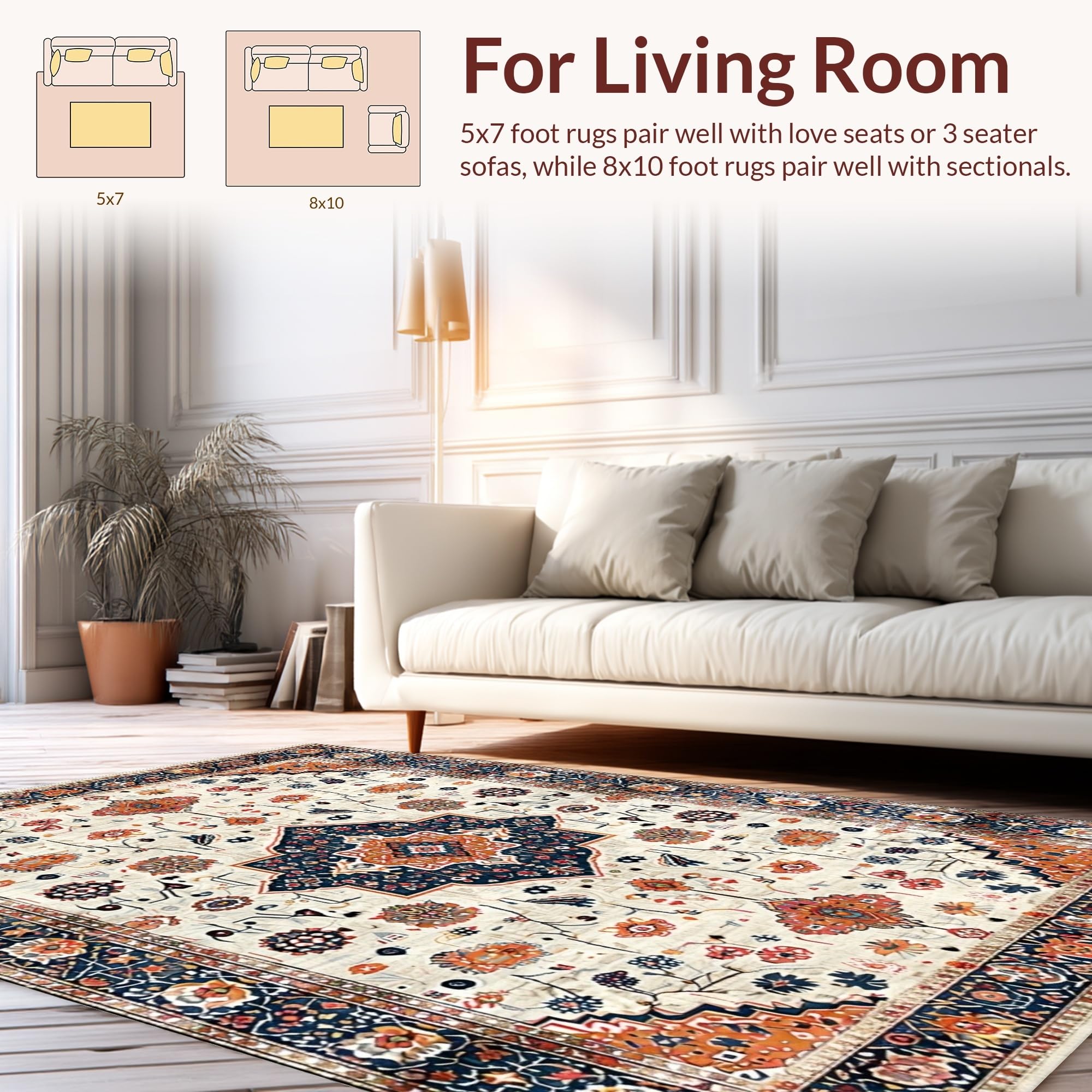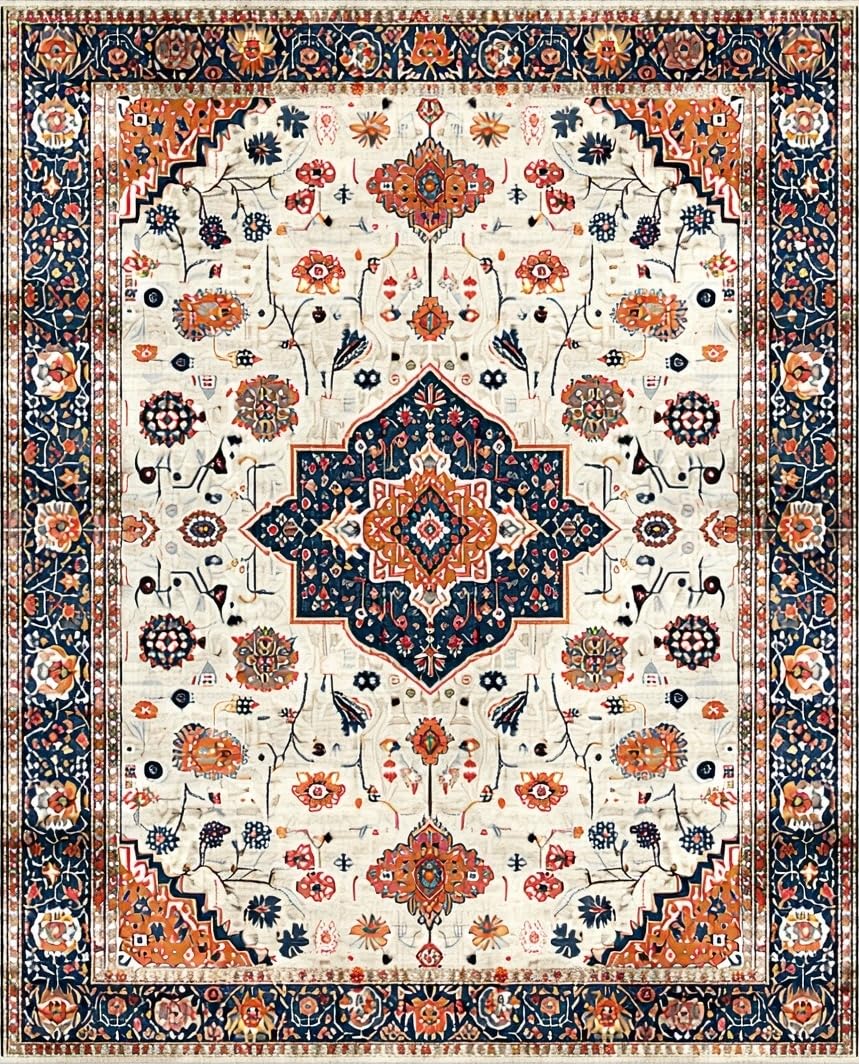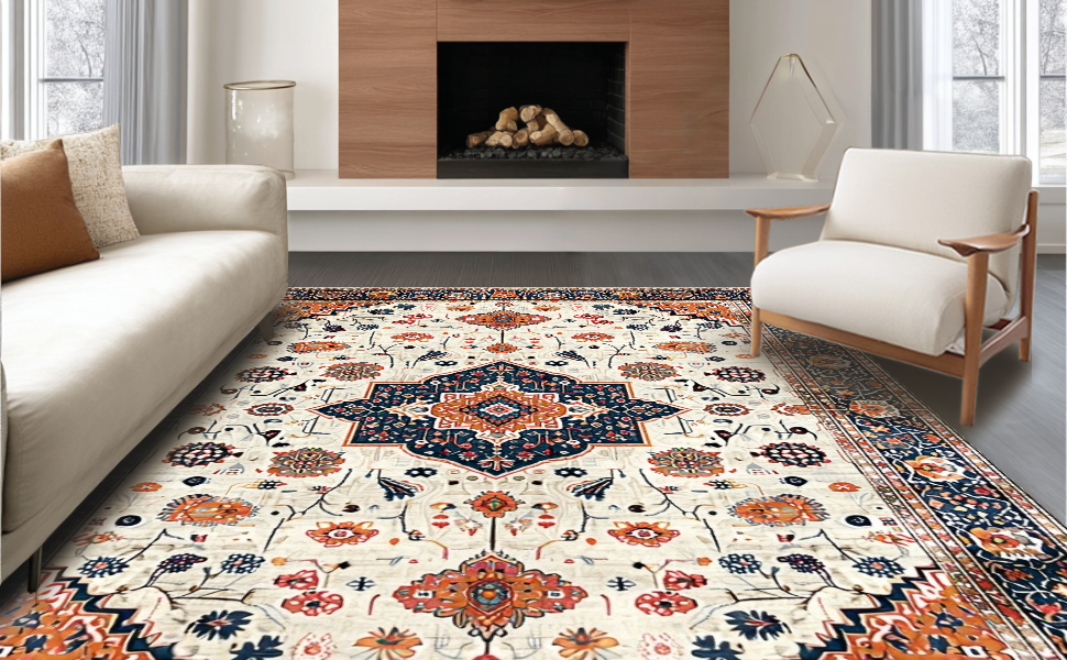 Ultra Soft Area Rug, Non Slip, Stain Resistant, Washable Area Rugs for Living Room, Bedroom, Contemporary Textured Blooms Design(White) Overview: