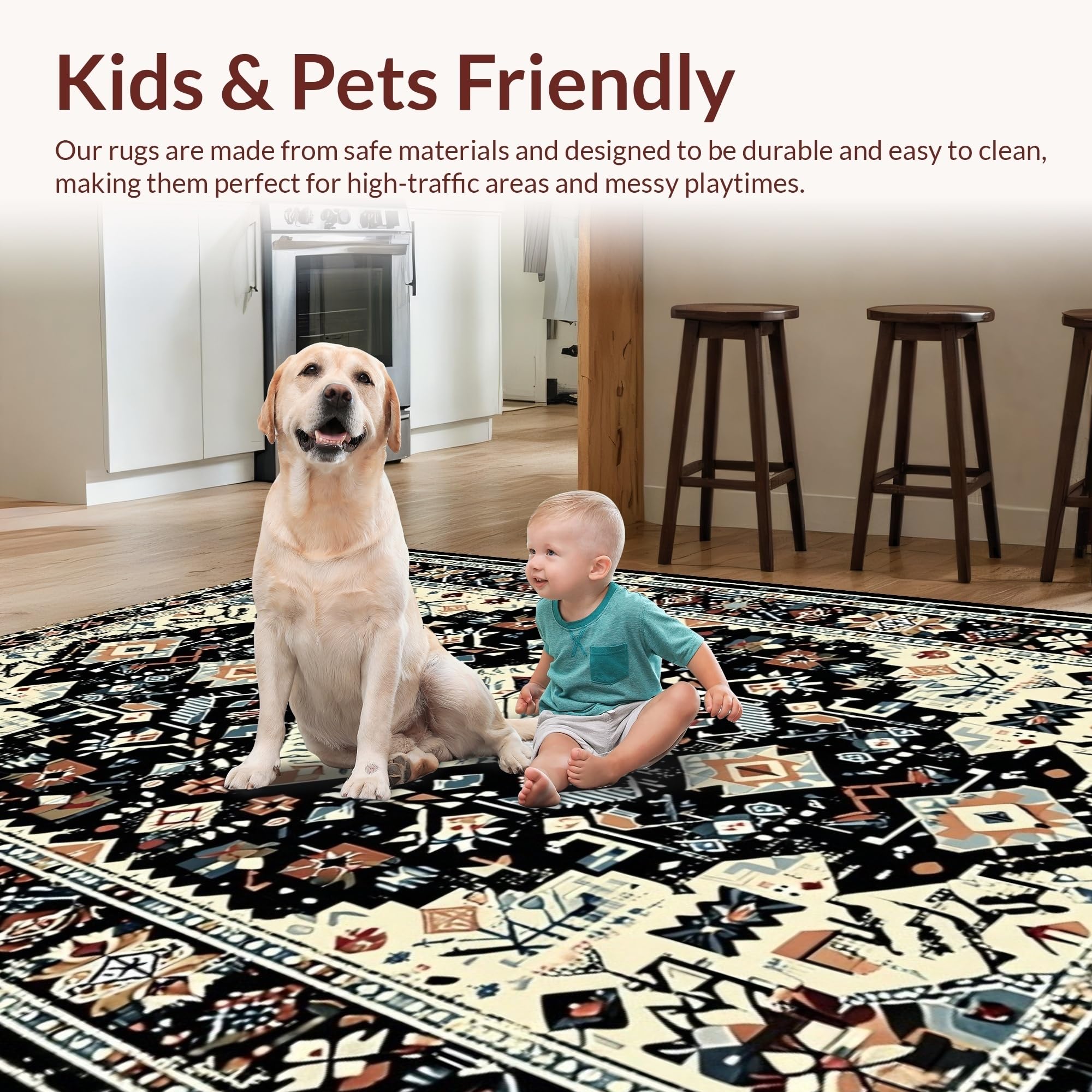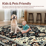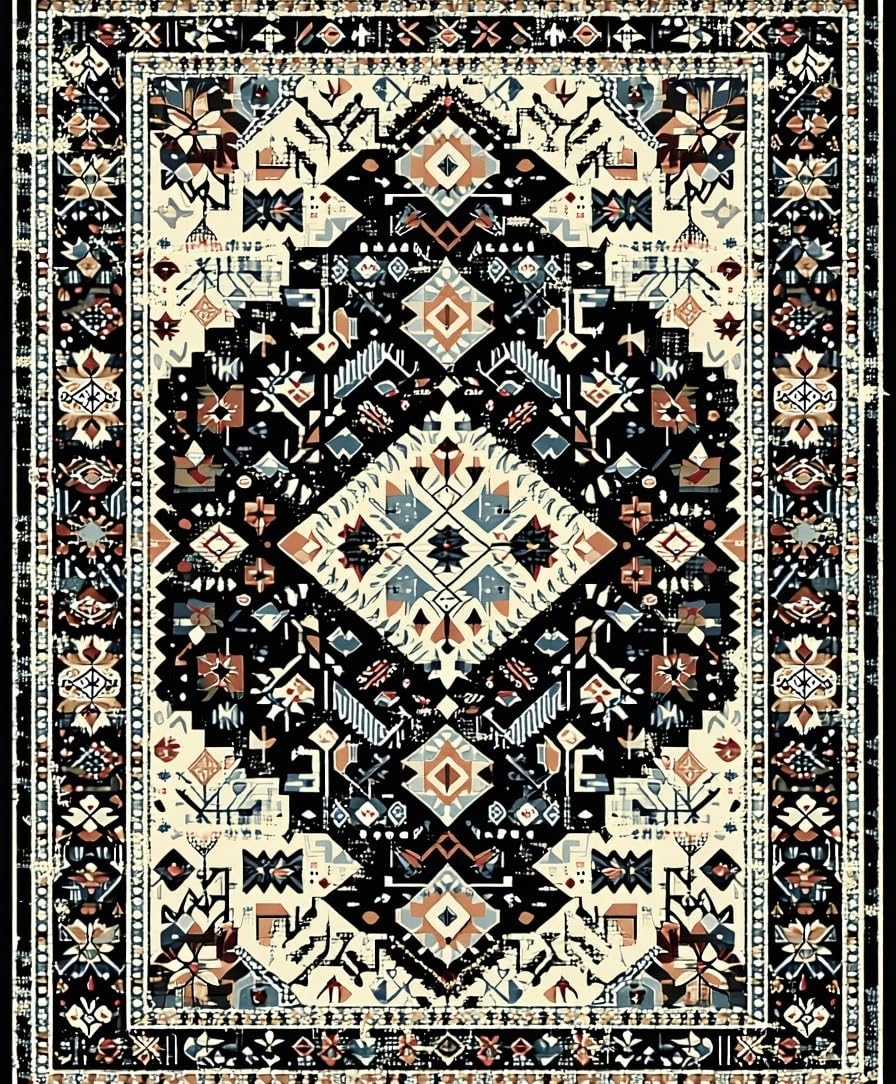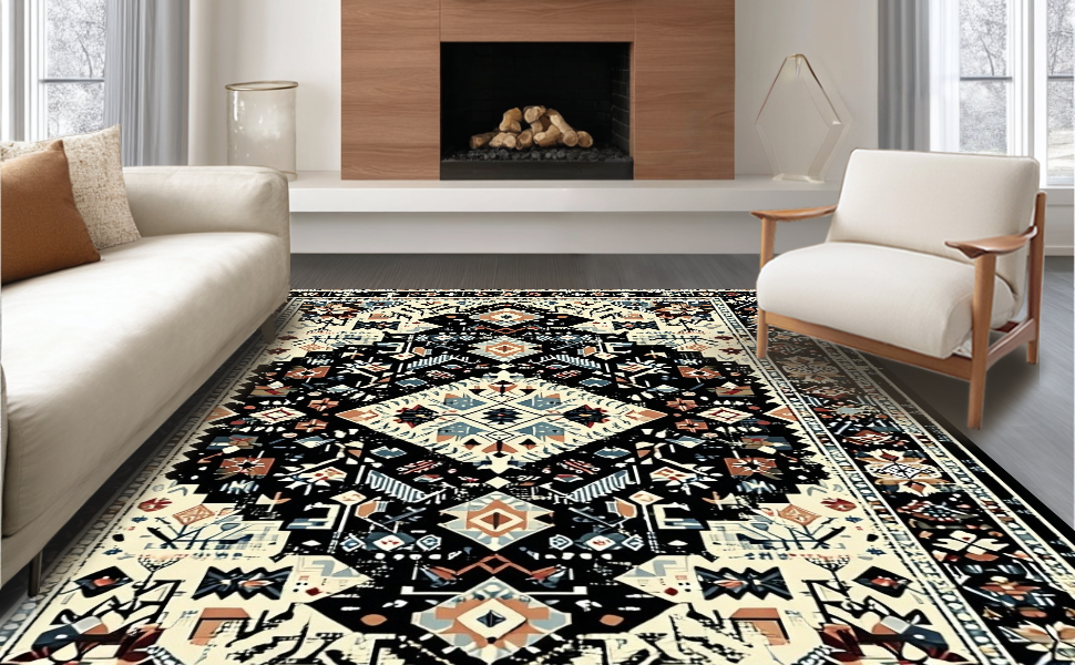 Ultra Soft Area Rug, Non Slip, Stain Resistant, Washable Area Rugs for Living Room, Bedroom, Contemporary Textured Floral Fusion(Black) Overview:
