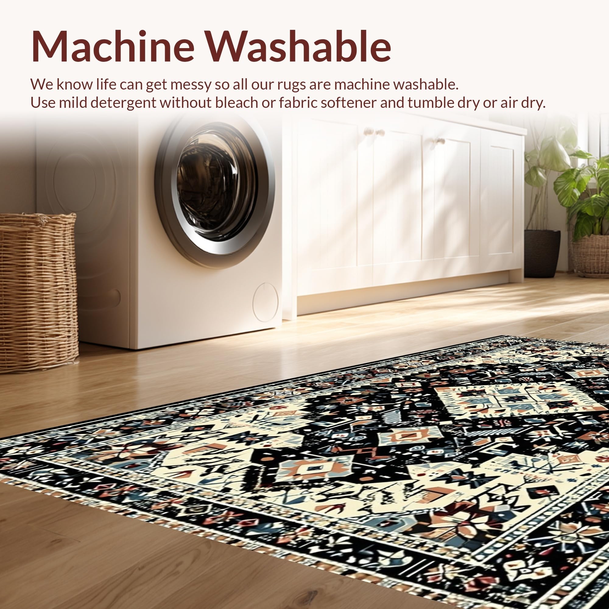 - Machine Washable: Our rugs can be easily thrown in the wash machine.