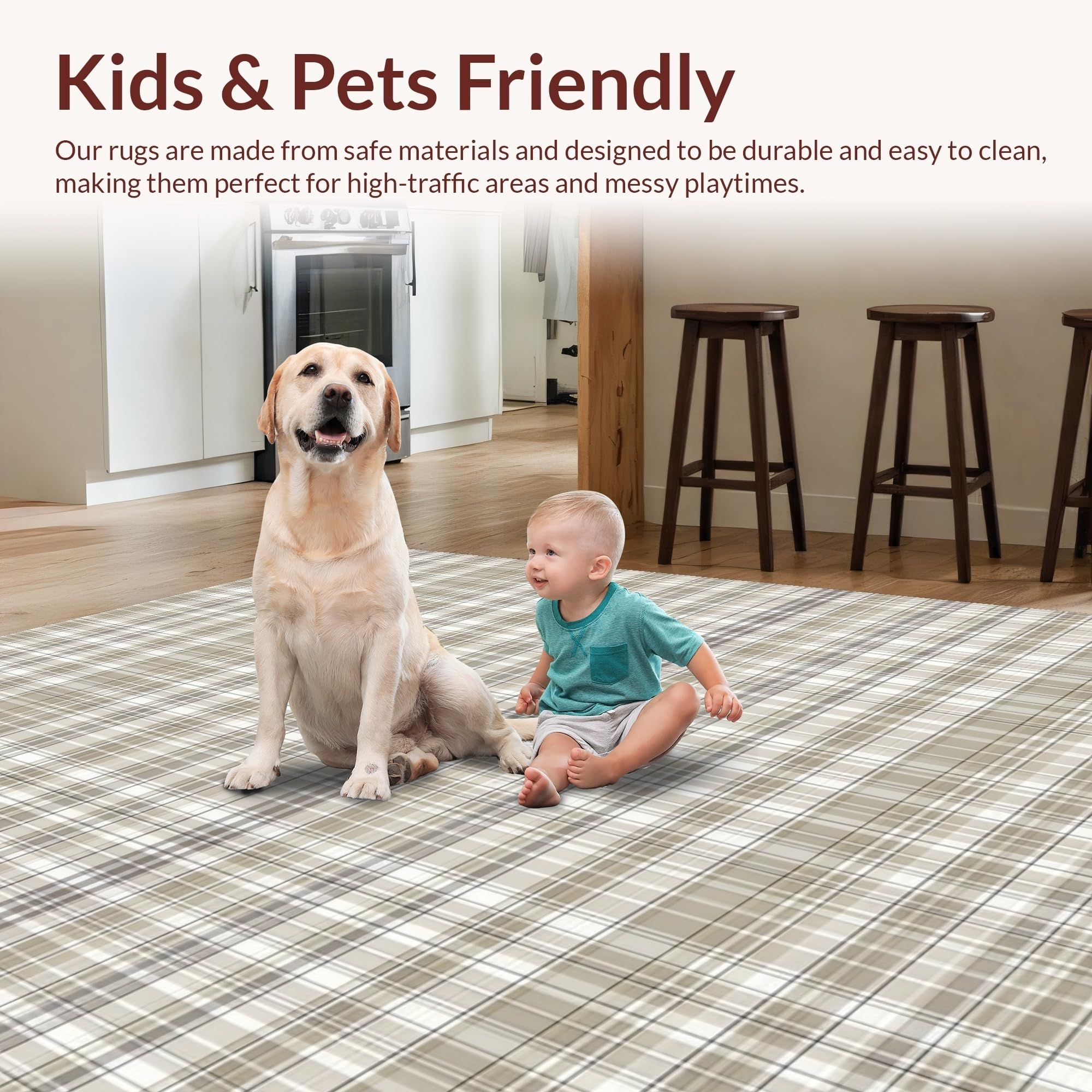 Ultra Soft Area Rug, Non Slip, Stain Resistant, Washable Area Rugs for Living Room, Bedroom, Contemporary Textured Plaid Look(Beige) Overview: