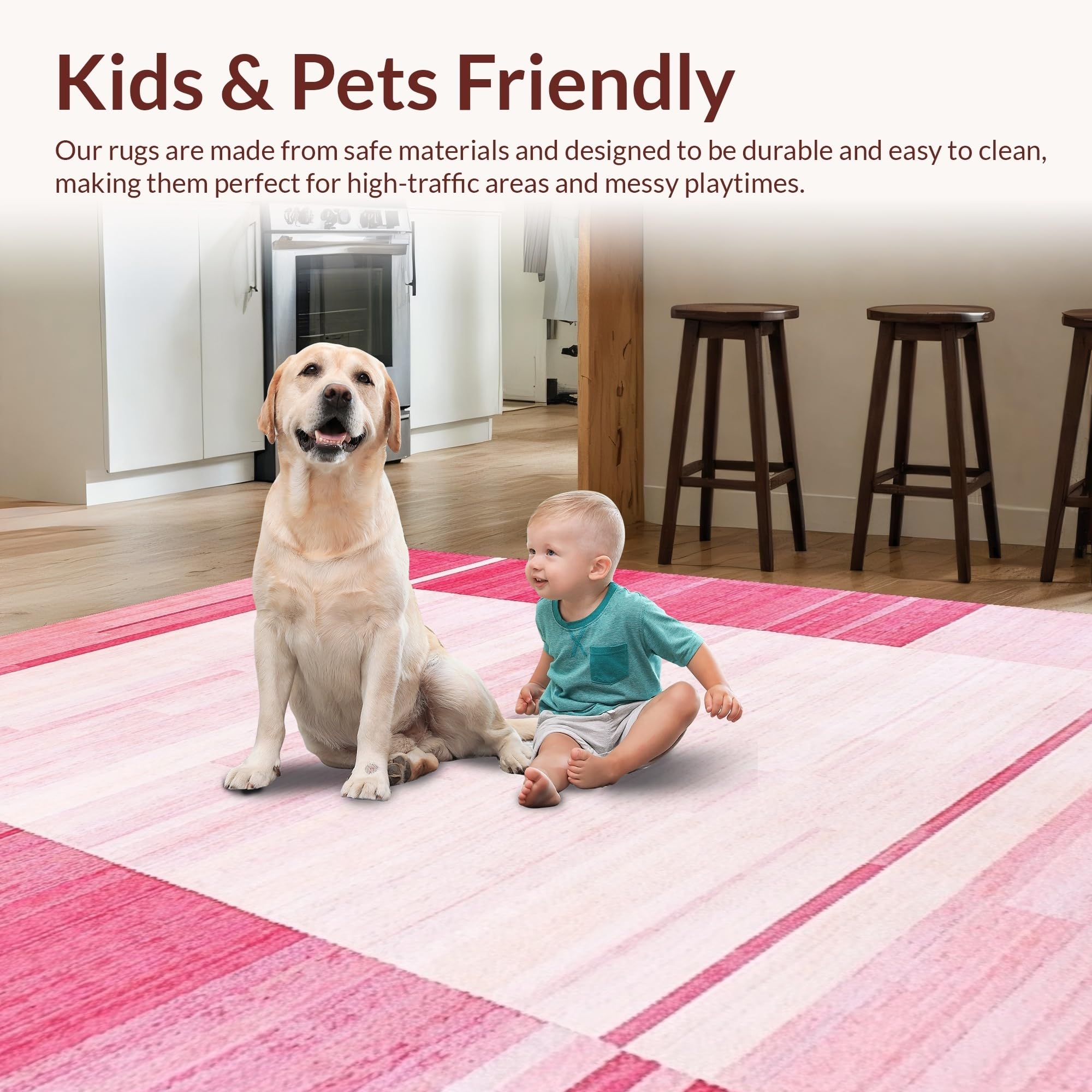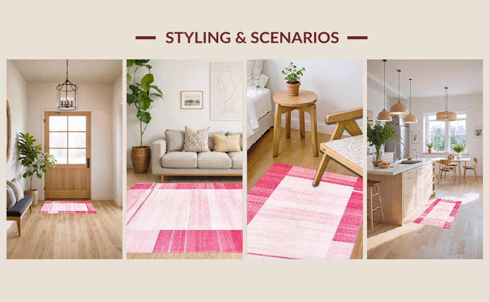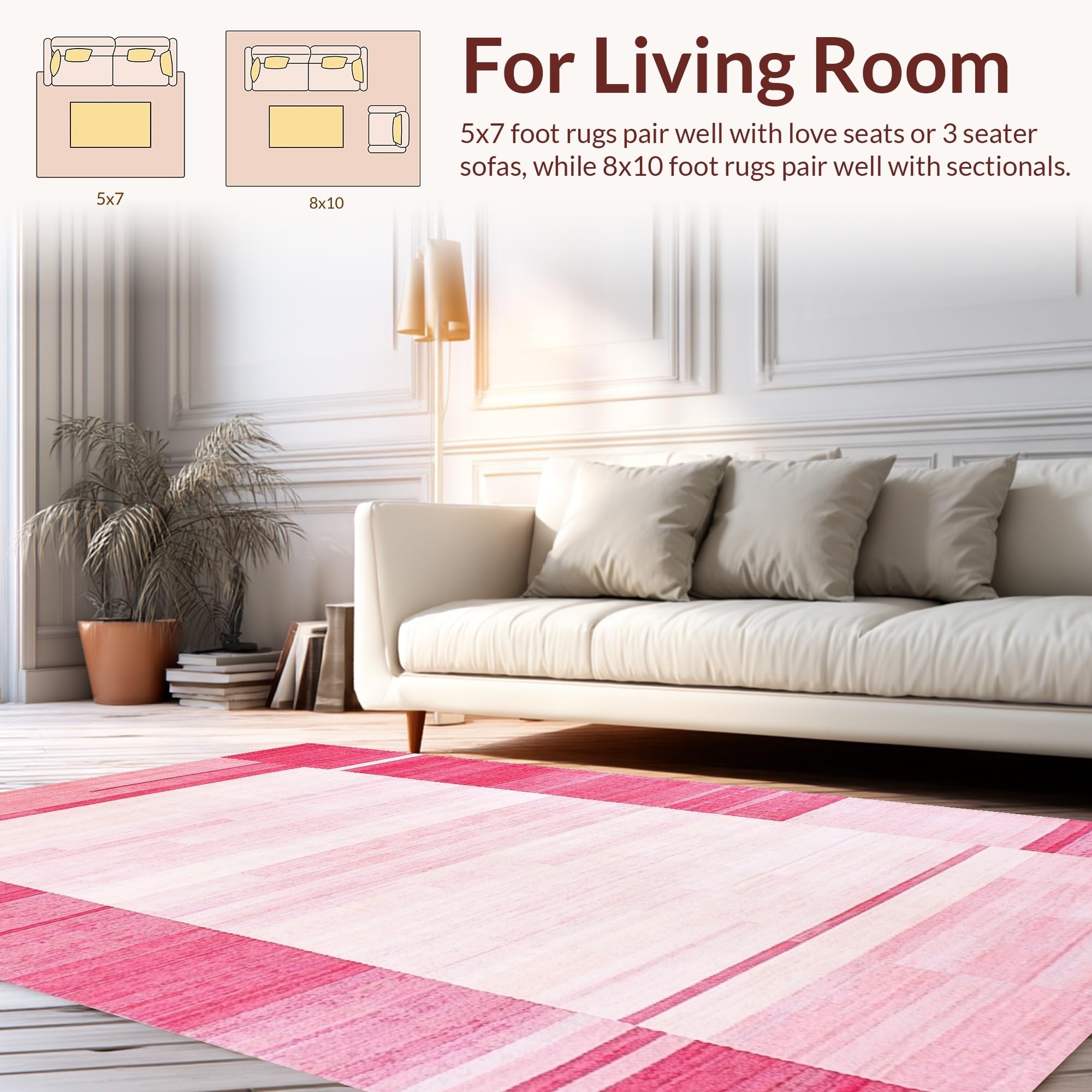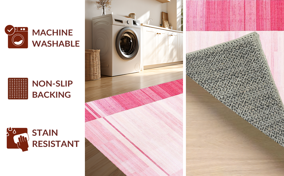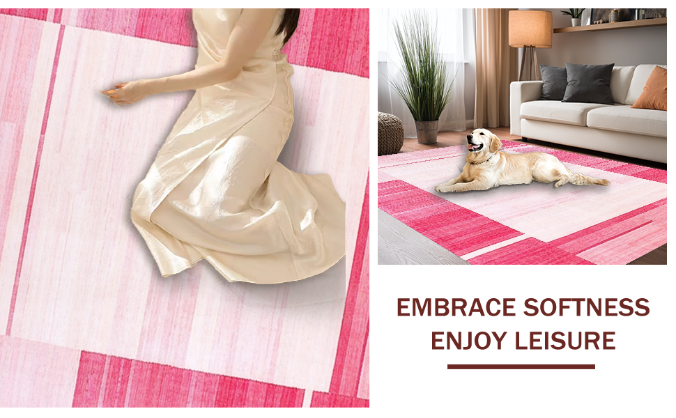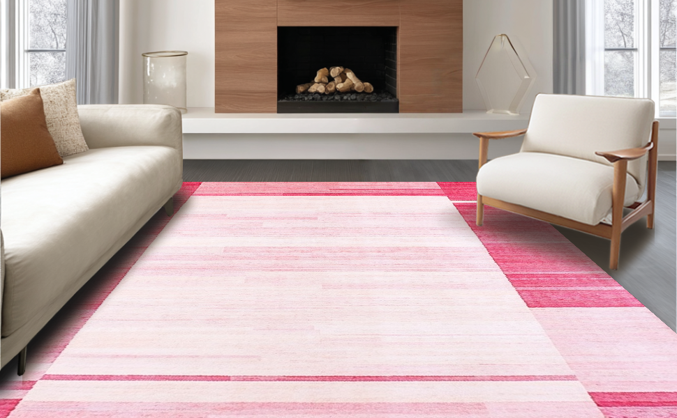 Ultra Soft Area Rug, Non Slip, Stain Resistant, Washable Area Rugs for Living Room, Bedroom, Contemporary Textured Rose Hues(Pink) Overview: