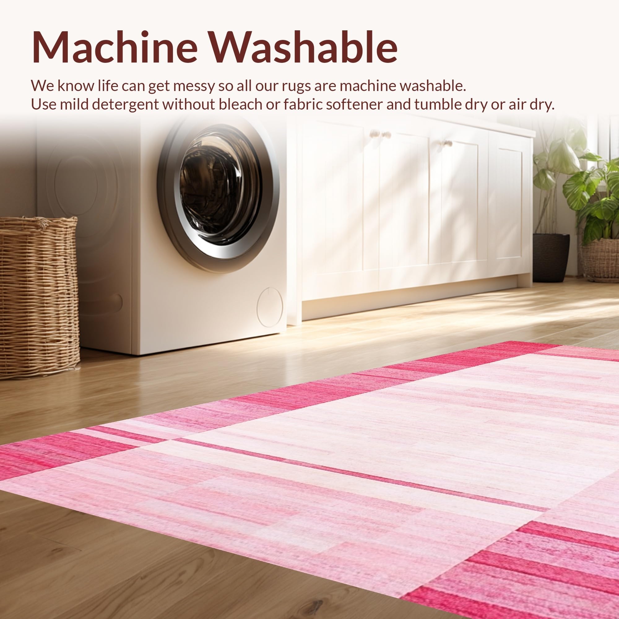 - Machine Washable: Our rugs can be easily thrown in the wash machine.