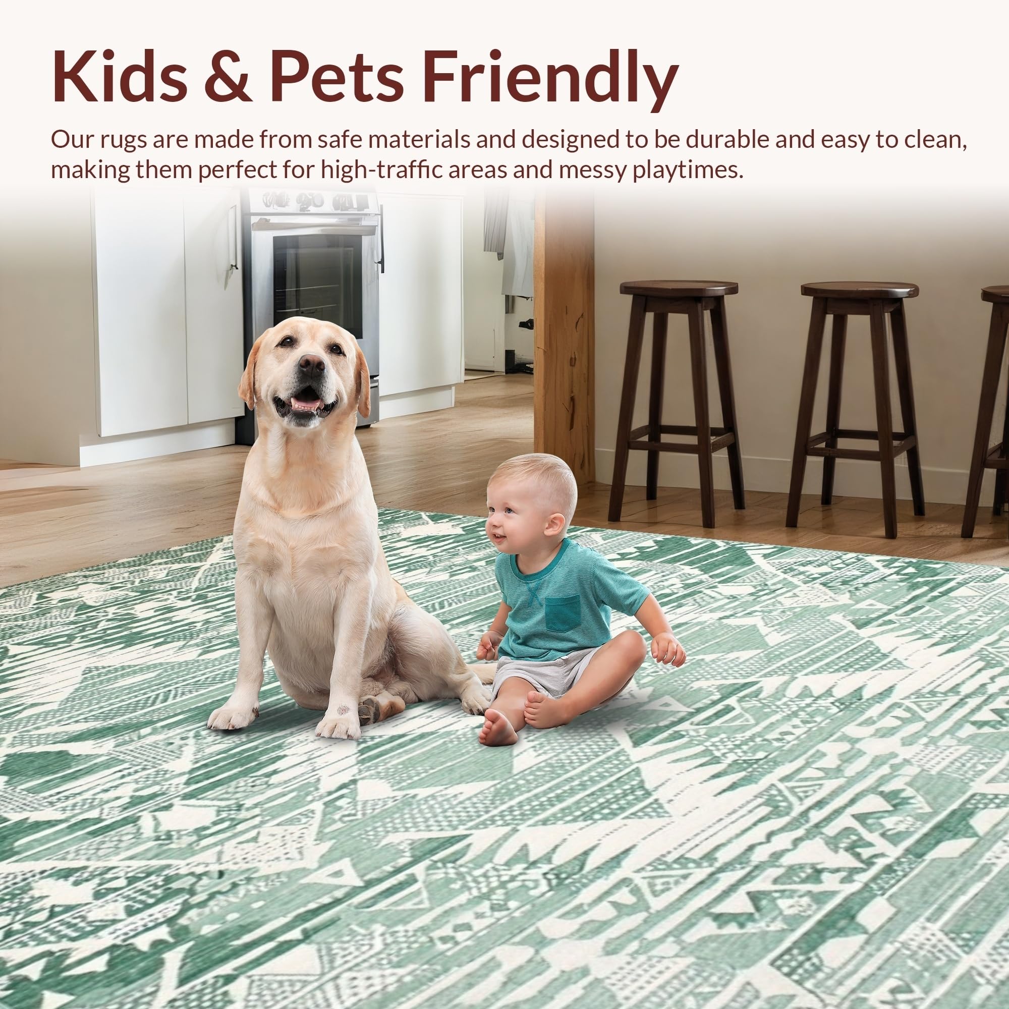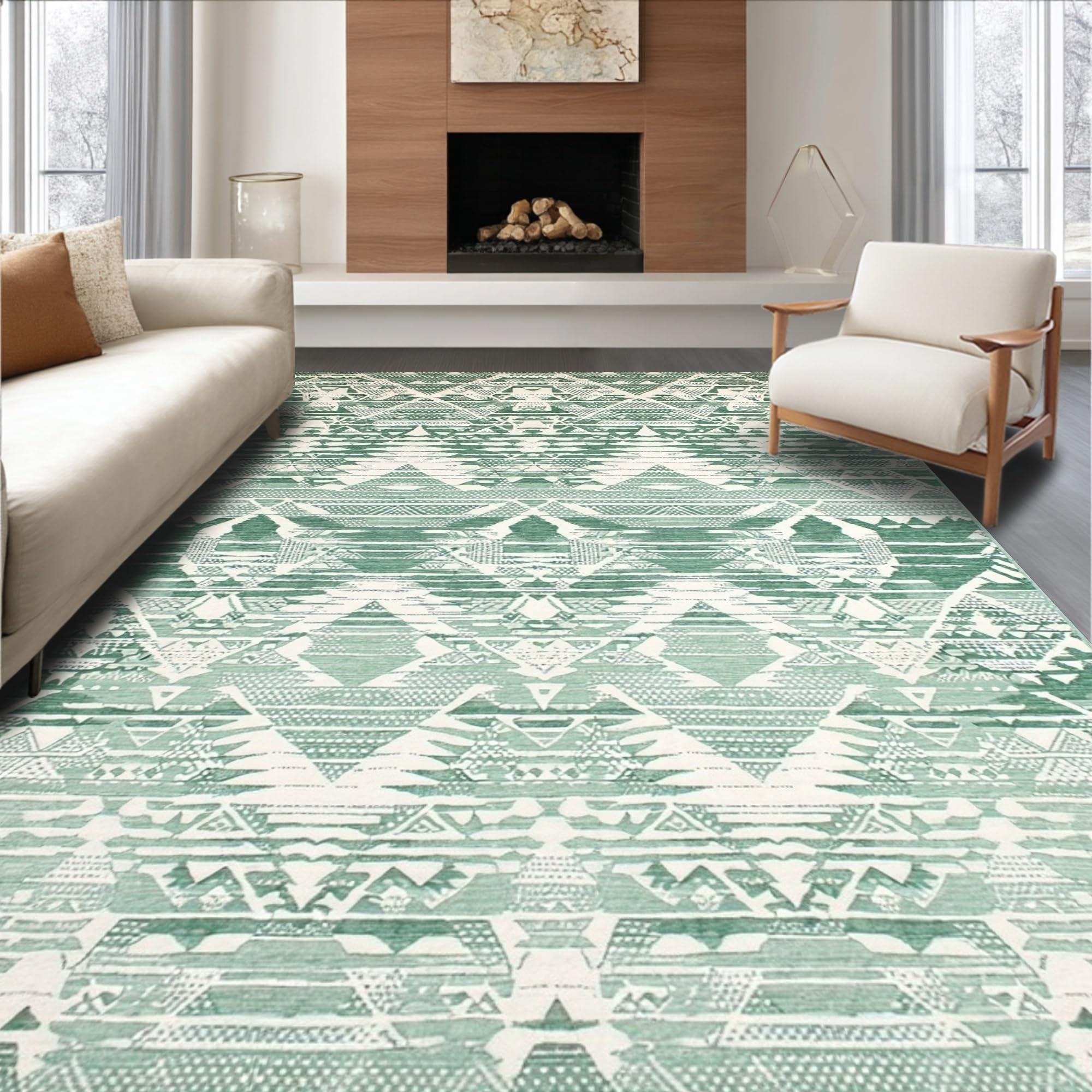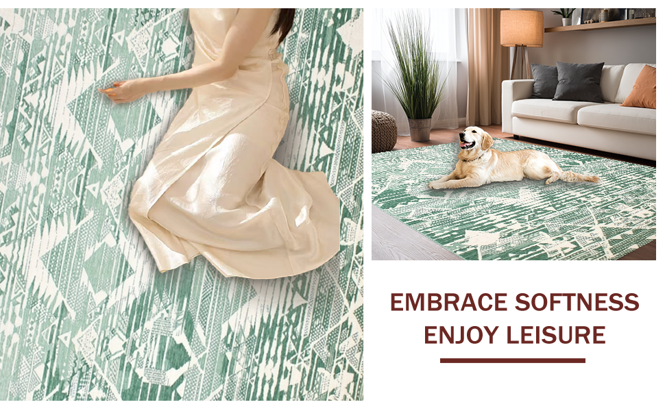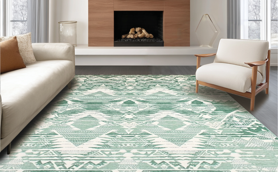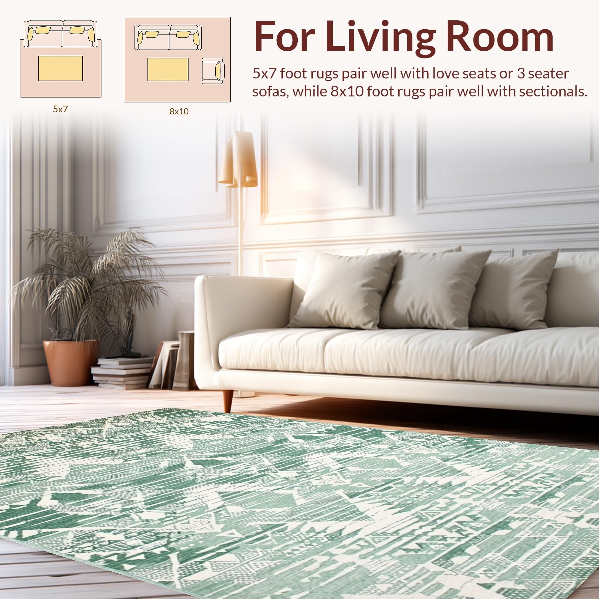 Ultra Soft Area Rug, Non Slip, Stain Resistant, Washable Area Rugs for Living Room, Bedroom, Contemporary Textured Wave Pattern(Green) Overview: