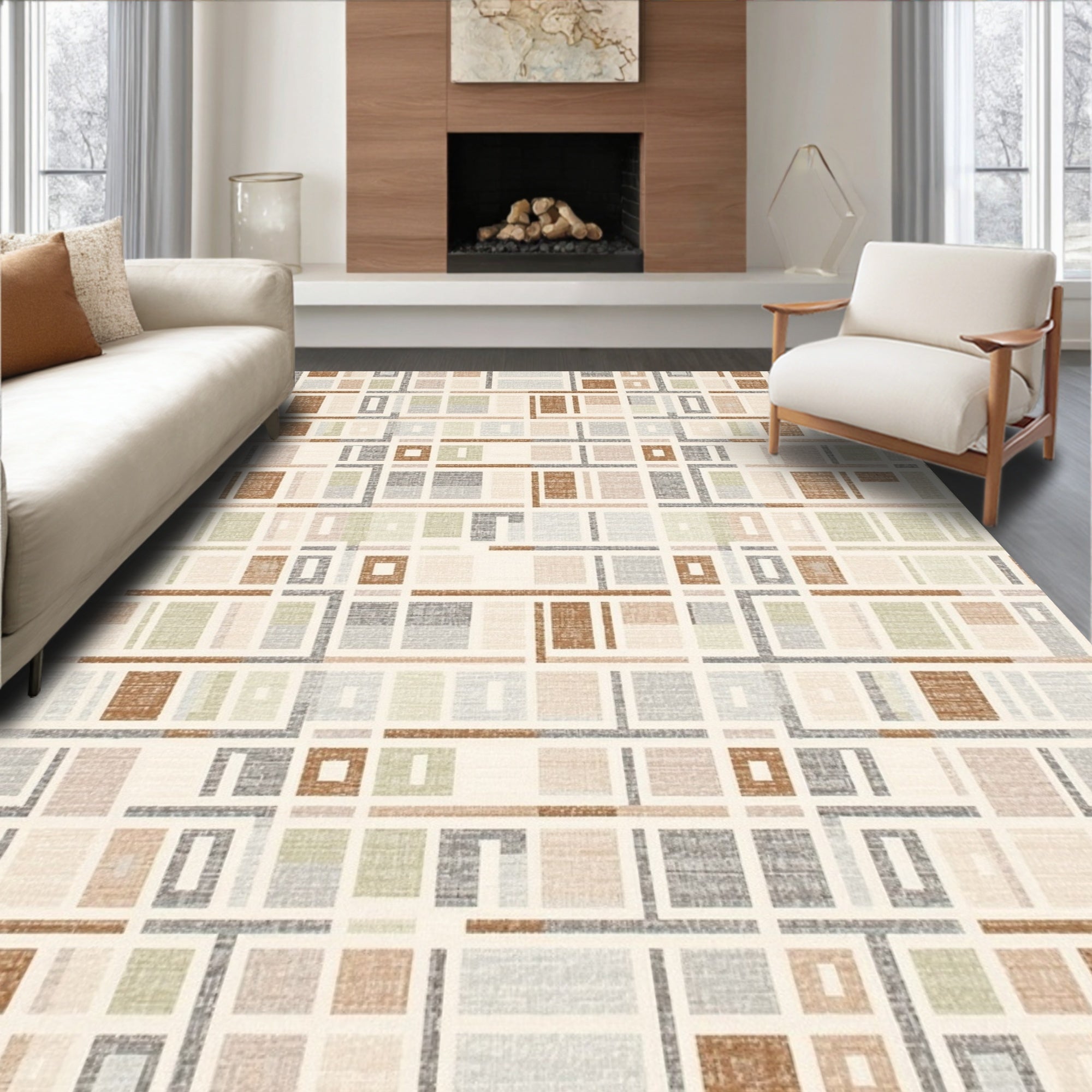 Ultra Soft Area Rug, Non Slip, Stain Resistant, Washable Area Rugs for Living Room, Bedroom, Contemporary Trellis Area High Low Design(Beige) Overview: