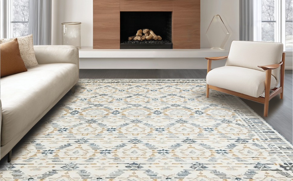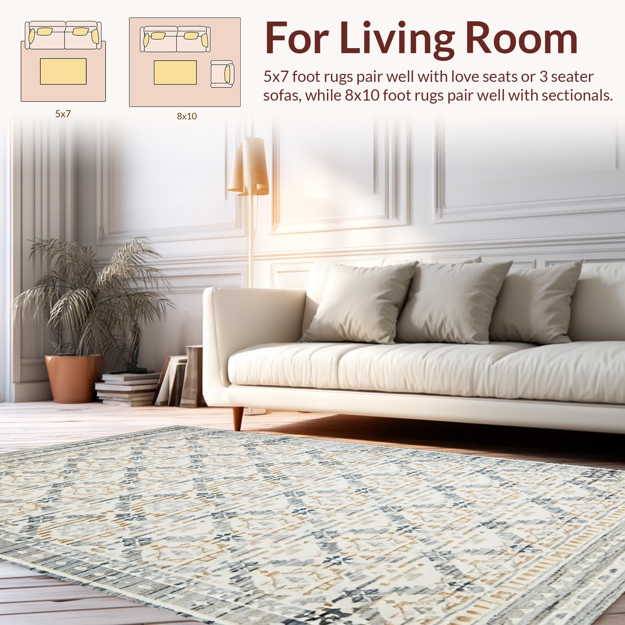 Ultra Soft Area Rug, Non Slip, Stain Resistant, Washable Area Rugs for Living Room, Bedroom, Contemporary Trellis Patterned Elegance(Beige) Overview: