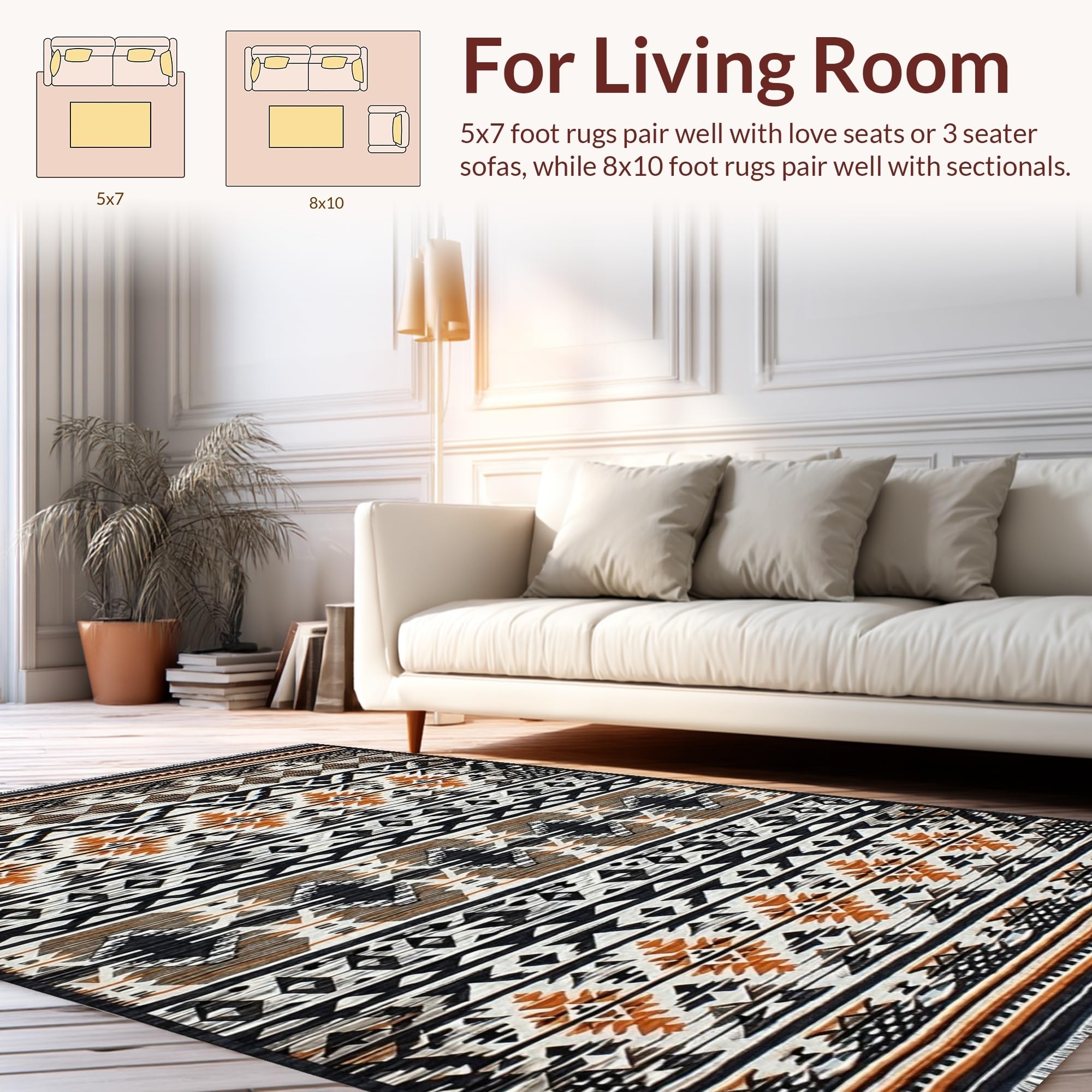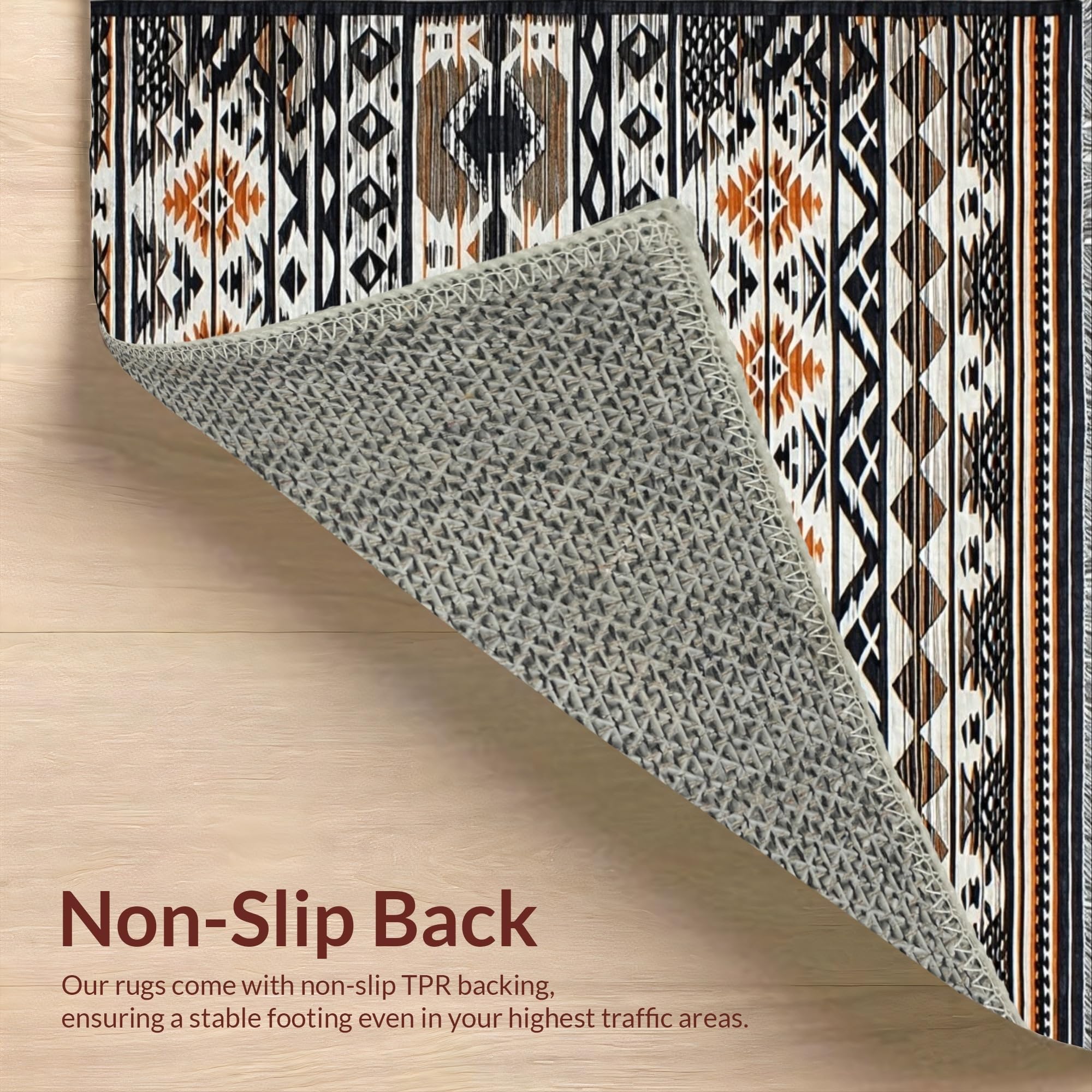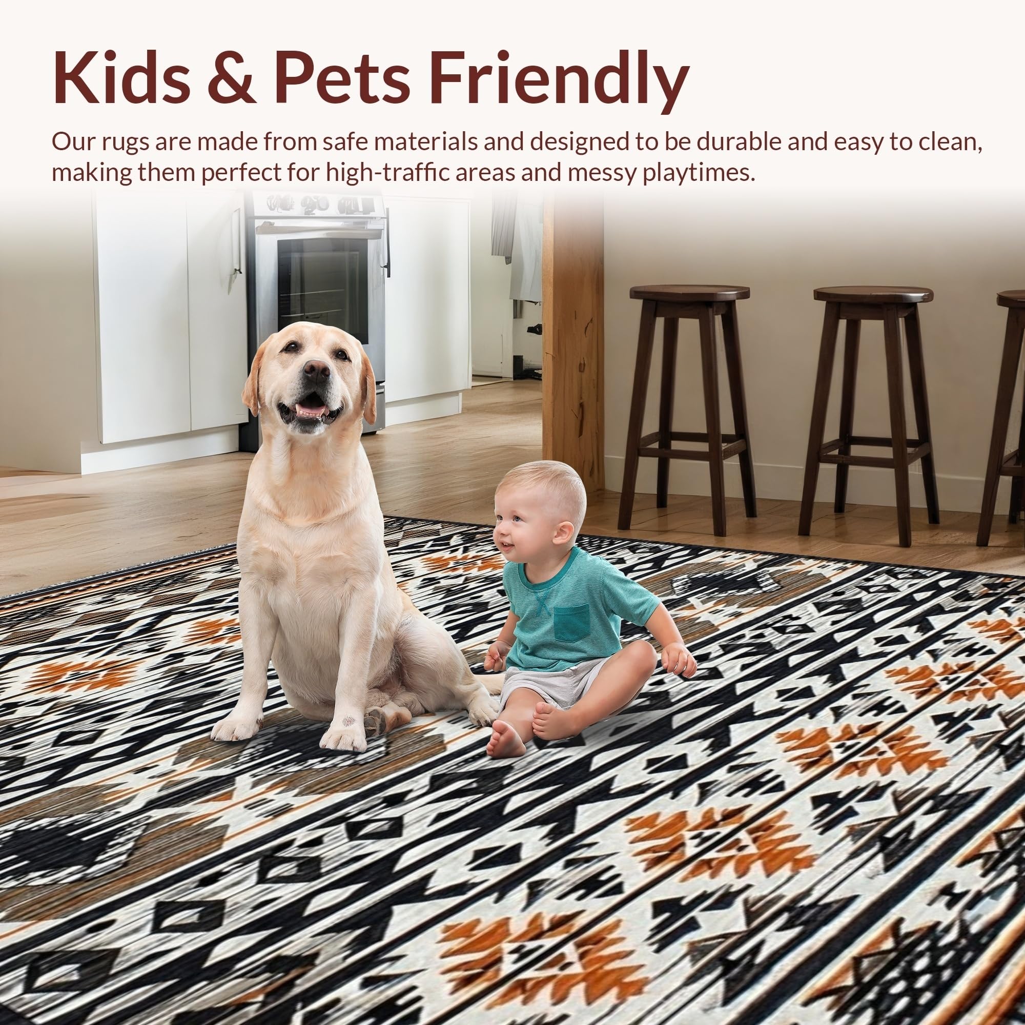 Ultra Soft Area Rug, Non Slip, Stain Resistant, Washable Area Rugs for Living Room, Bedroom, Contemporary Tribal Graphic Appeal(Black) Overview: