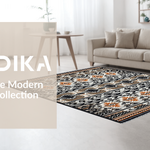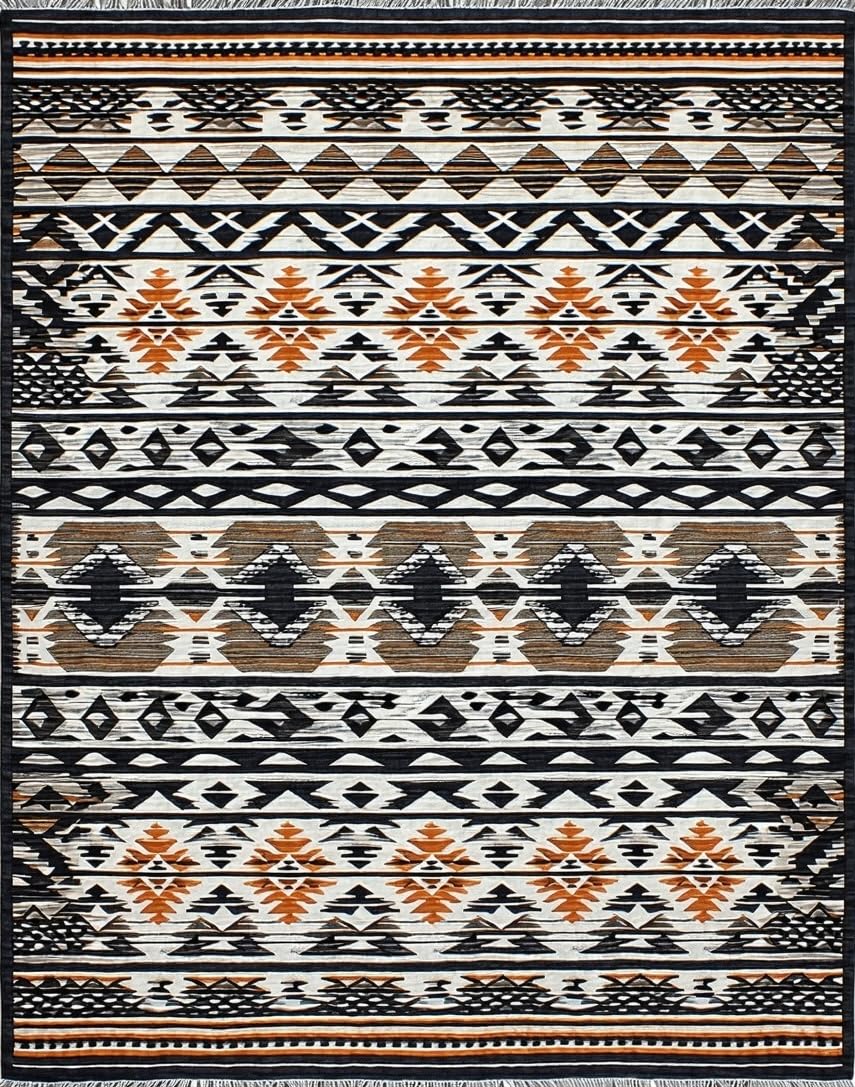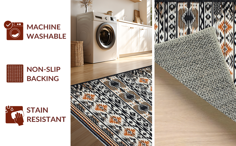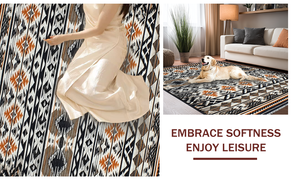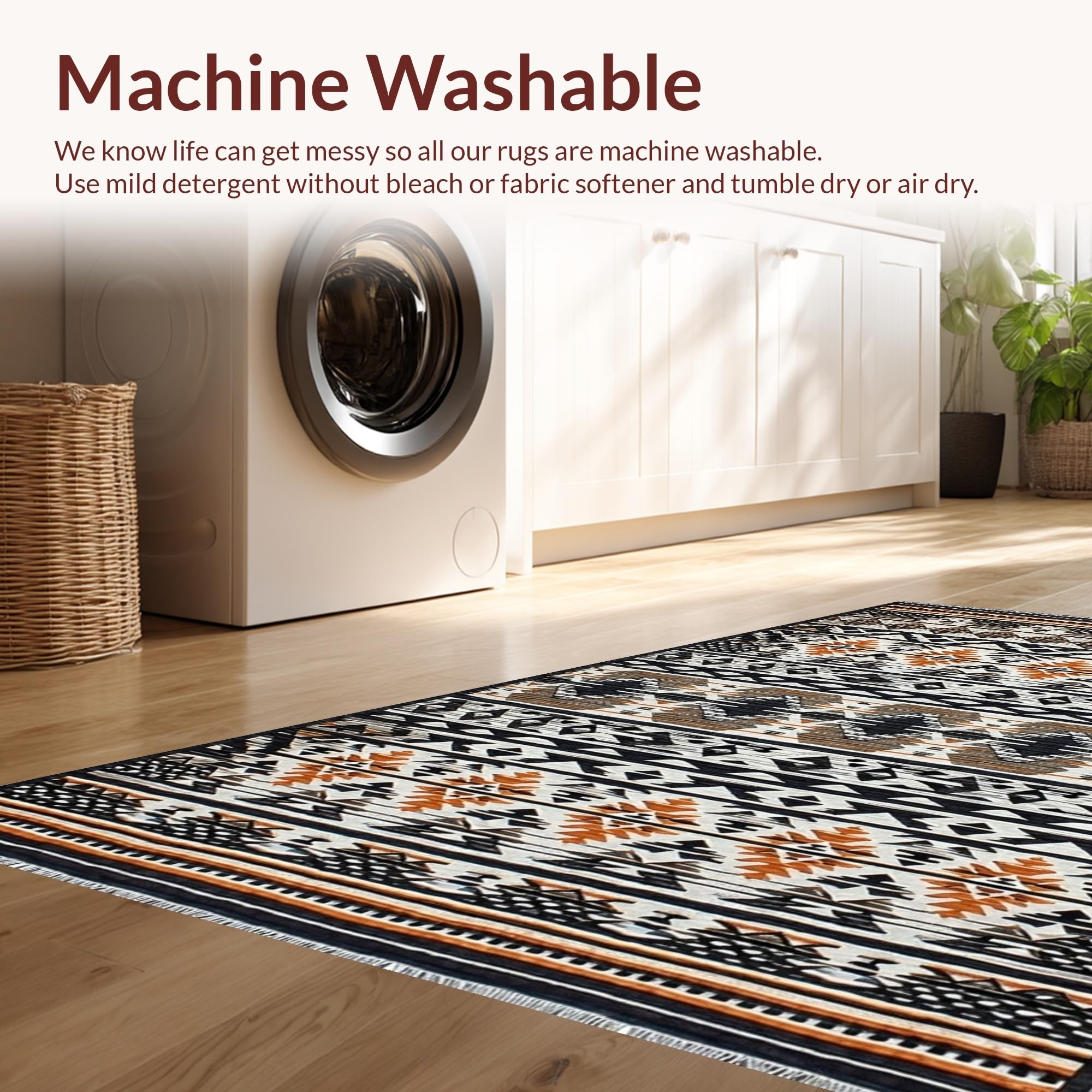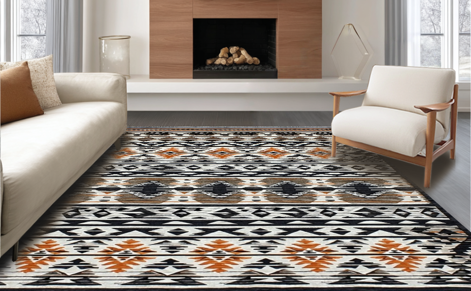 Ultra Soft Area Rug, Non Slip, Stain Resistant, Washable Area Rugs for Living Room, Bedroom, Contemporary Tribal Graphic Appeal(Black) Overview: