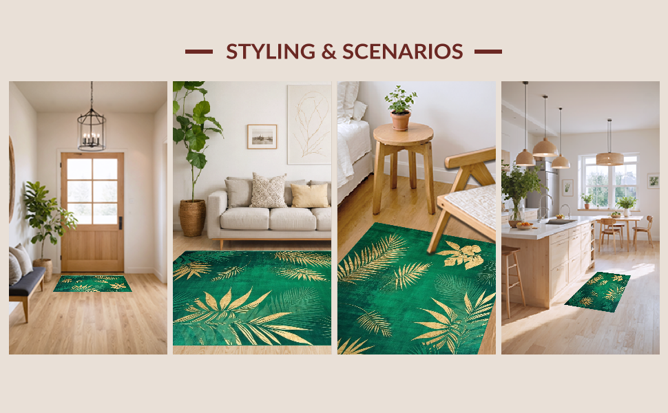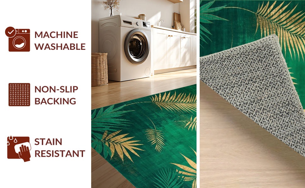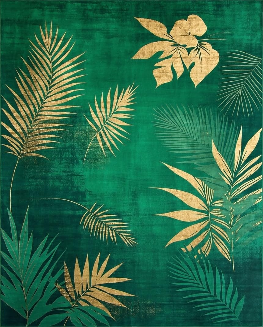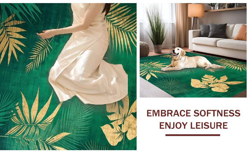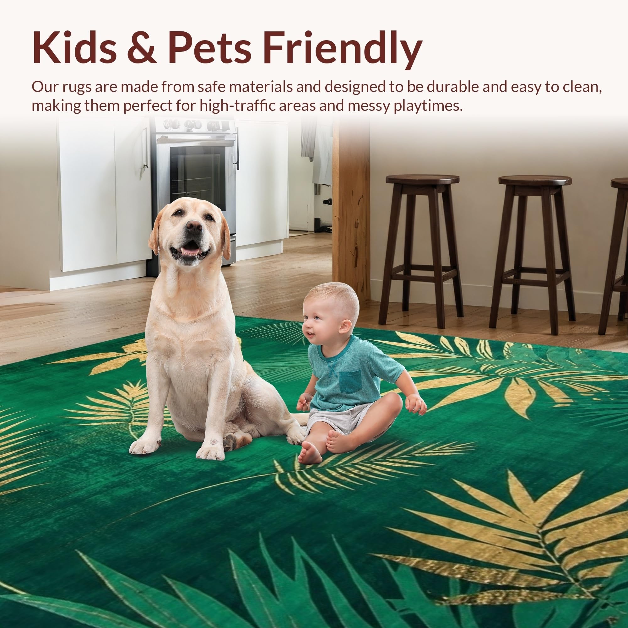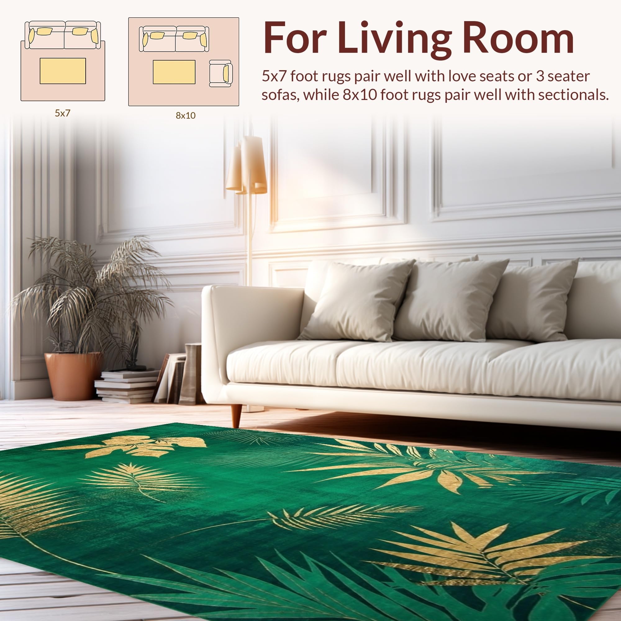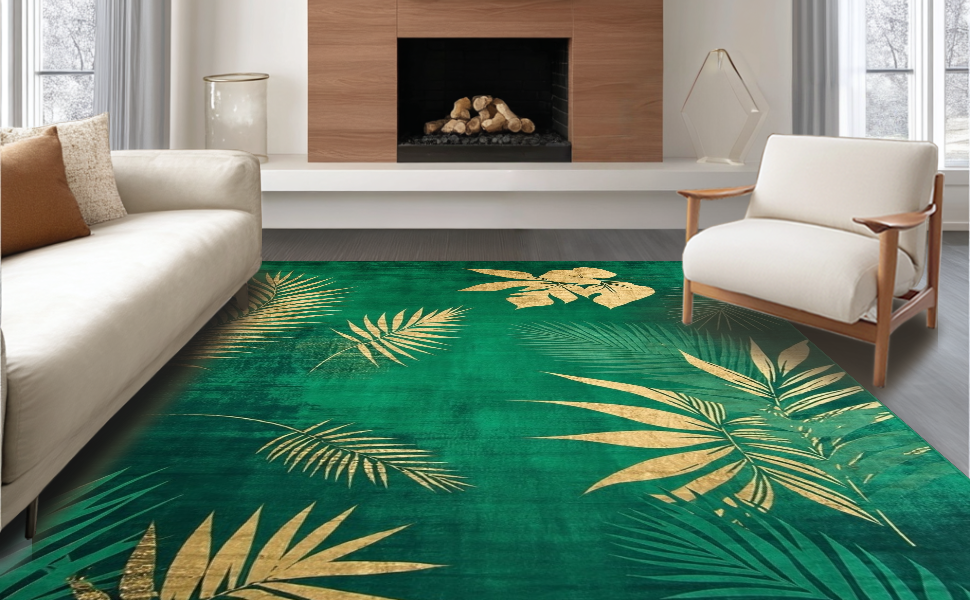 Ultra Soft Area Rug, Non Slip, Stain Resistant, Washable Area Rugs for Living Room, Bedroom, Contemporary Tropical Aesthetic(Green) Overview: