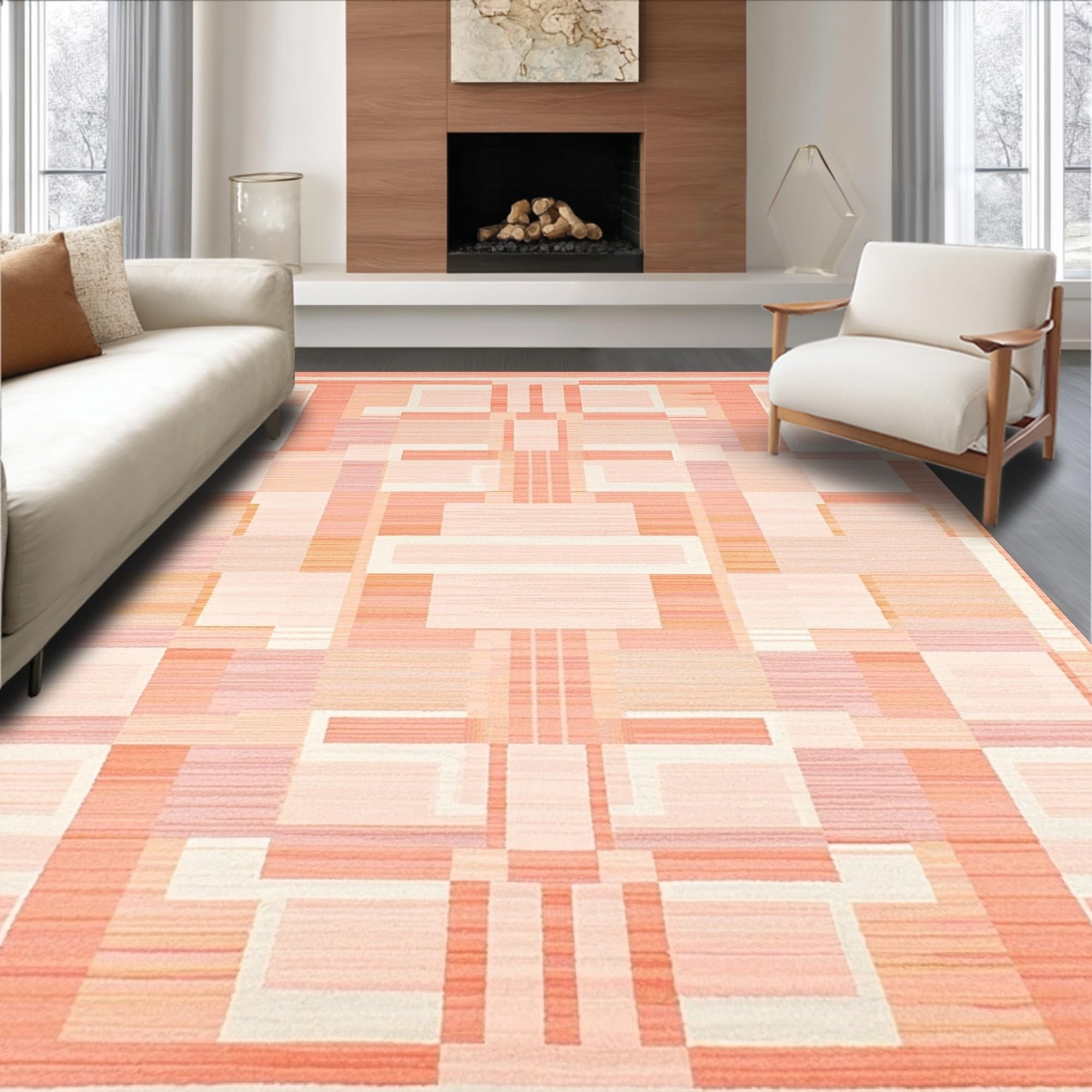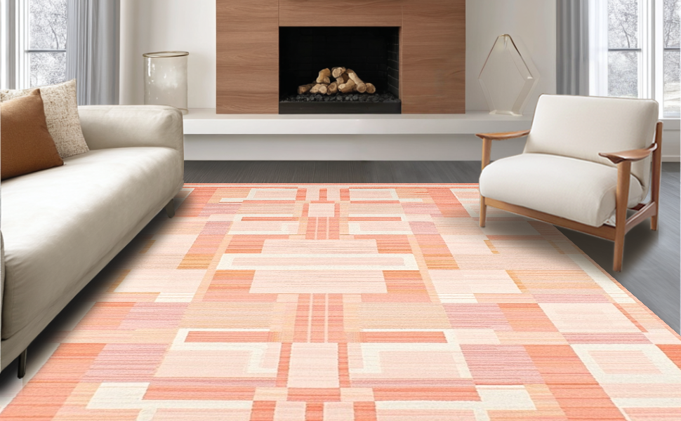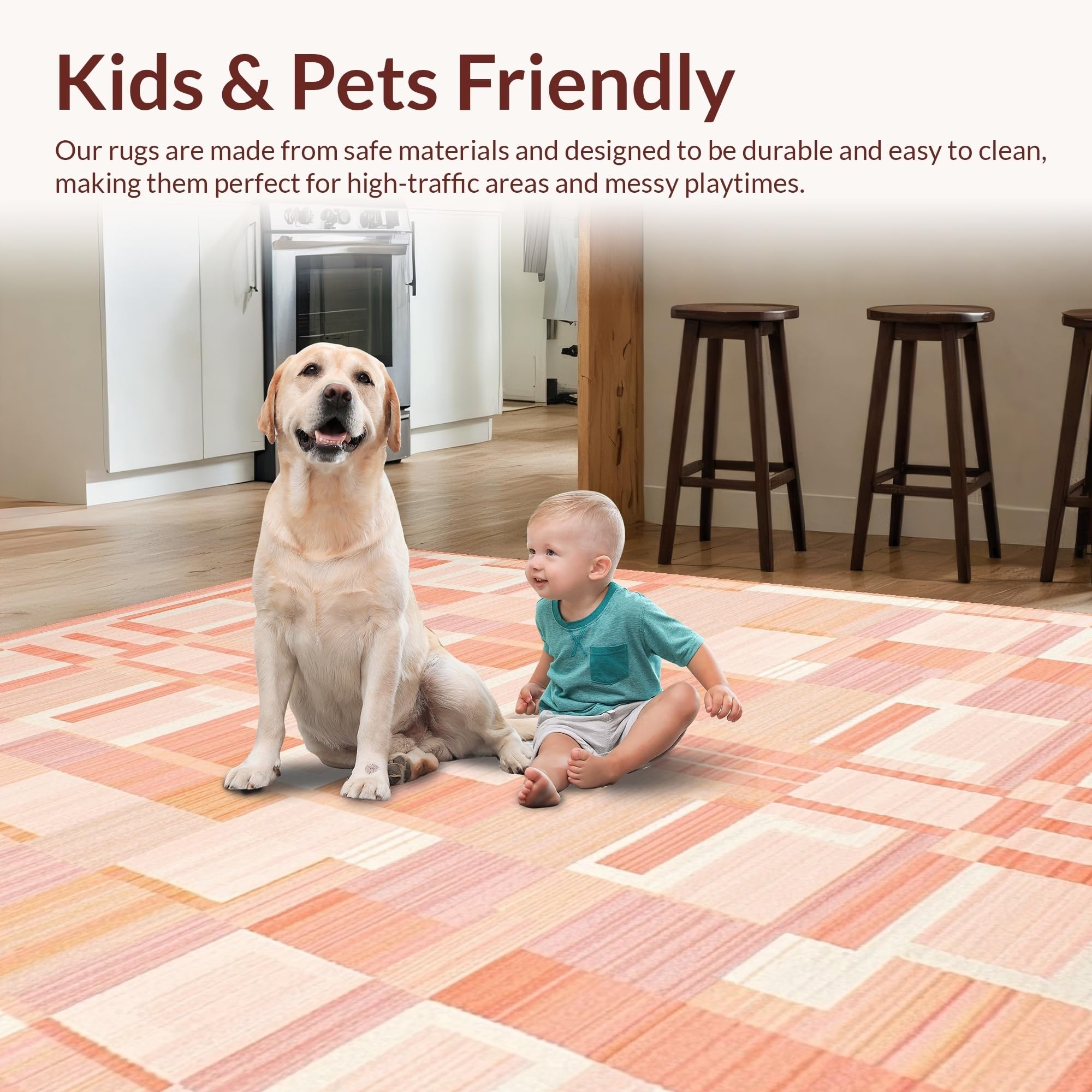 Ultra Soft Area Rug, Non Slip, Stain Resistant, Washable Area Rugs for Living Room, Bedroom, Contemporary Vibrant Geometric Design(Pink) Overview: