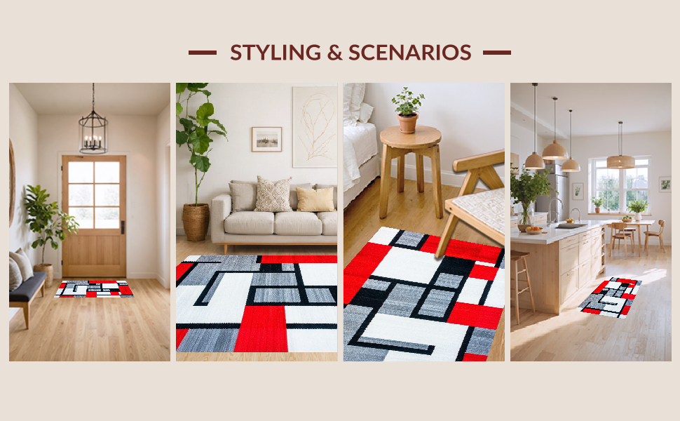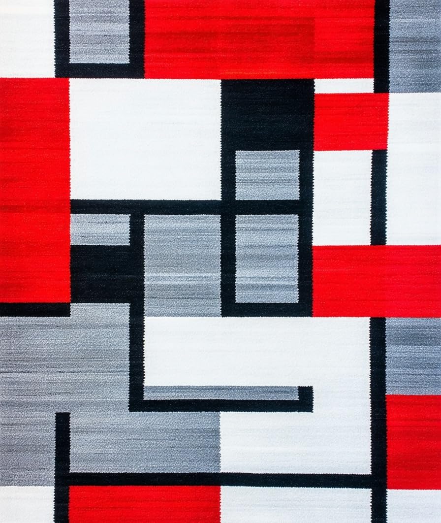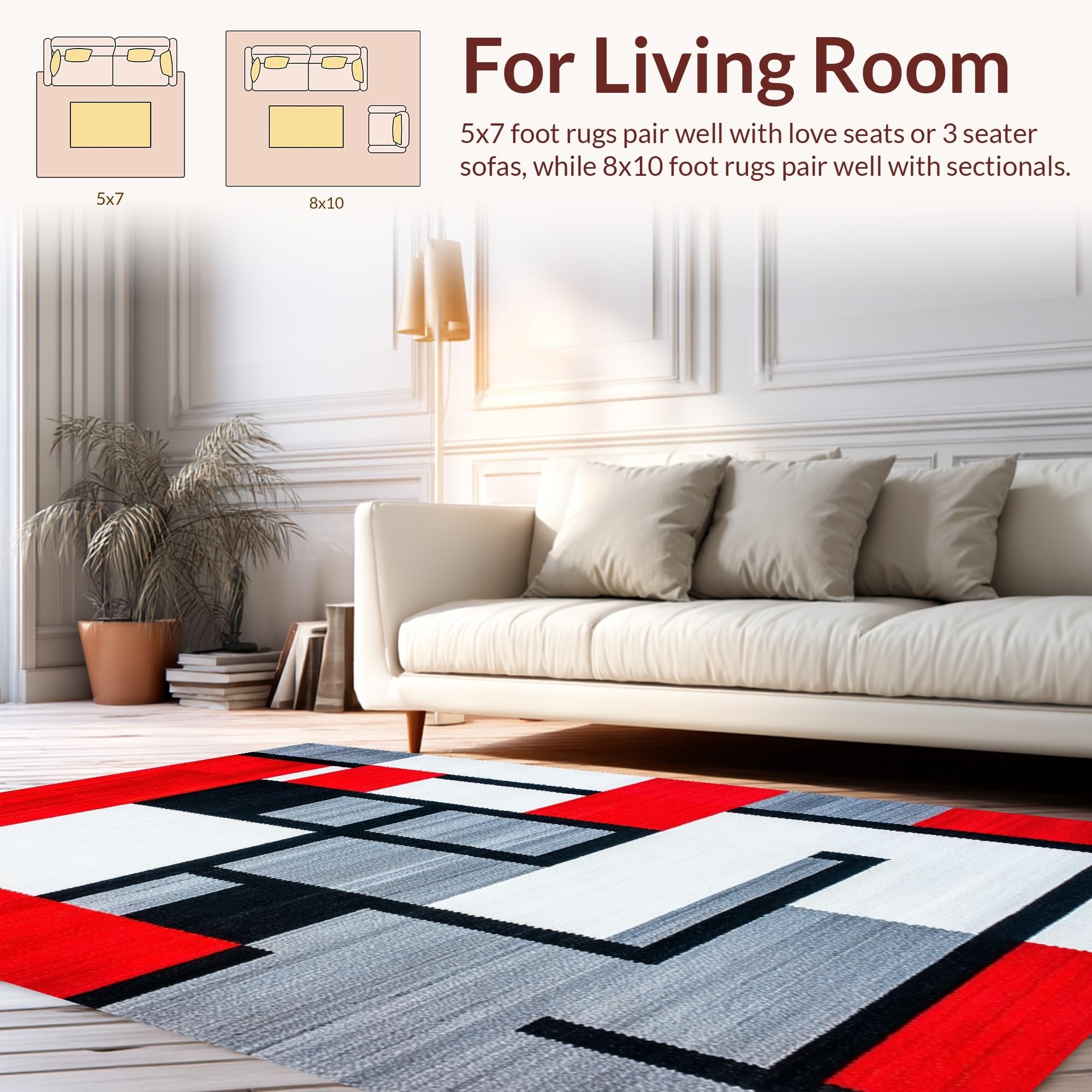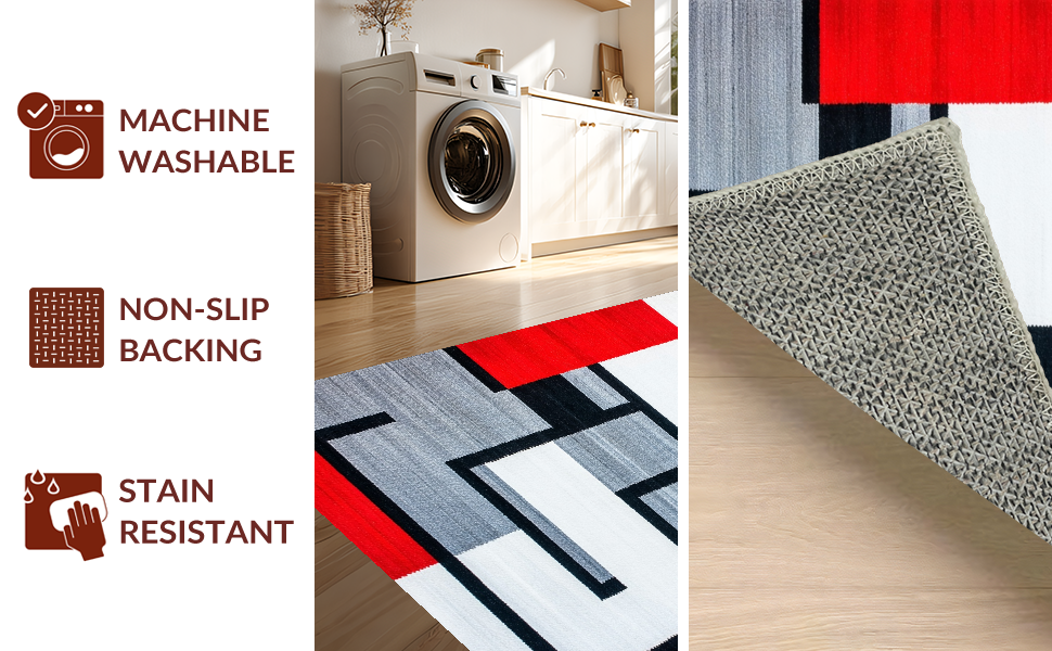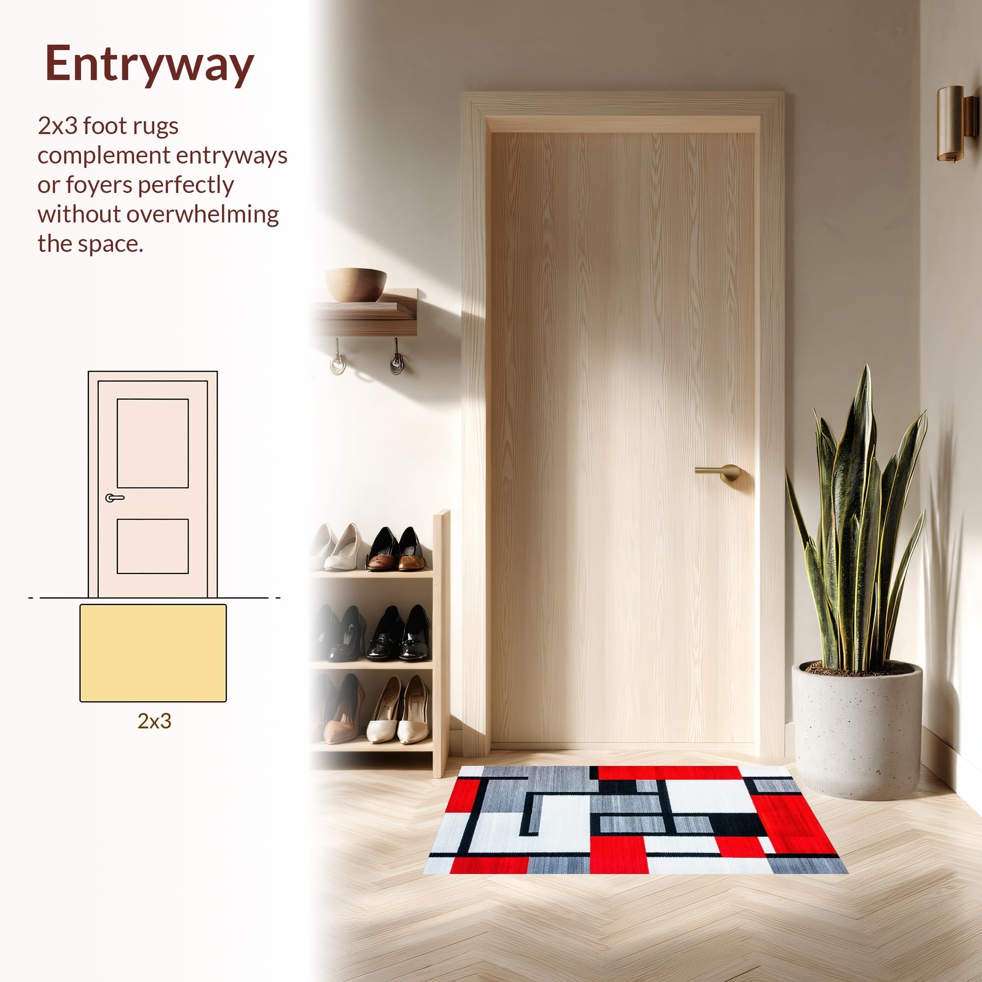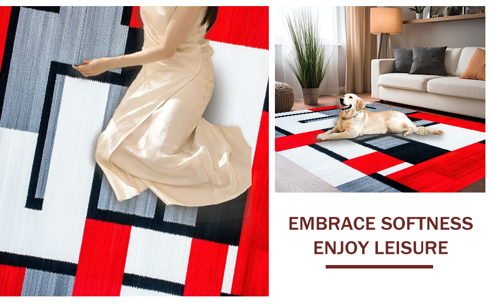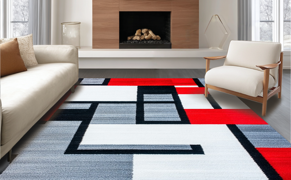 Ultra Soft Area Rug, Non Slip, Stain Resistant, Washable Area Rugs for Living Room, Bedroom, Contemporary Vibrant Geometric Layout(Red) Overview: