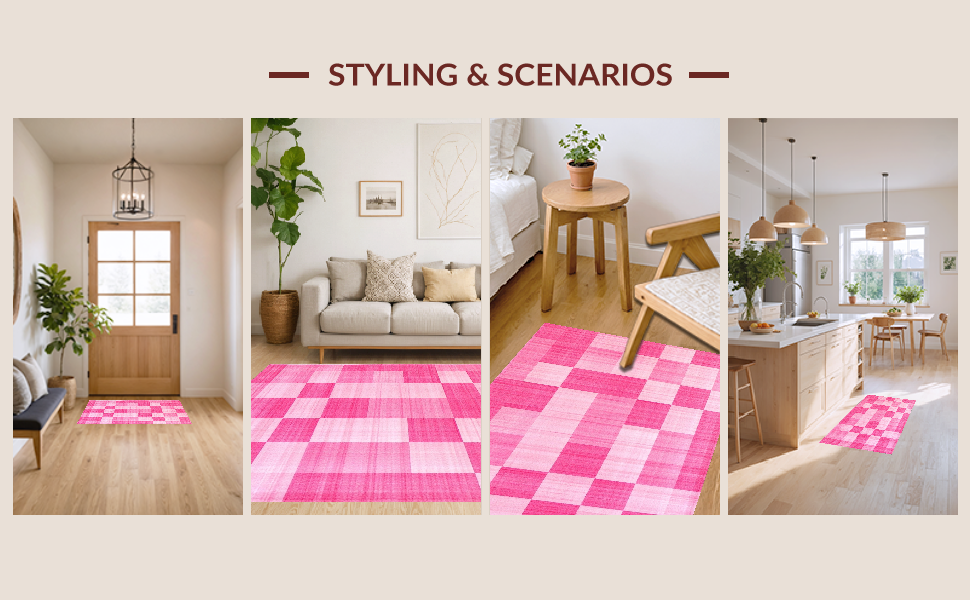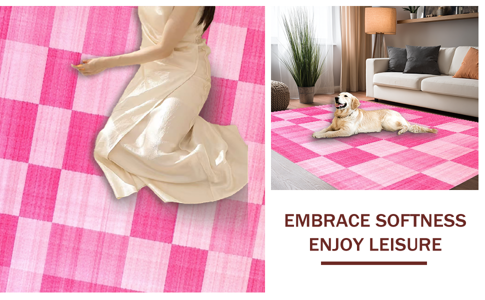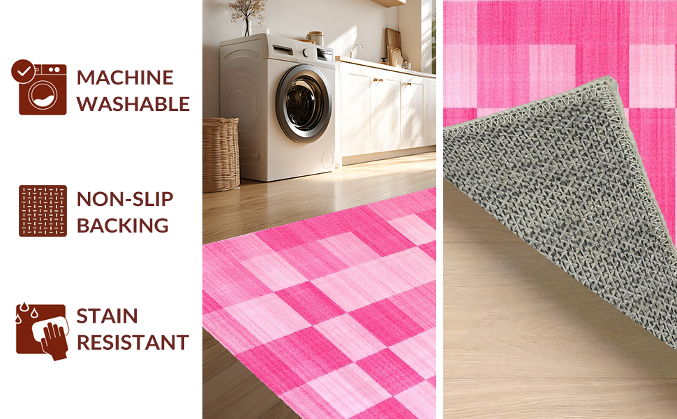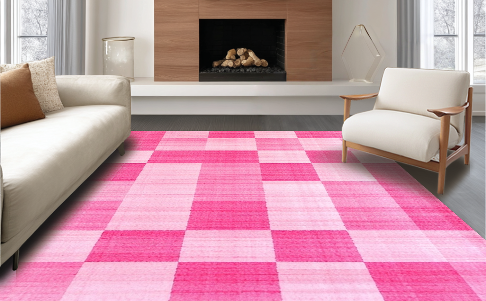 Ultra Soft Area Rug, Non Slip, Stain Resistant, Washable Area Rugs for Living Room, Bedroom, Contemporary Vibrant Gridded Aesthetic(Pink) Overview: