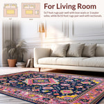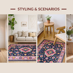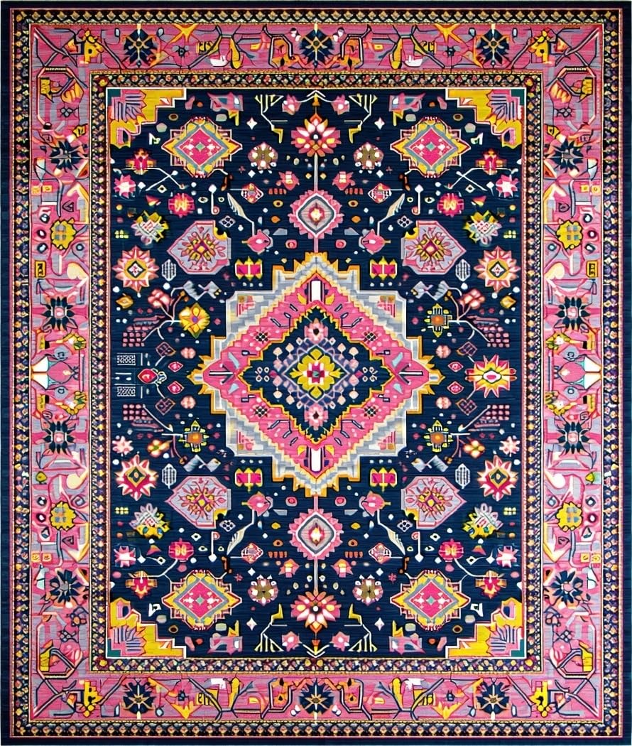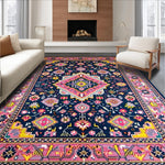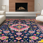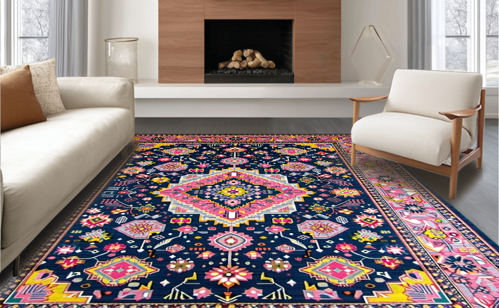 Ultra Soft Area Rug, Non Slip, Stain Resistant, Washable Area Rugs for Living Room, Bedroom, Contemporary Vibrant Medallion Style(Blue) Overview: