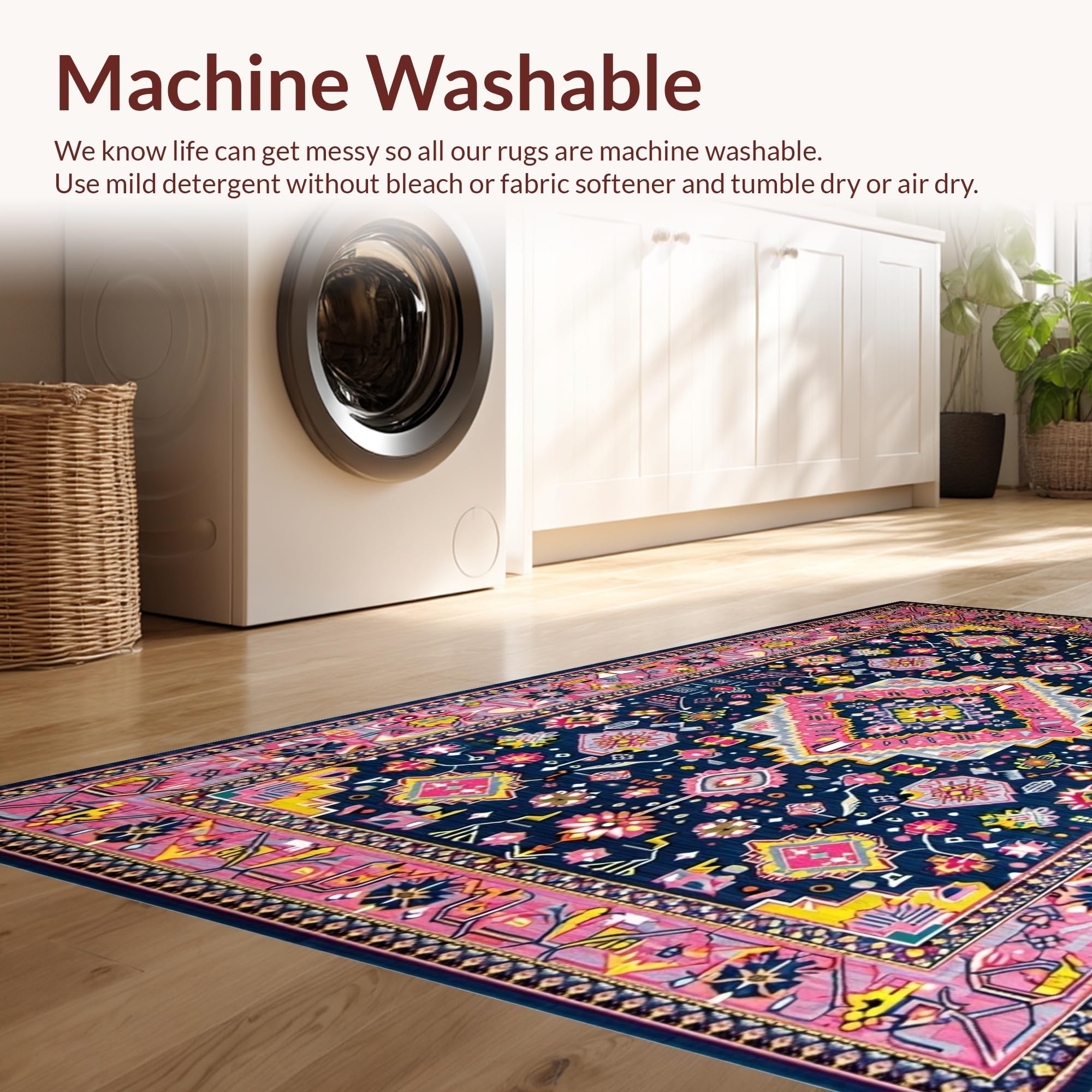 - Machine Washable: Our rugs can be easily thrown in the wash machine.