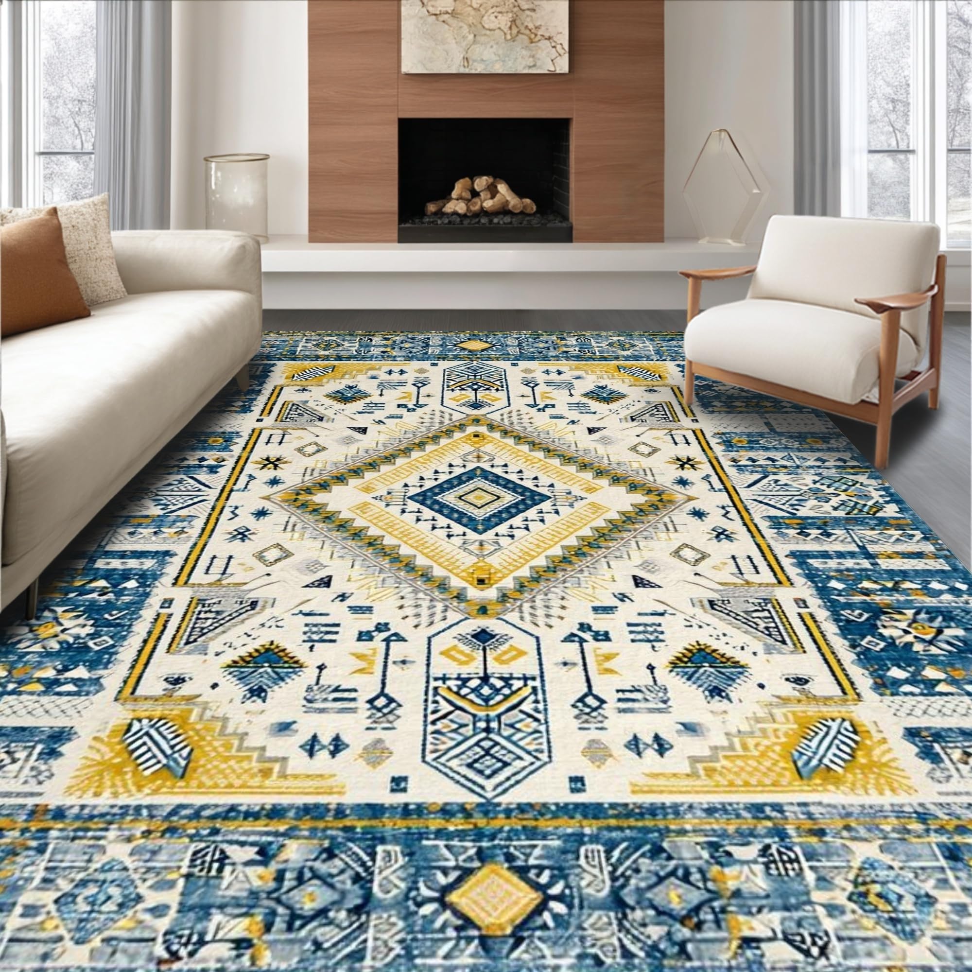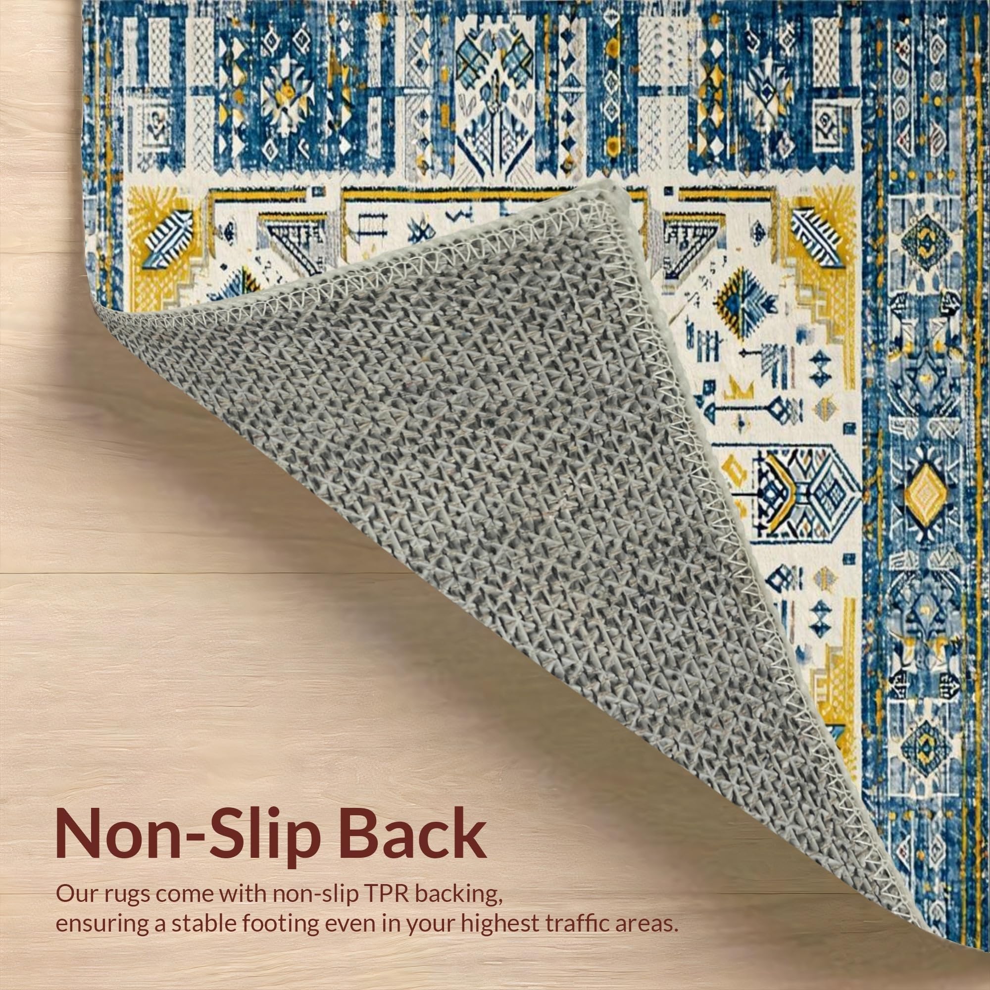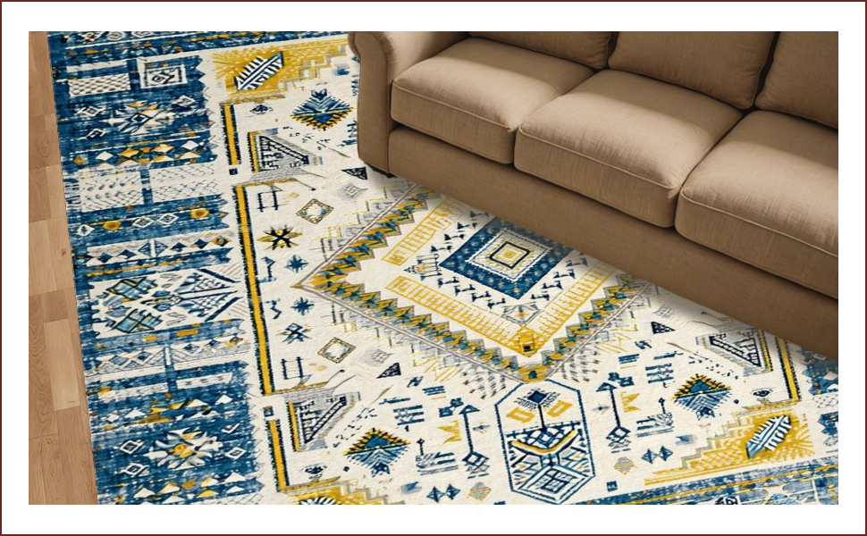 Ultra Soft Area Rug, Non Slip, Stain Resistant, Washable Area Rugs for Living Room, Bedroom, Contemporary Vibrant Tribal Motif(Blue) Overview: