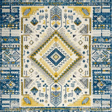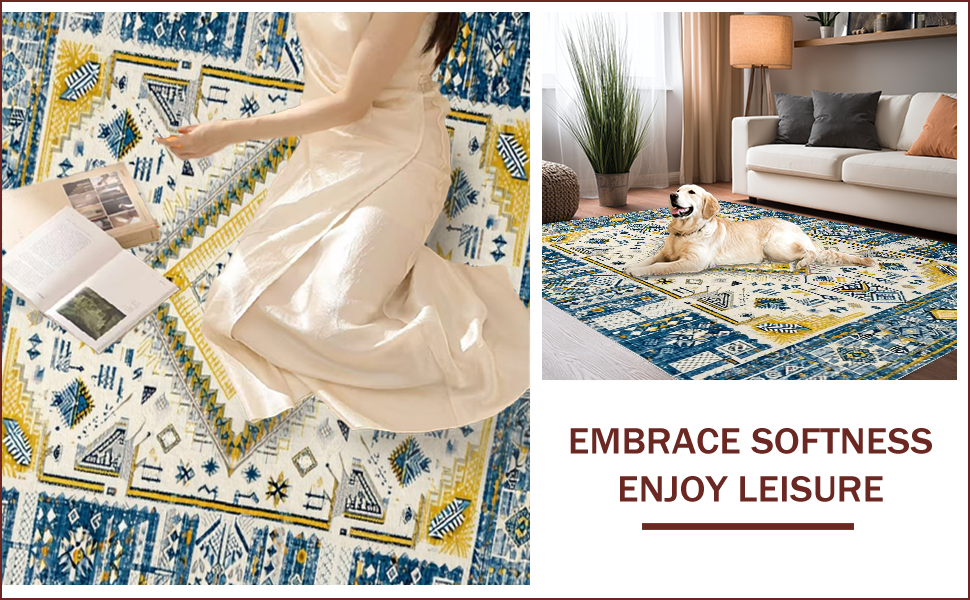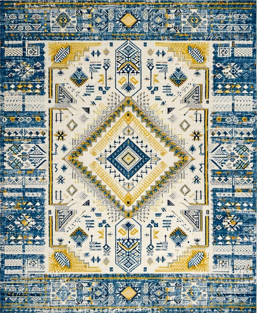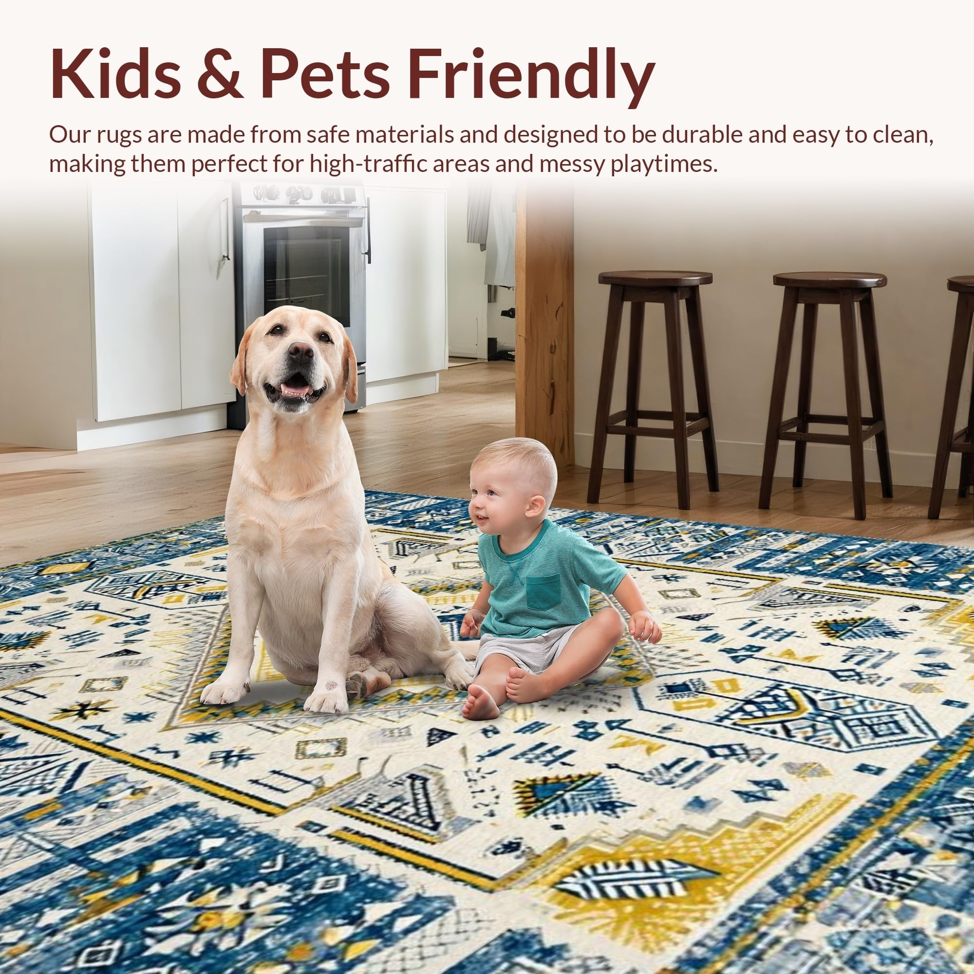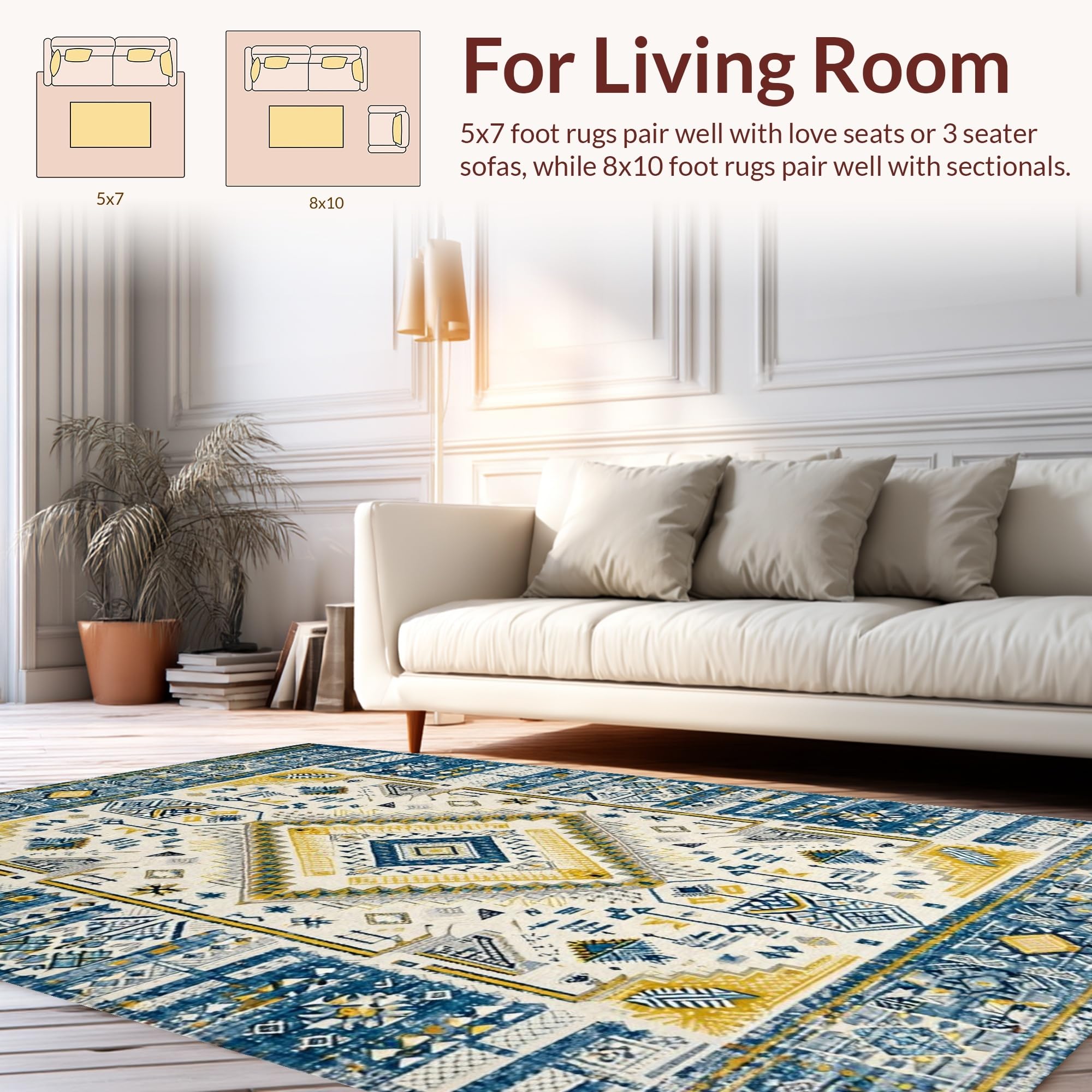 Ultra Soft Area Rug, Non Slip, Stain Resistant, Washable Area Rugs for Living Room, Bedroom, Contemporary Vibrant Tribal Motif(Blue) Overview: