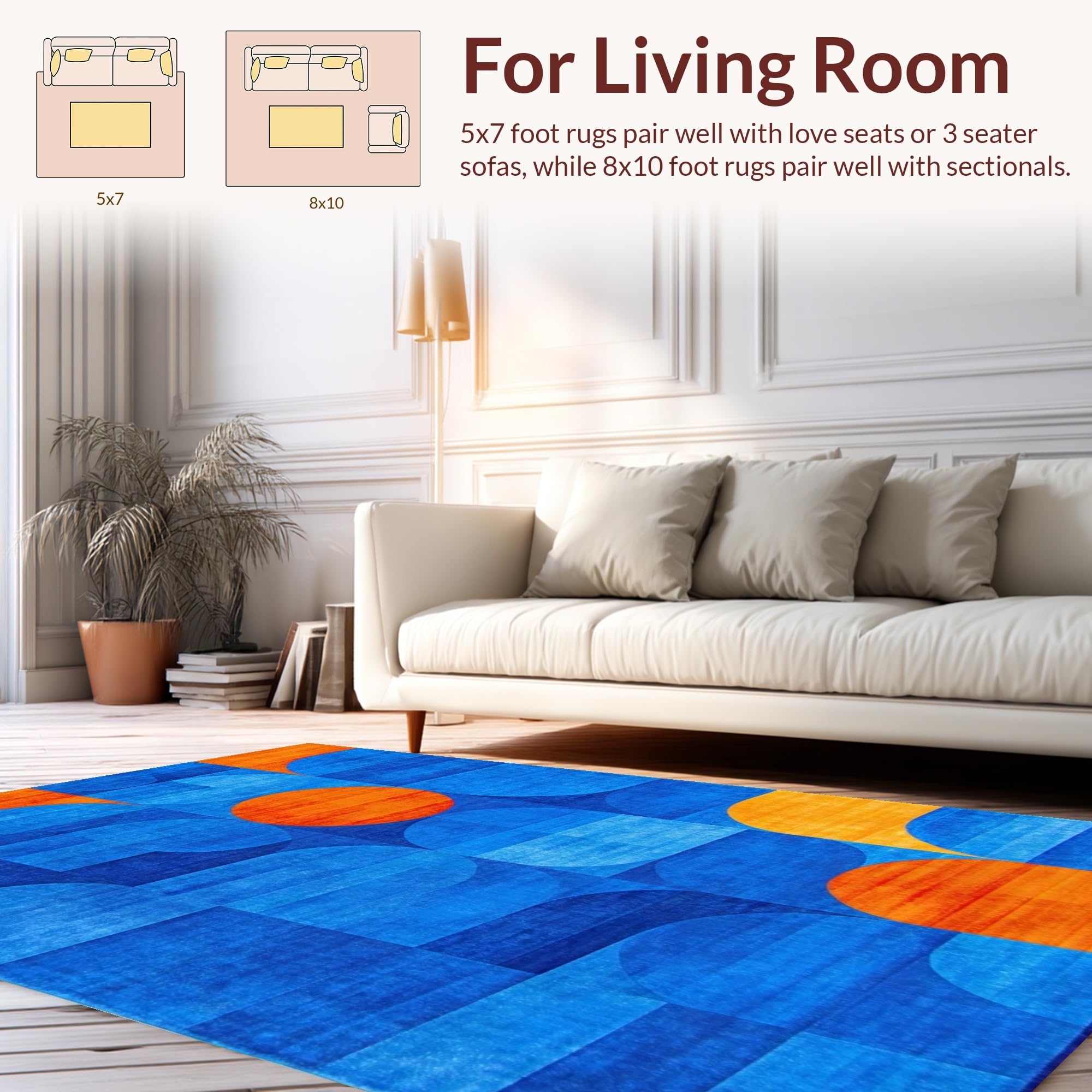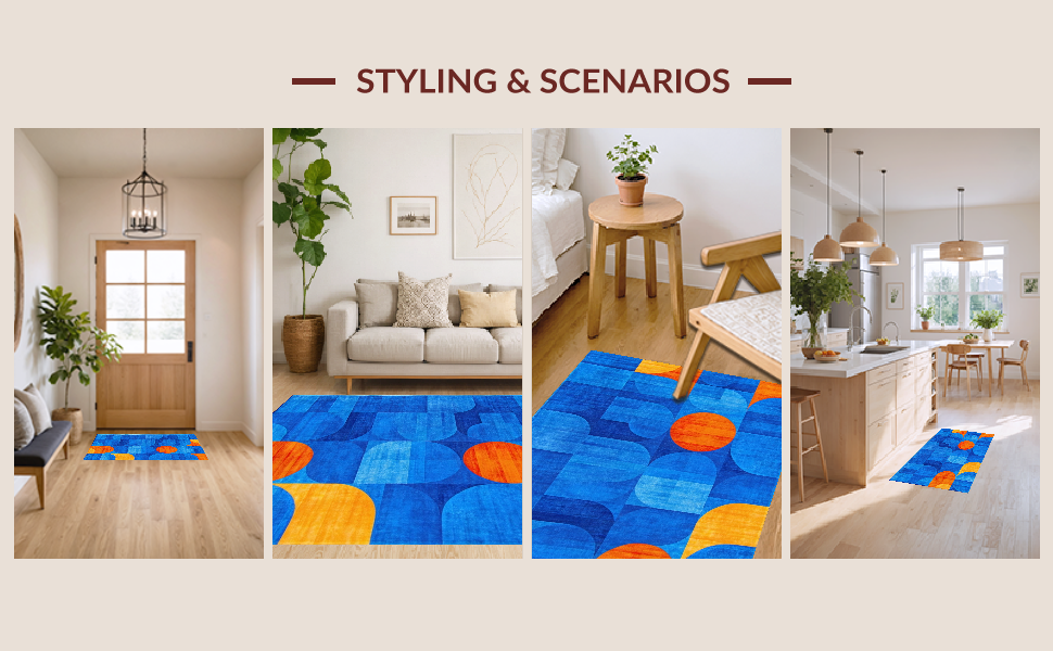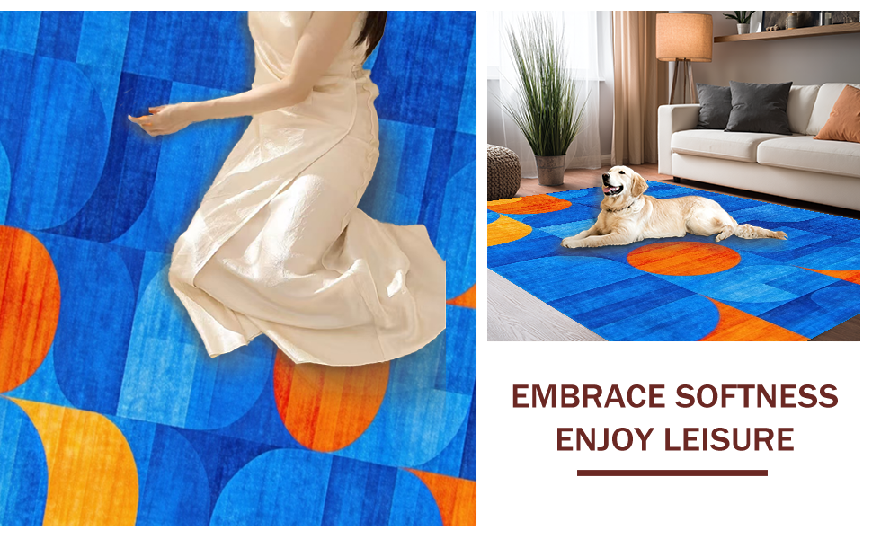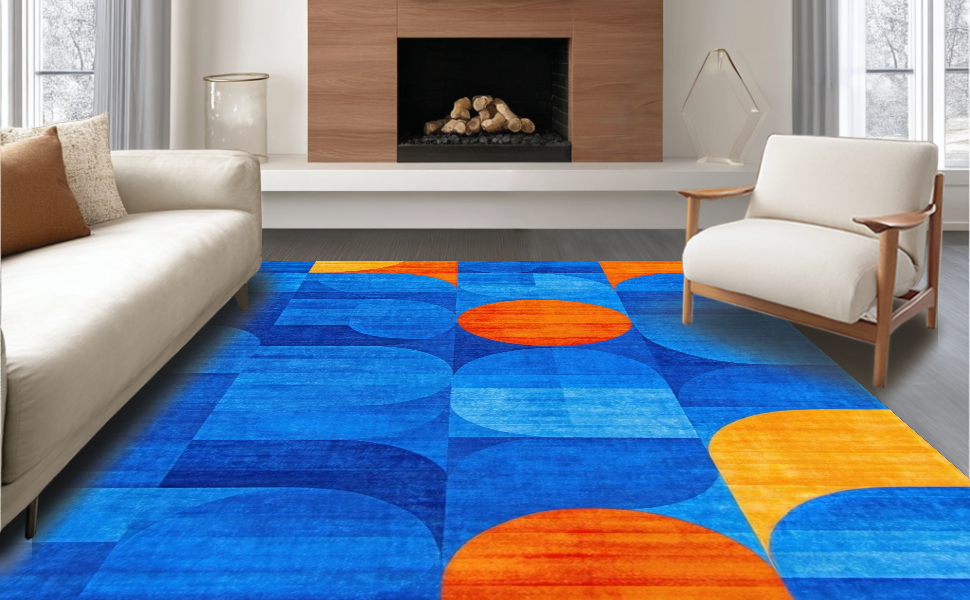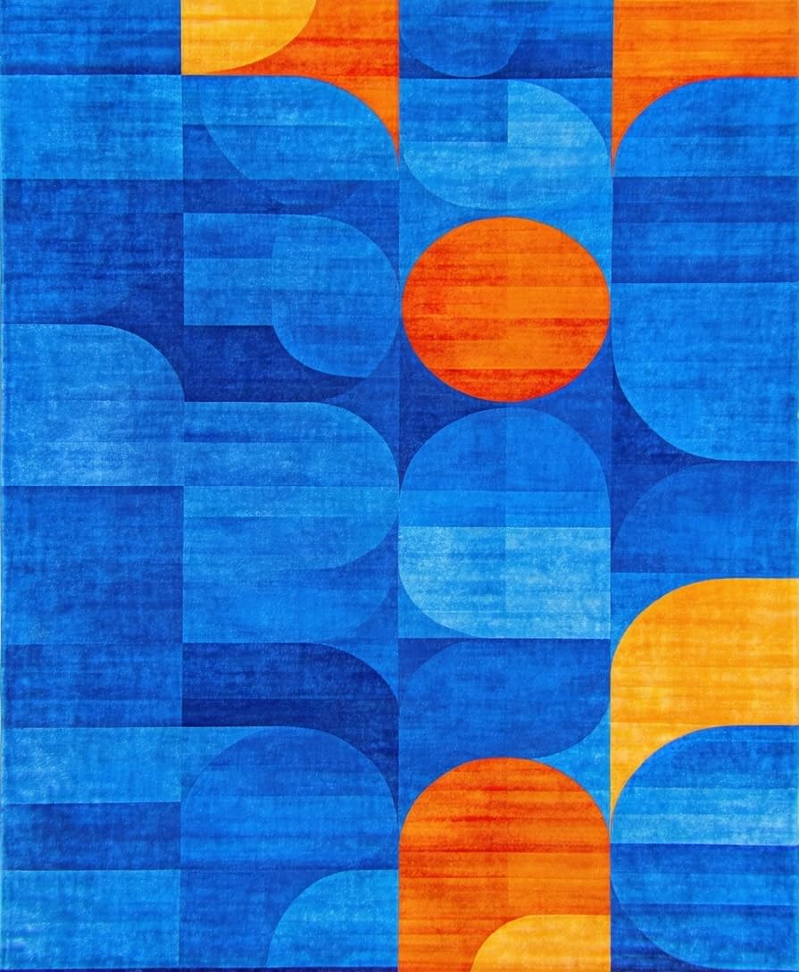 Ultra Soft Area Rug, Non Slip, Stain Resistant, Washable Area Rugs for Living Room, Bedroom, Contemporary Vibrant Wave Design(Blue) Overview: