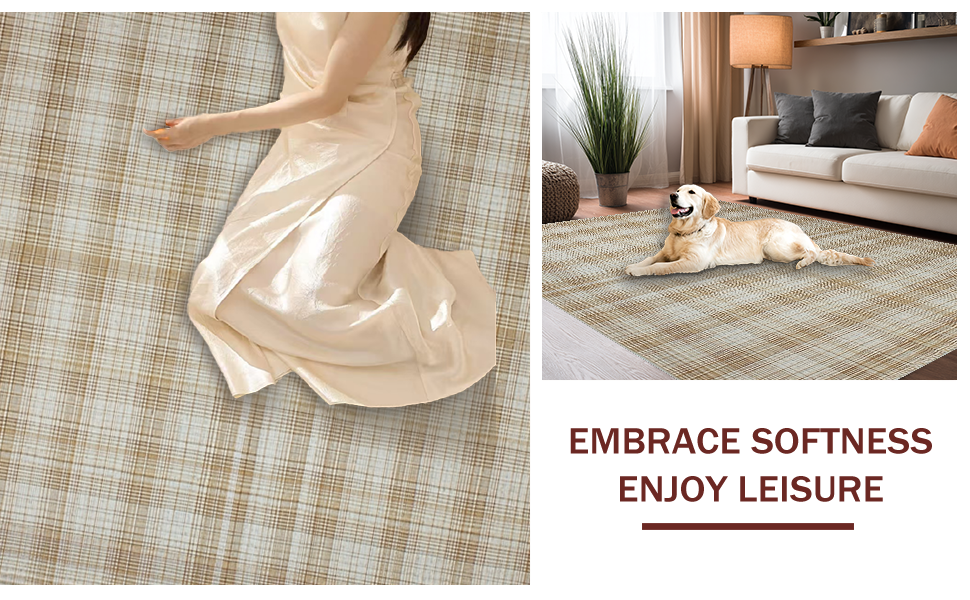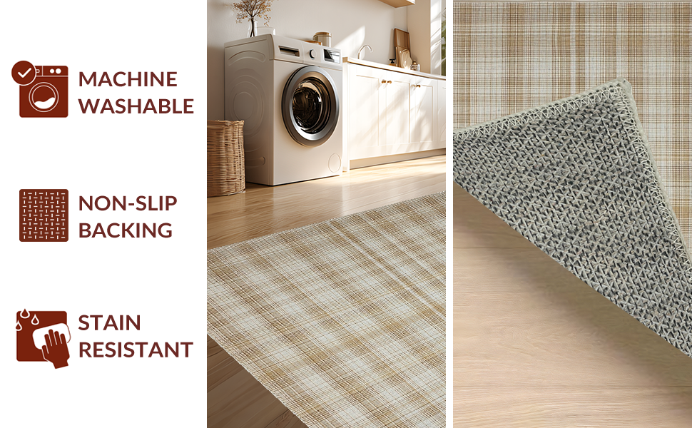 Ultra Soft Area Rug, Non Slip, Stain Resistant, Washable Area Rugs for Living Room, Bedroom, Contemporary Vintage Checkerboard Style(Beige) Overview:
