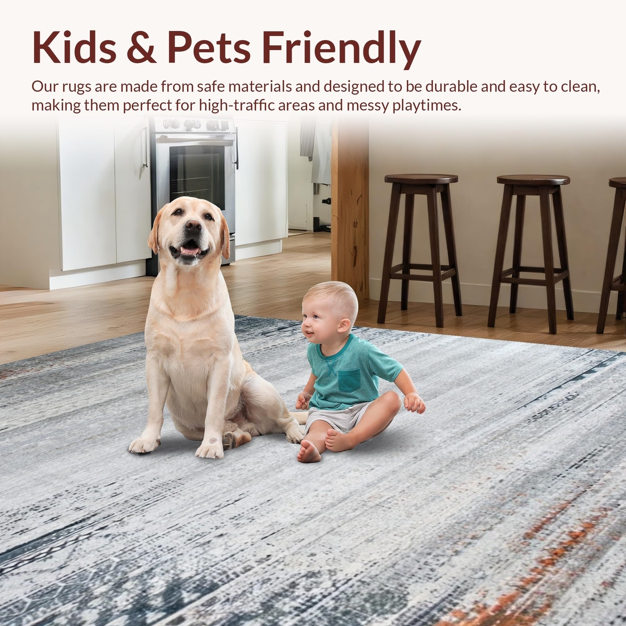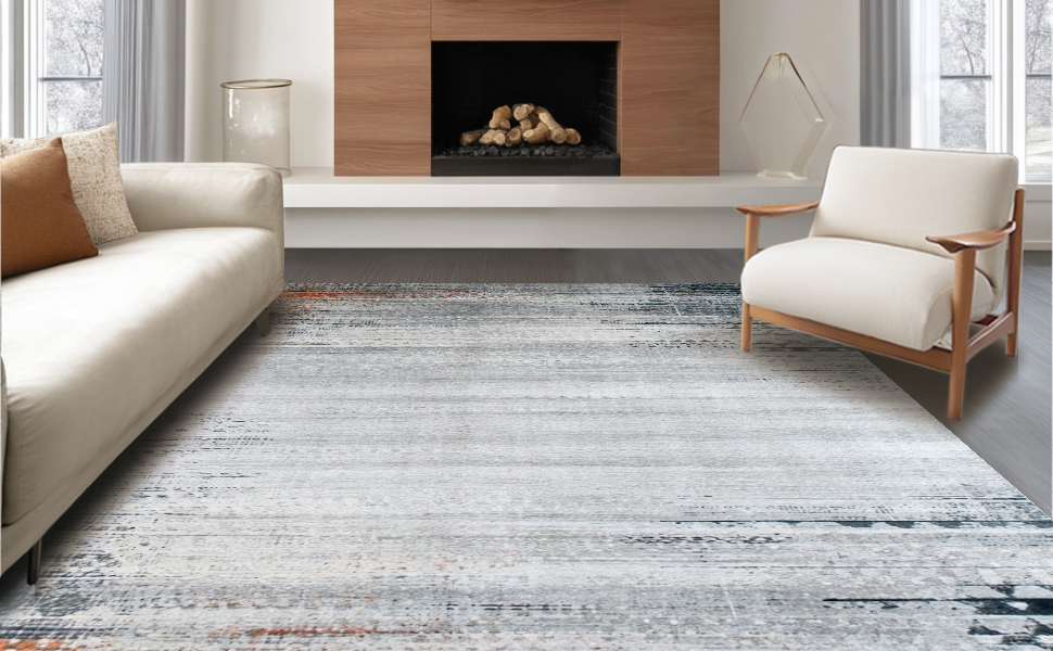 Ultra Soft Area Rug, Non Slip, Stain Resistant, Washable Area Rugs for Living Room, Bedroom, Contemporary Warm Toned Design(Gray) Overview: