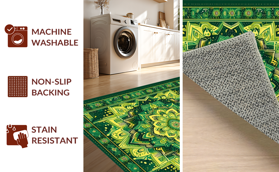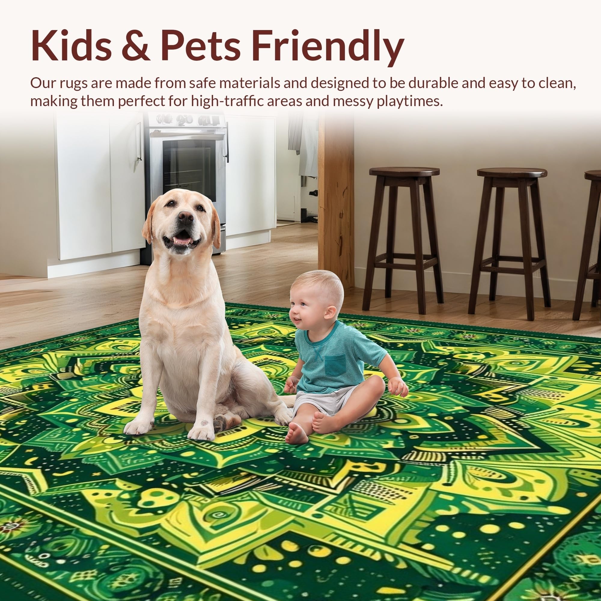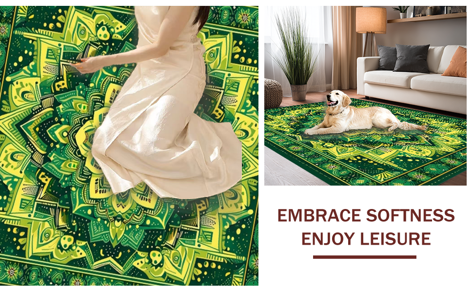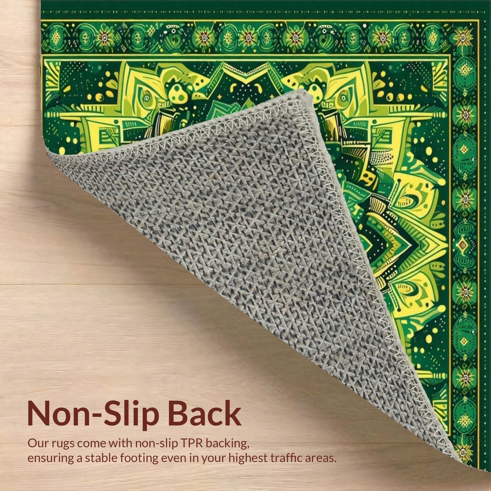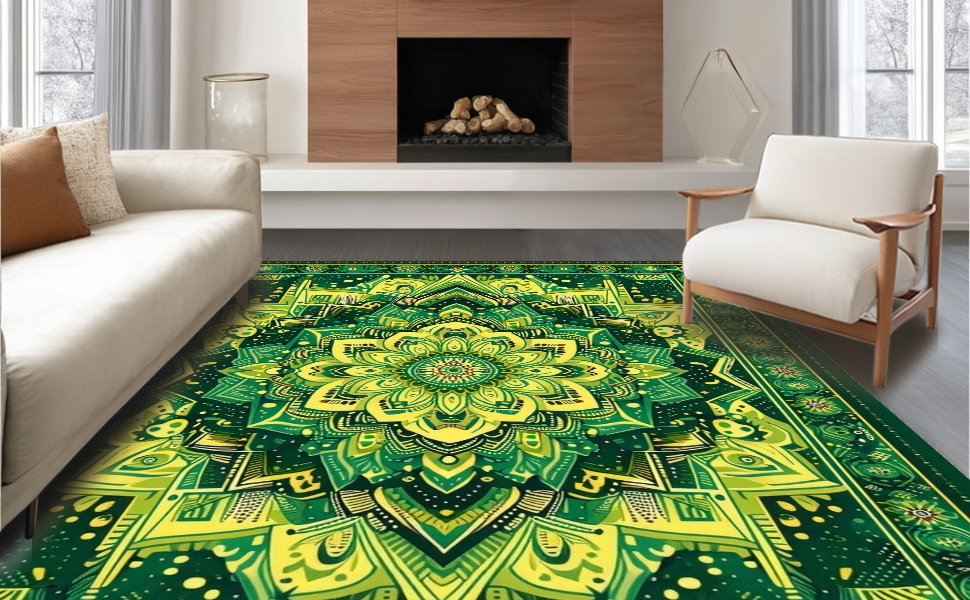 Ultra Soft Area Rug, Non Slip, Stain Resistant, Washable Area Rugs for Living Room, Bedroom, Contemporary Warm Tones Arrangement(Green) Overview: