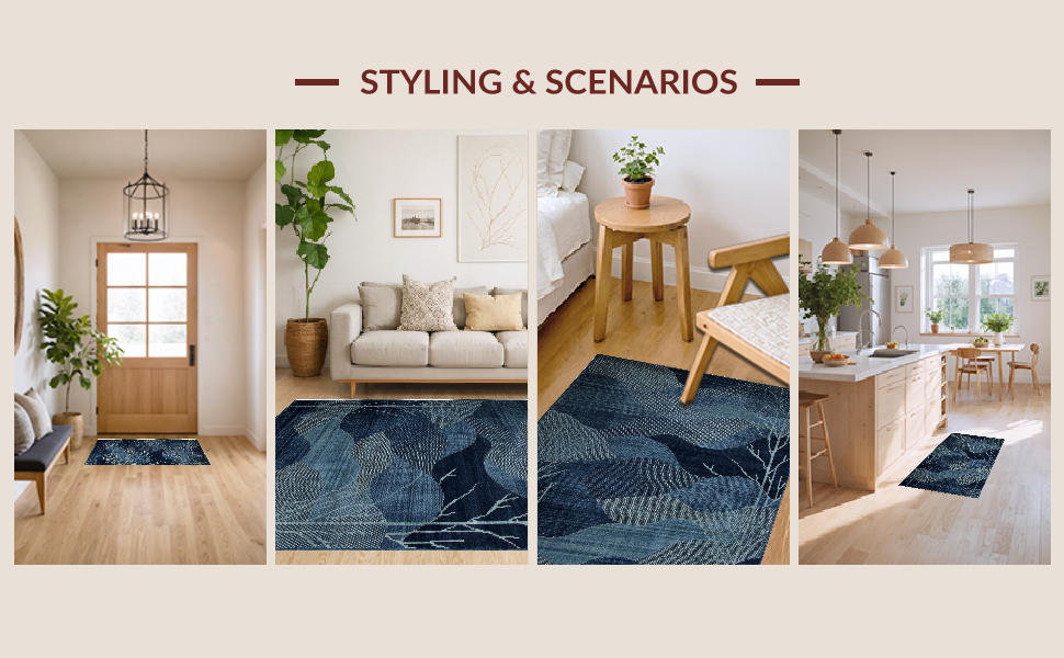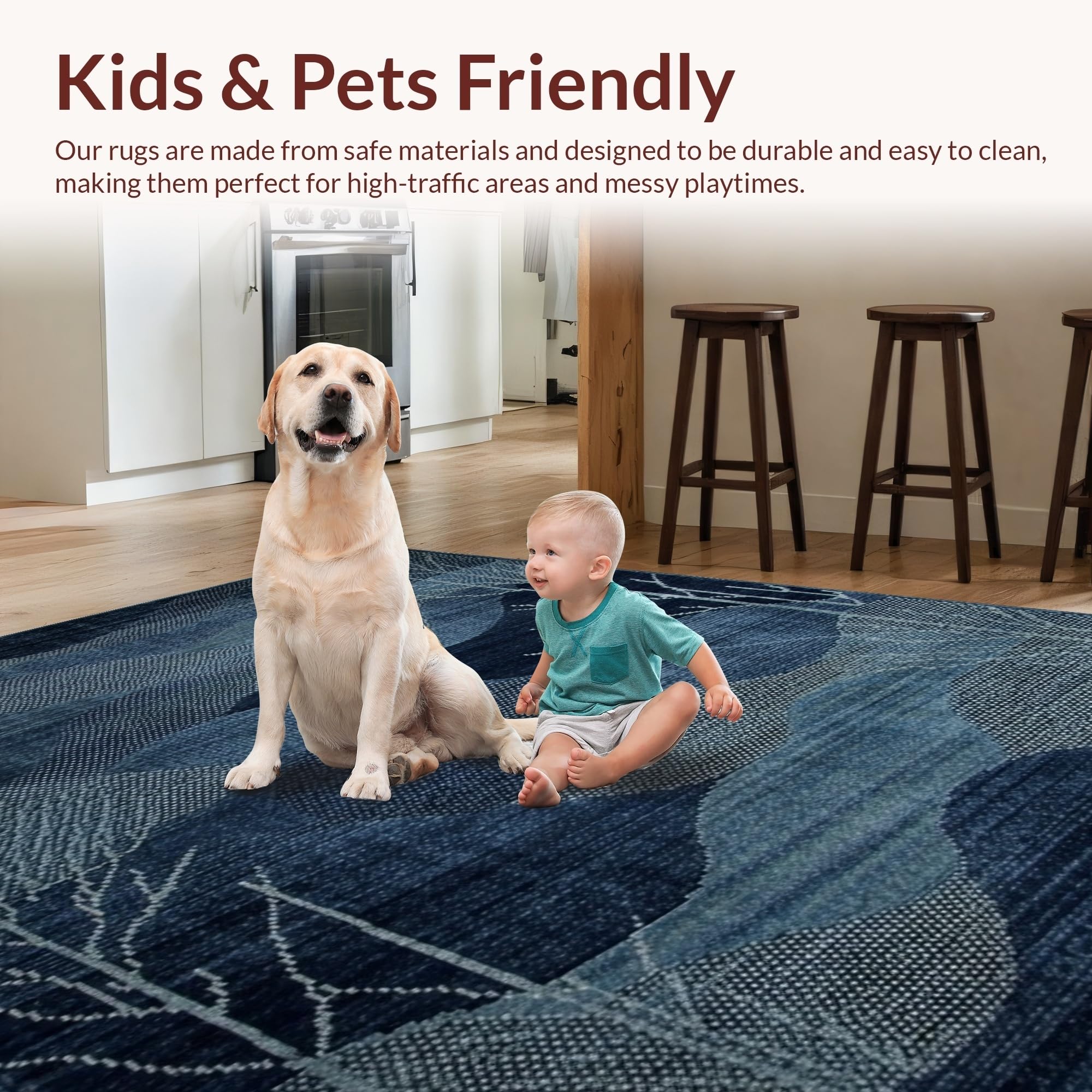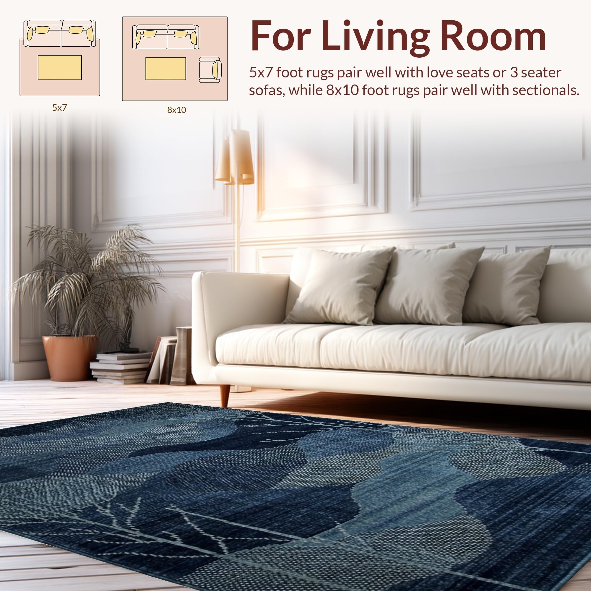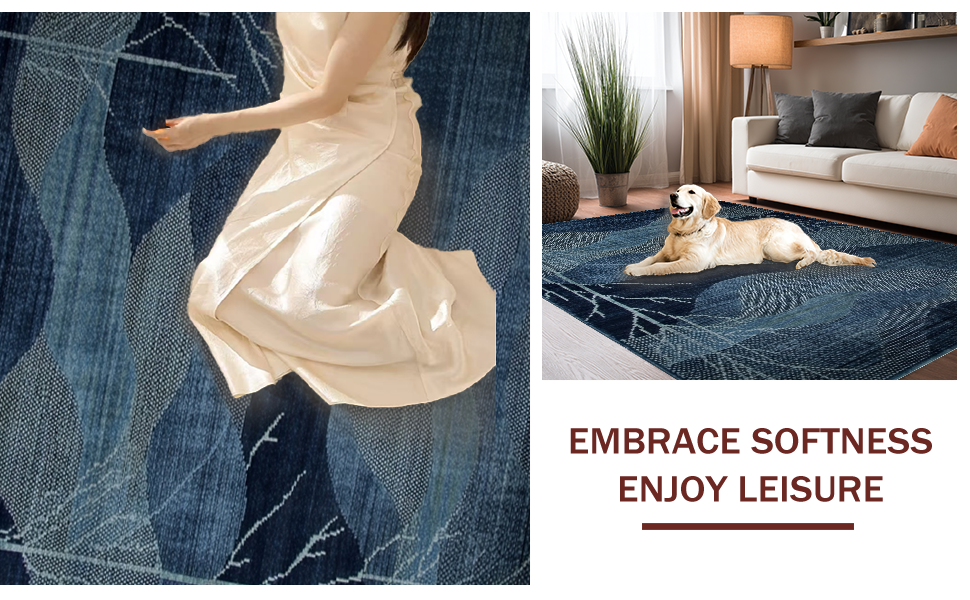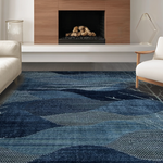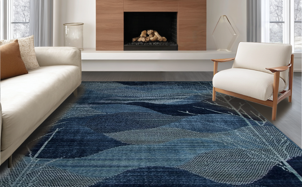 Ultra Soft Area Rug, Non Slip, Stain Resistant, Washable Area Rugs for Living Room, Bedroom, Contemporary Wave Textured Aesthetic(Blue) Overview: