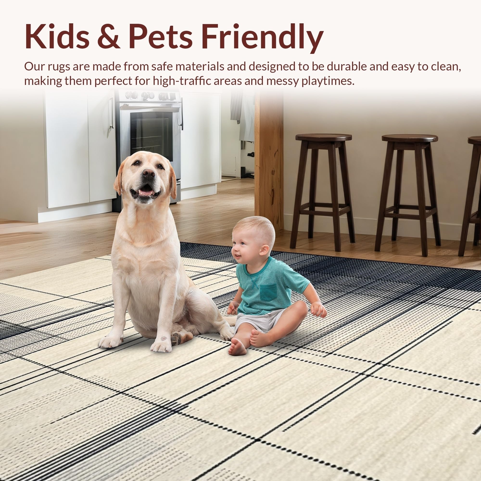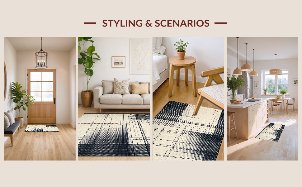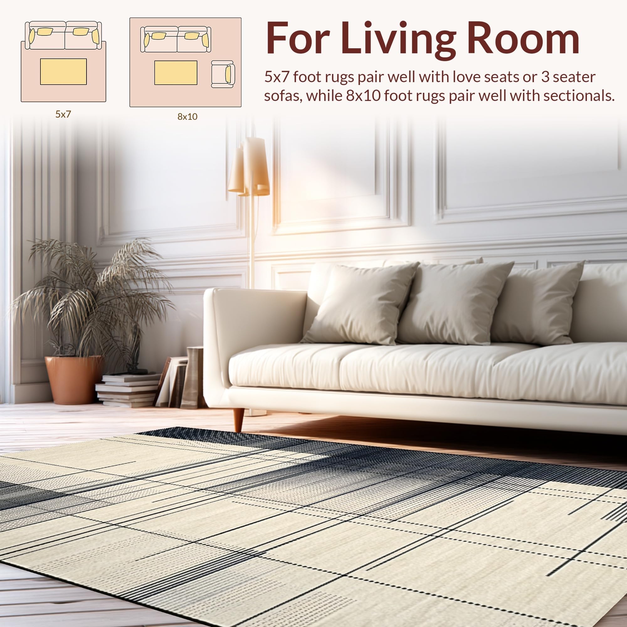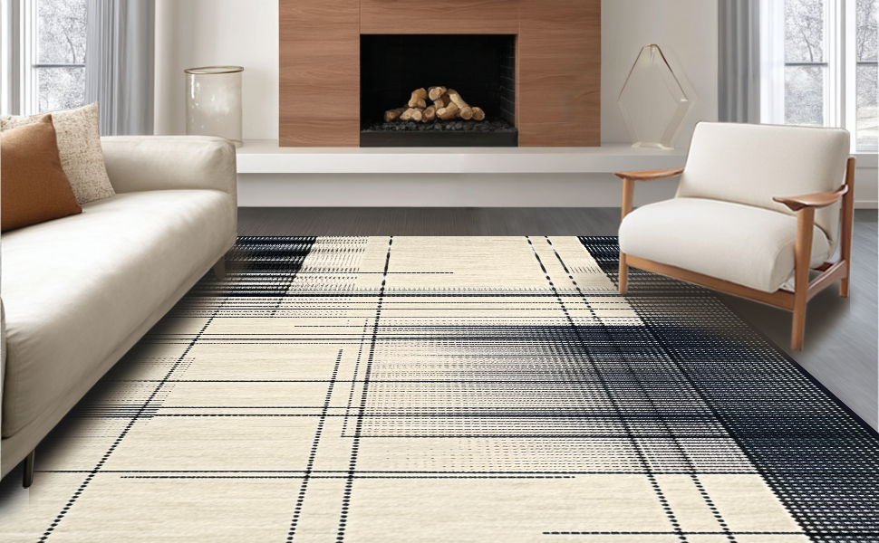 Ultra Soft Area Rug, Non Slip, Stain Resistant, Washable Area Rugs for Living Room, Bedroom, Contemporary White Patterned Surface(Beige) Overview: