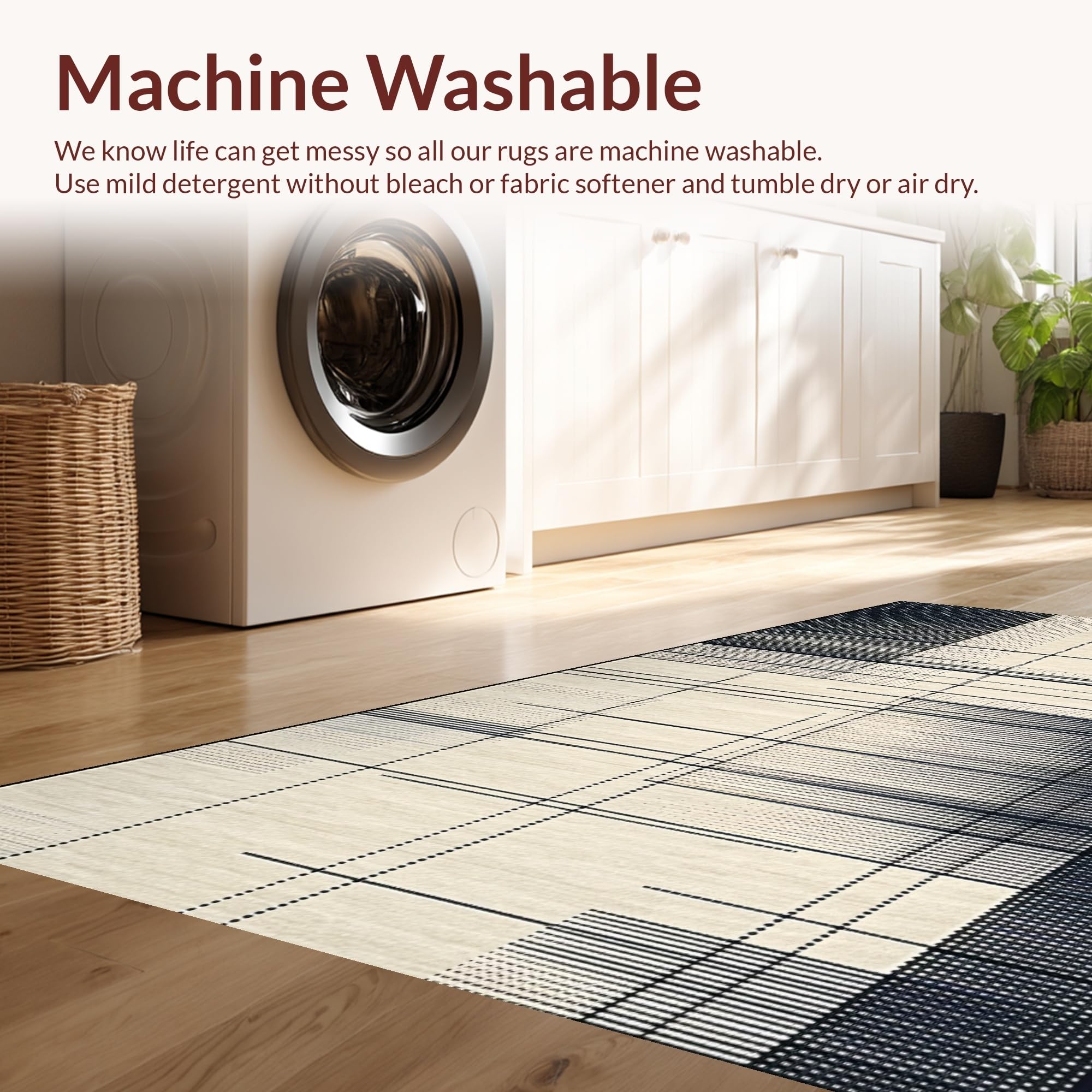 - Machine Washable: Our rugs can be easily thrown in the wash machine.