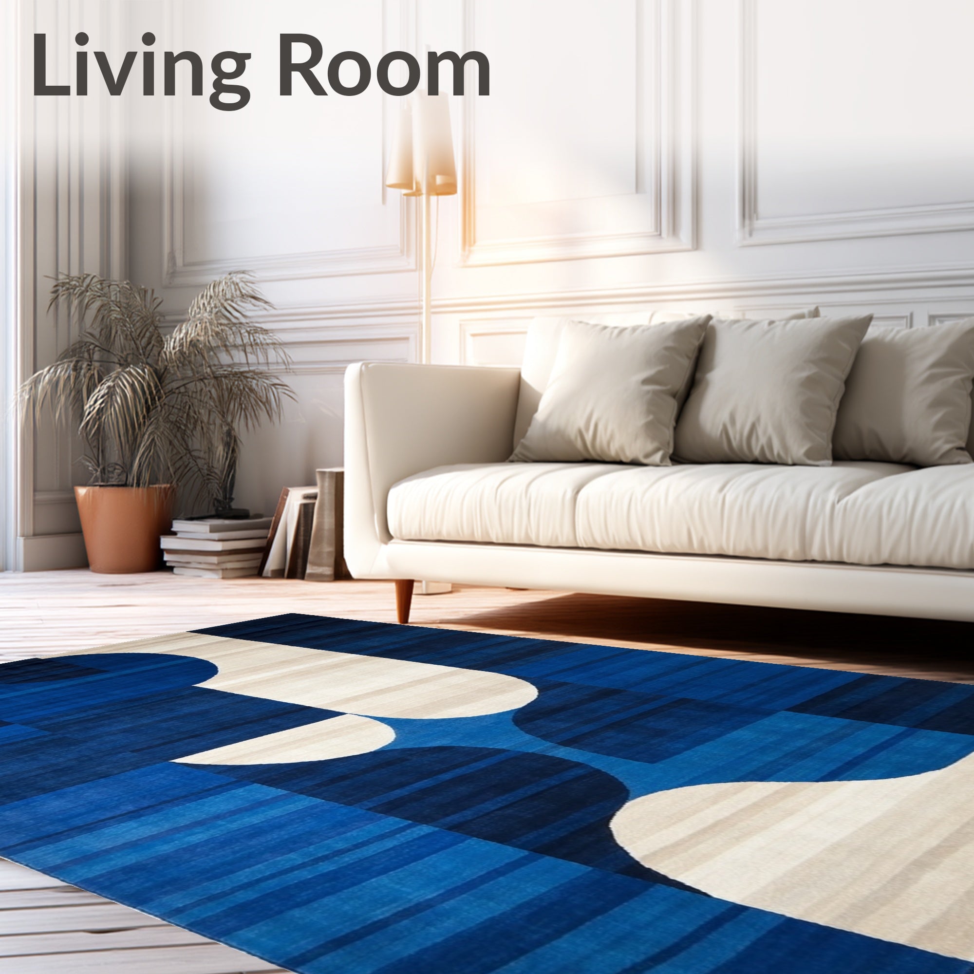 Ultra Soft Area Rug, Non Slip, Stain Resistant, Washable Area Rugs for Living Room, Bedroom, Contemporary Woven Area(Blue) Overview: