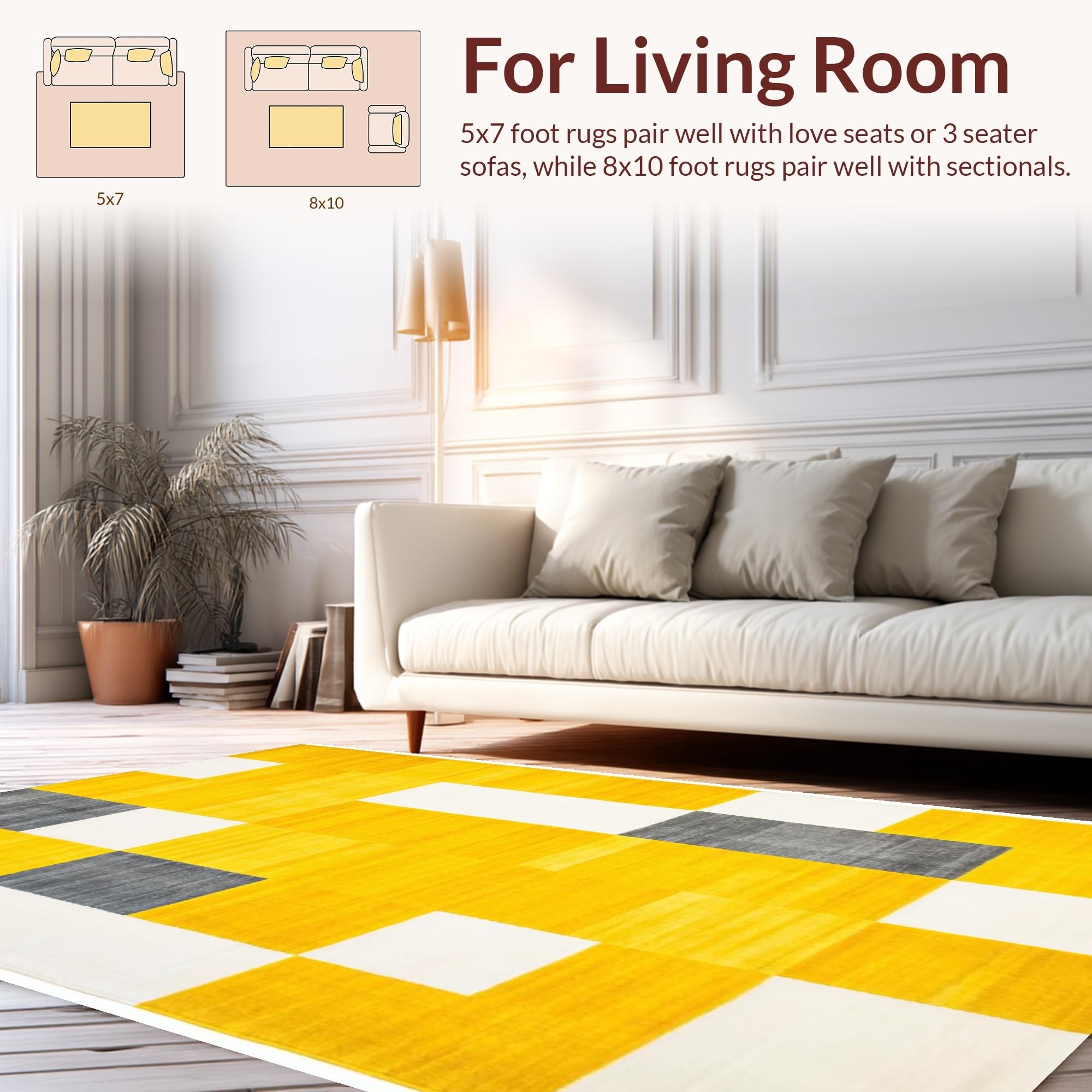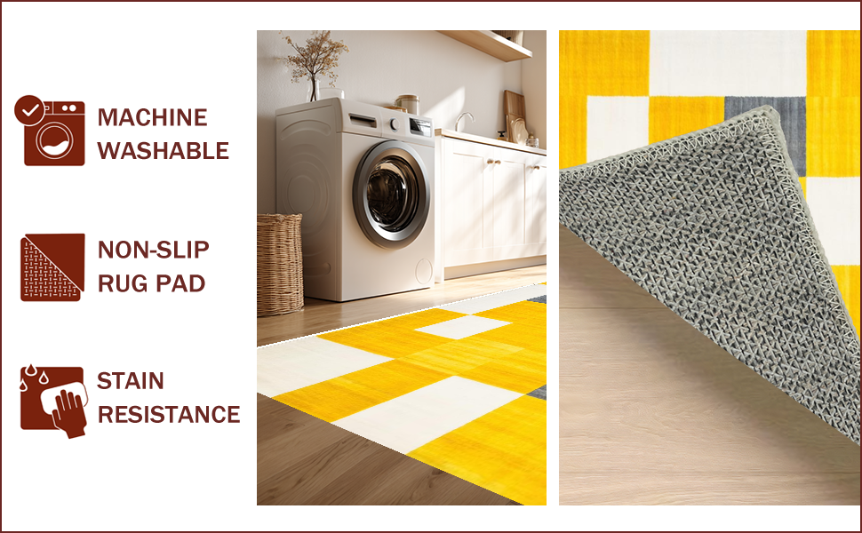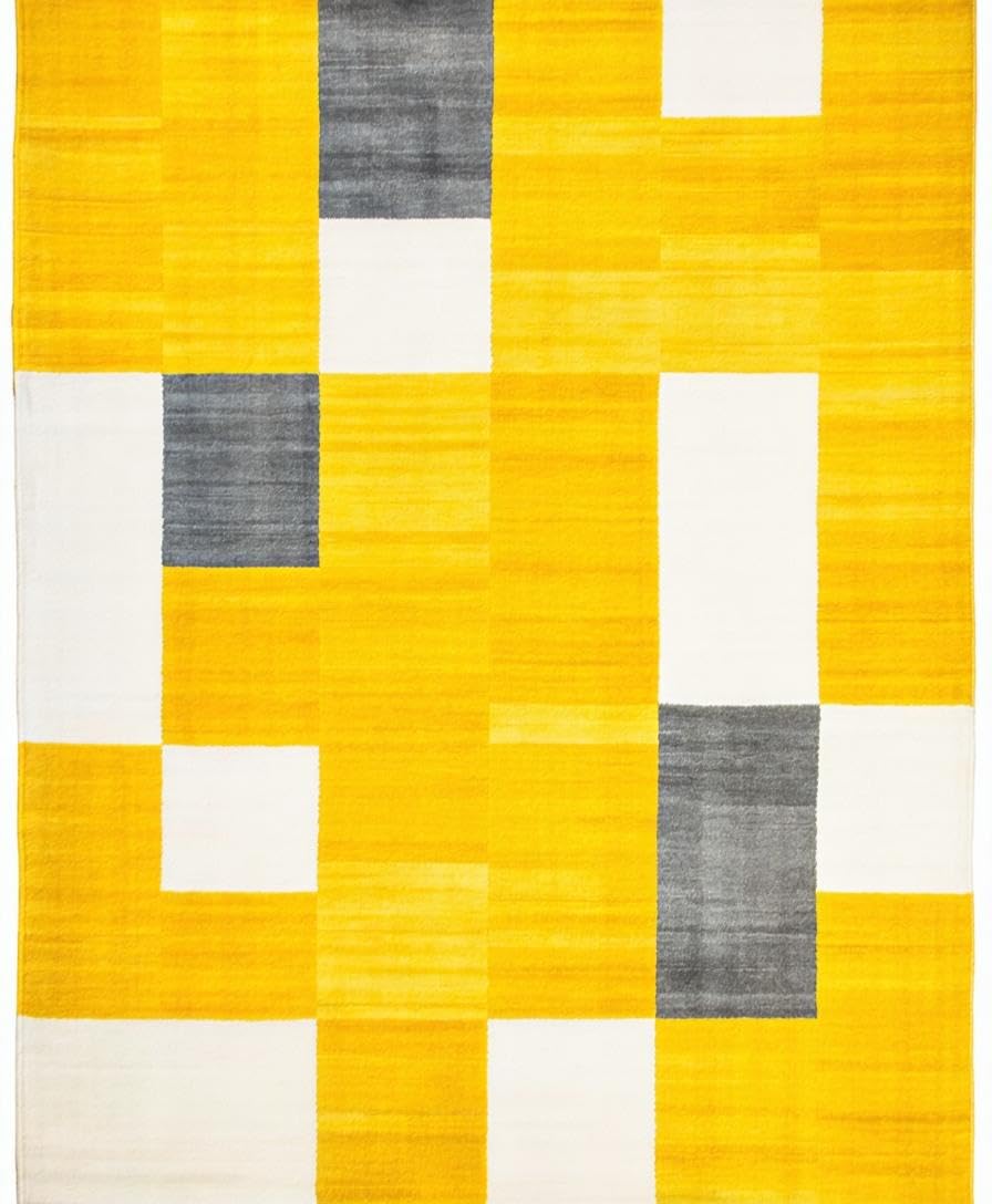 Ultra Soft Area Rug, Non Slip, Stain Resistant, Washable Area Rugs for Living Room, Bedroom, Contemporary Yellow Diamond Design(Yellow) Overview: