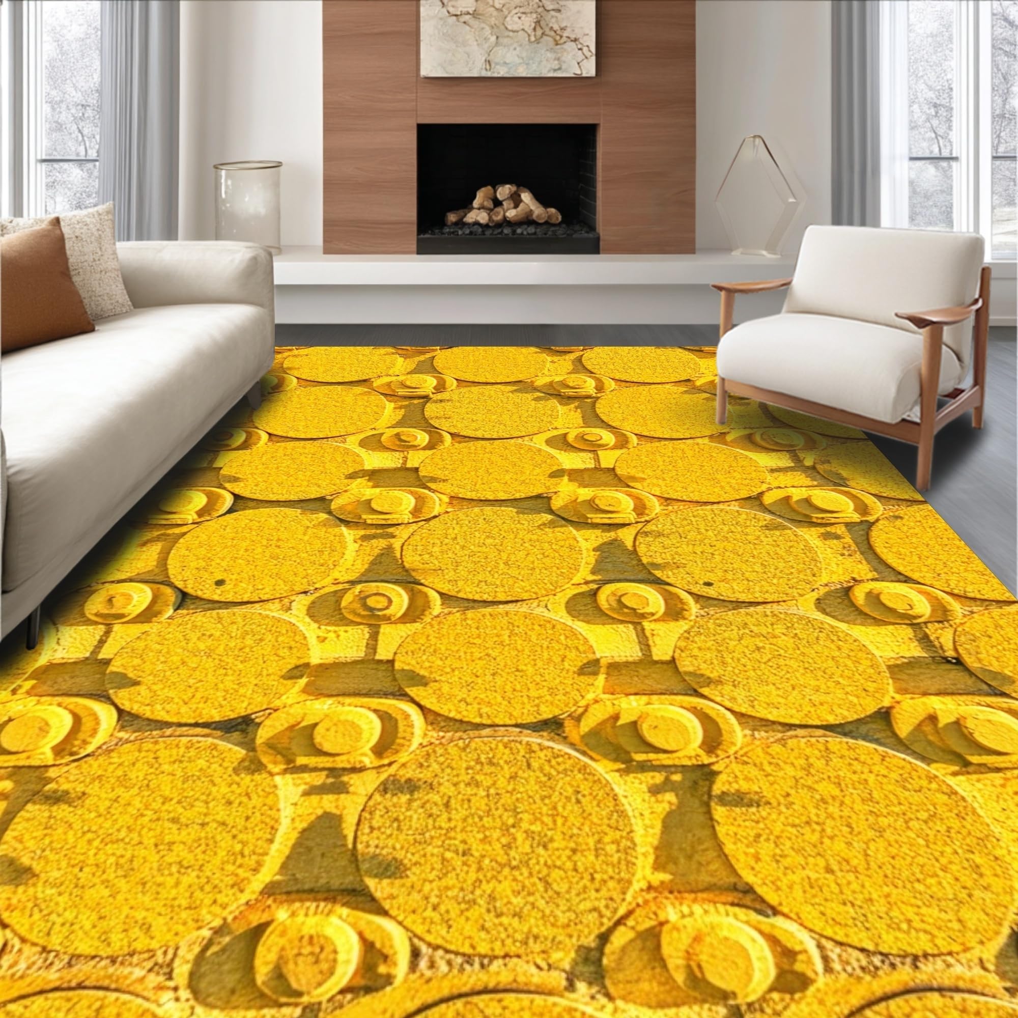 Ultra Soft Area Rug, Non Slip, Stain Resistant, Washable Area Rugs for Living Room, Bedroom, Contemporary Yellow Geometric Living Room Area Rug(Yellow) Overview: