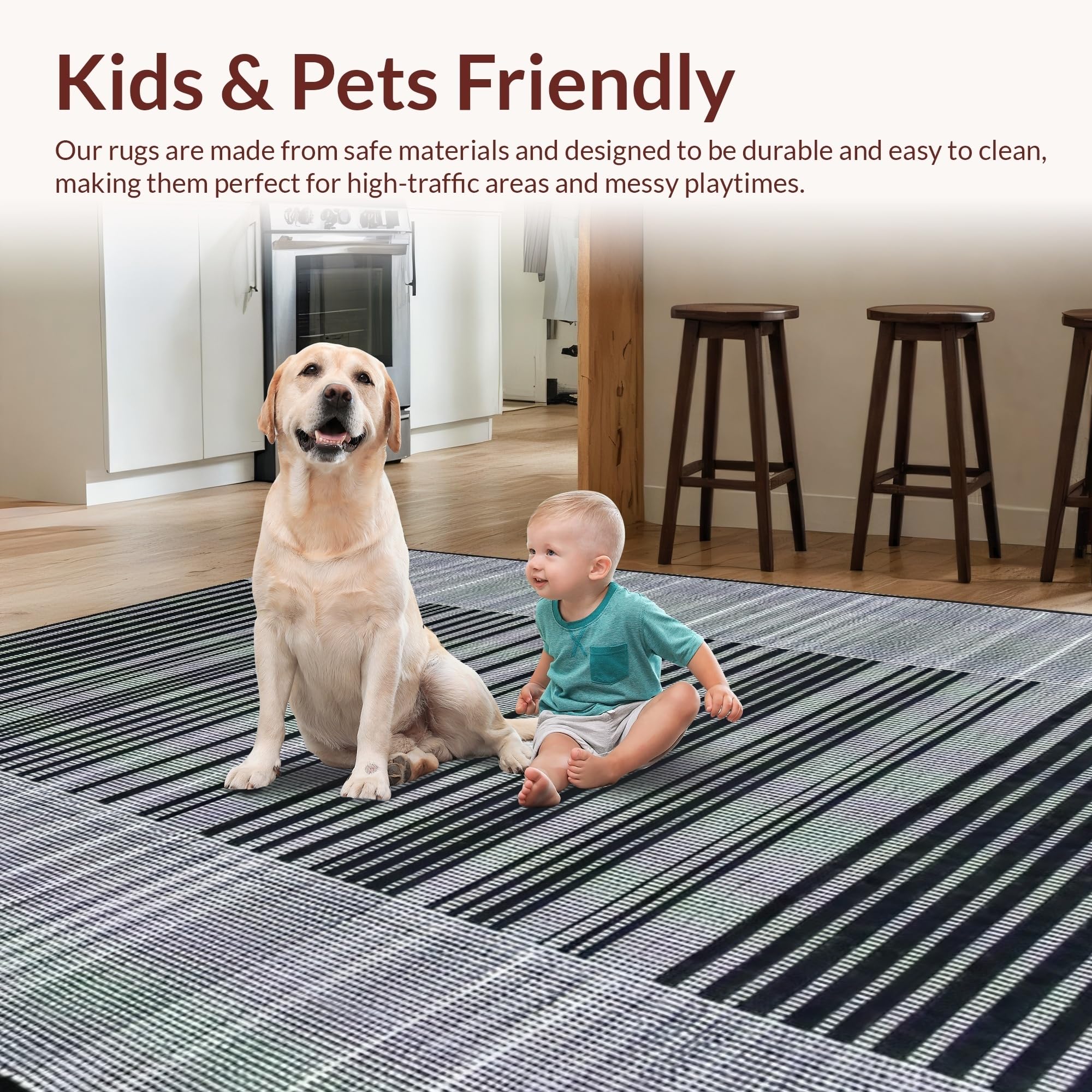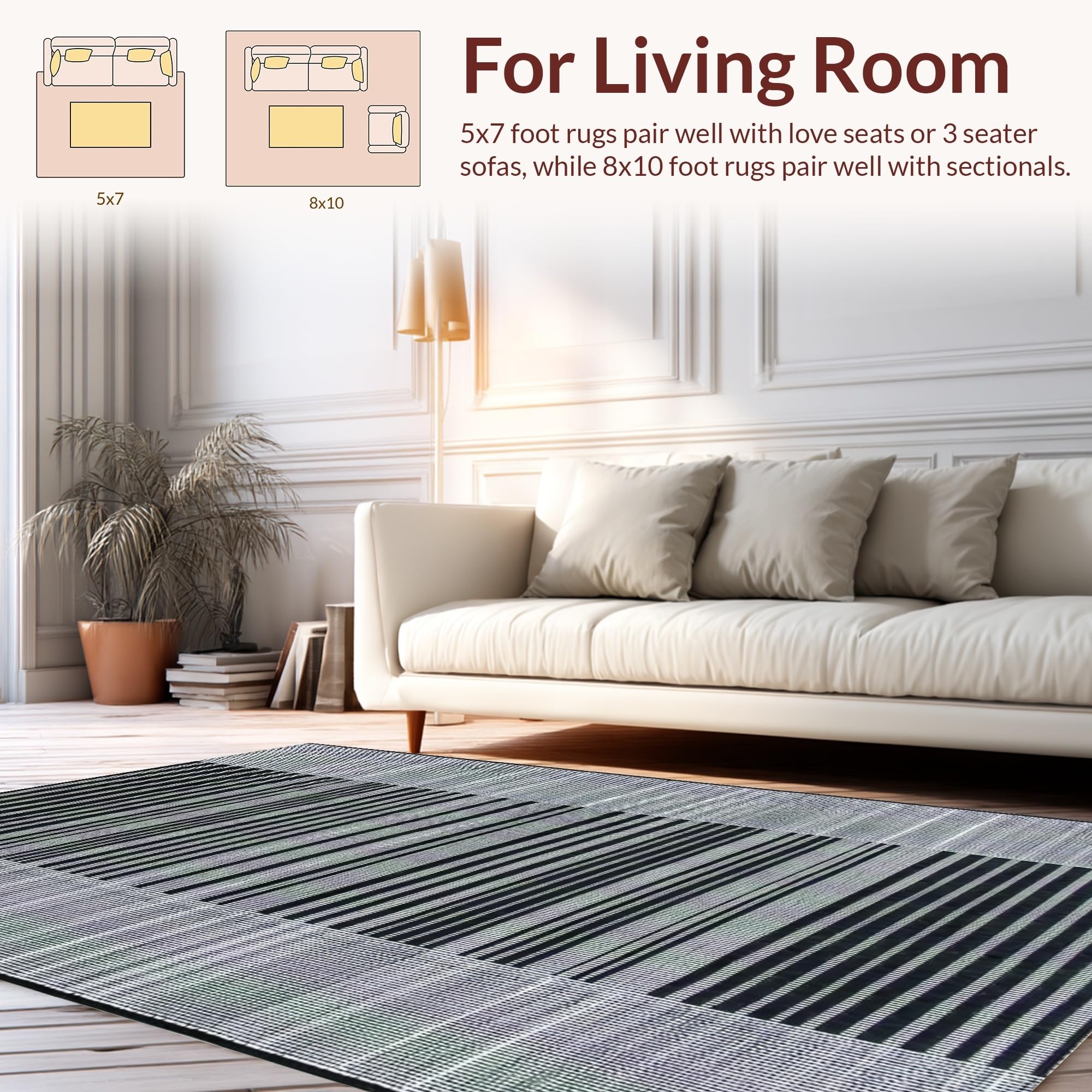 Ultra Soft Area Rug, Non Slip, Stain Resistant, Washable Area Rugs for Living Room, Bedroom, Contemporary Zebra Graphic Inspiration(Black) Overview: