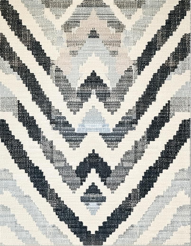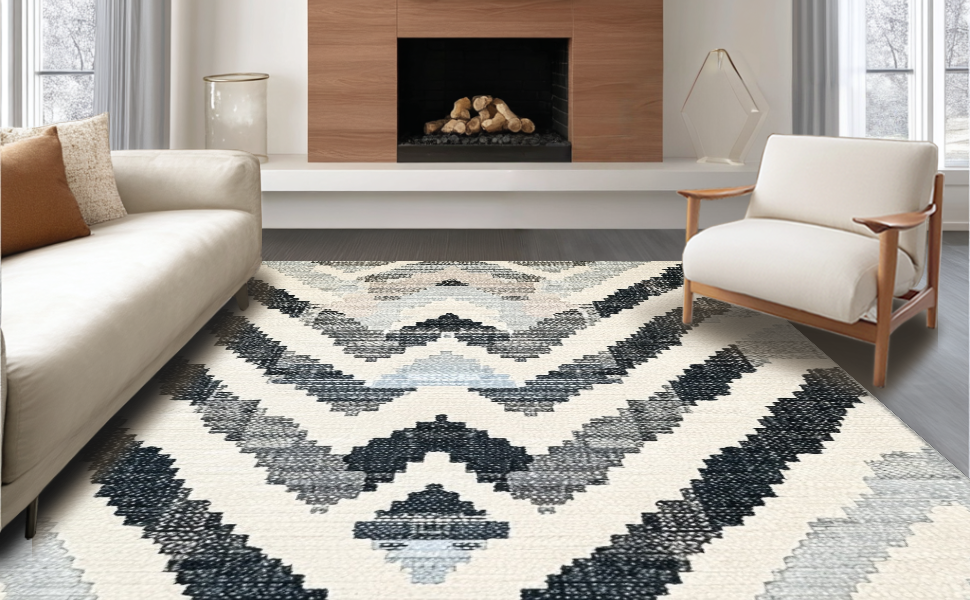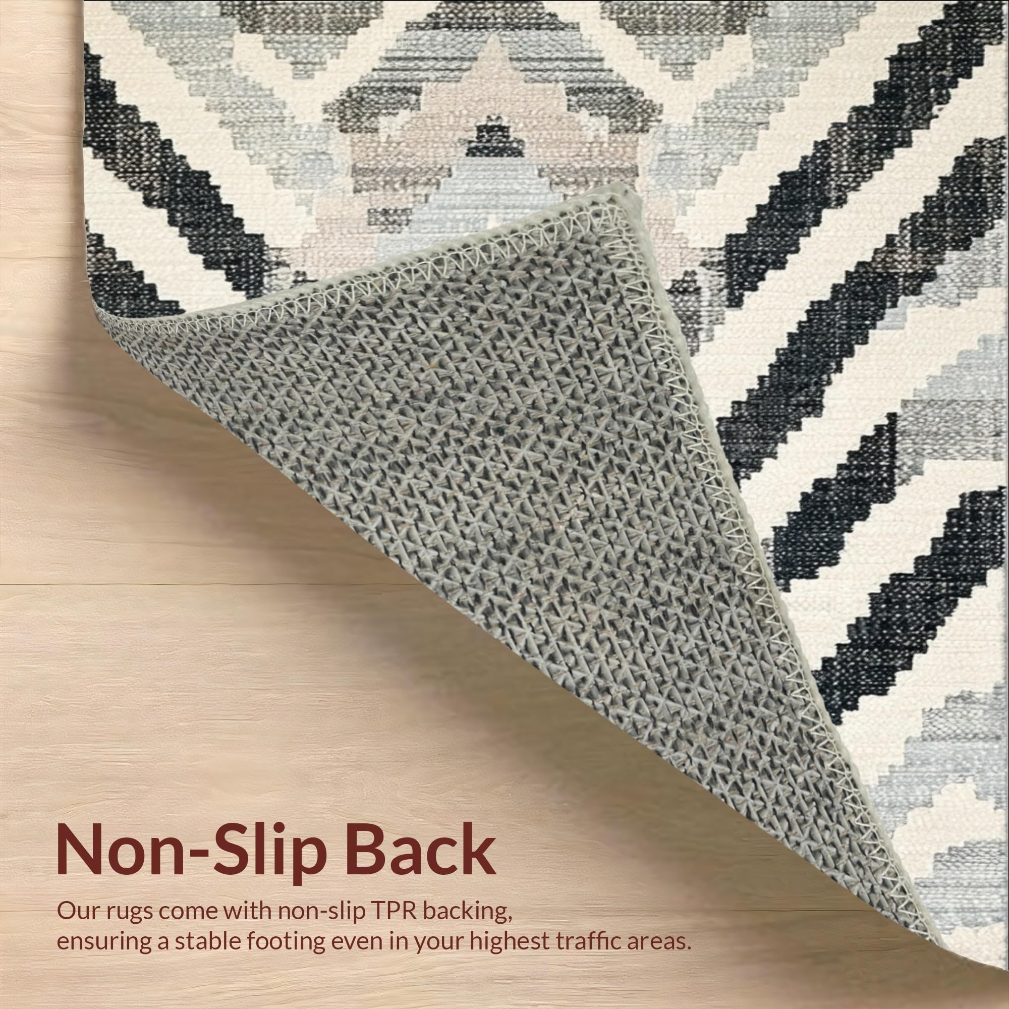 Ultra Soft Area Rug, Non Slip, Stain Resistant, Washable Area Rugs for Living Room, Bedroom, Contrast Weave: Black and White Zigzag Patterned Rug(Beige) Overview: