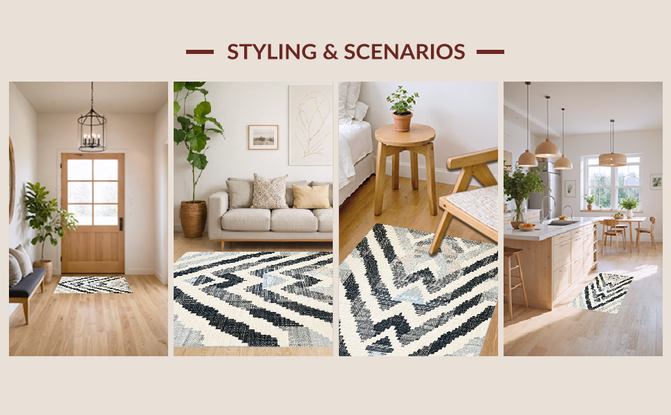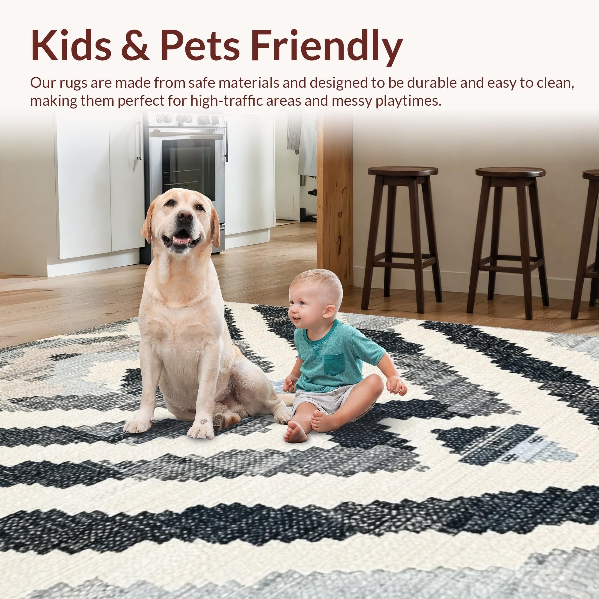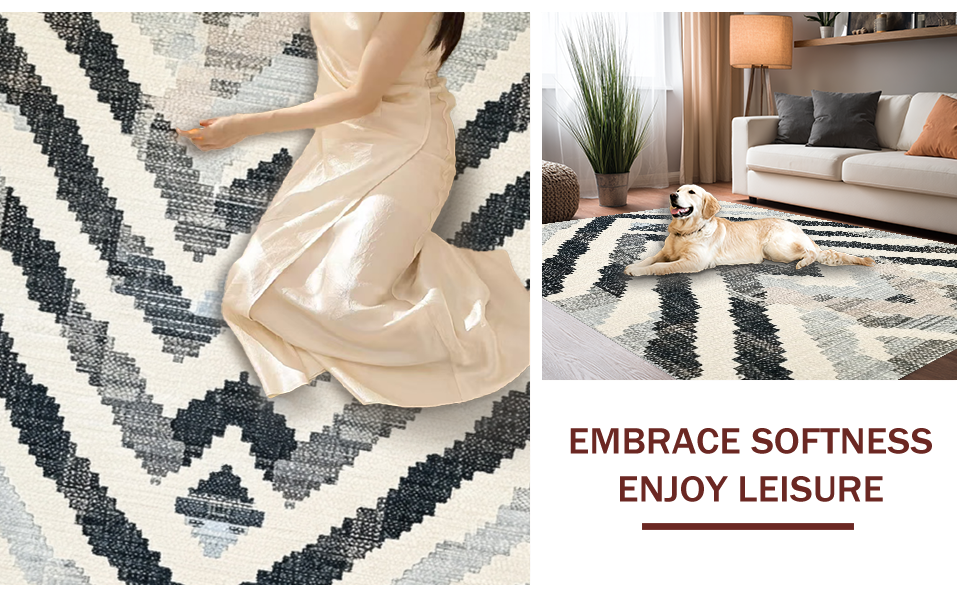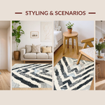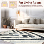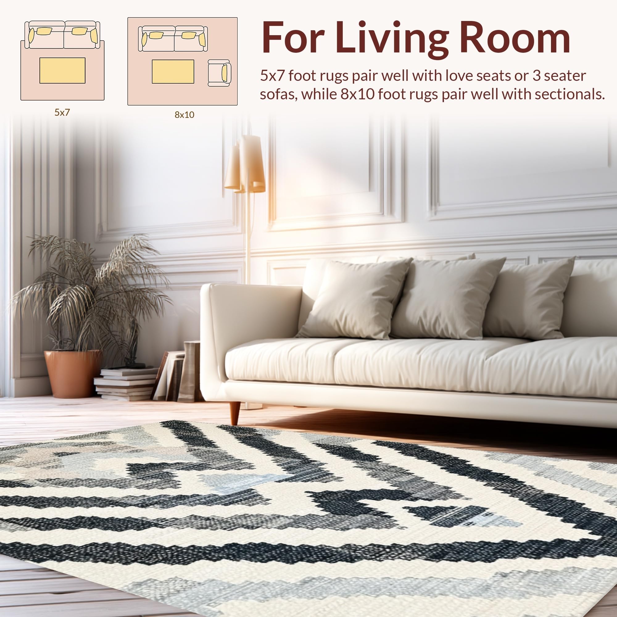 Ultra Soft Area Rug, Non Slip, Stain Resistant, Washable Area Rugs for Living Room, Bedroom, Contrast Weave: Black and White Zigzag Patterned Rug(Beige) Overview: