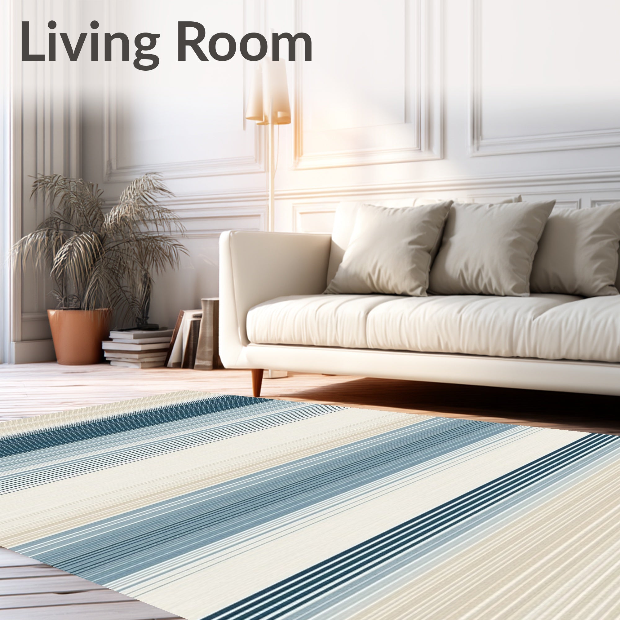 Ultra Soft Area Rug, Non Slip, Stain Resistant, Washable Area Rugs for Living Room, Bedroom, Cordural Stripe Harmony Area with Linear Motif and Subtle Contrast Design(Blue) Overview: