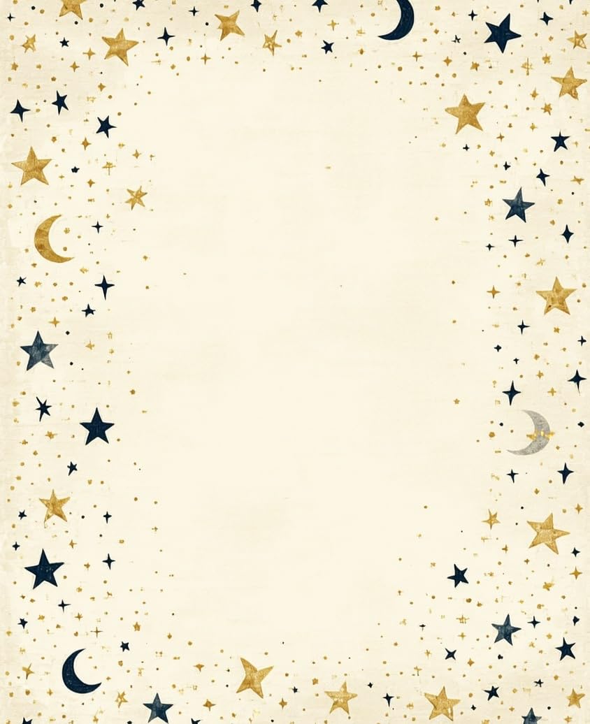 Cosmic Dance Beige Half Moon Area with Star Motifs Witchy(Beige)