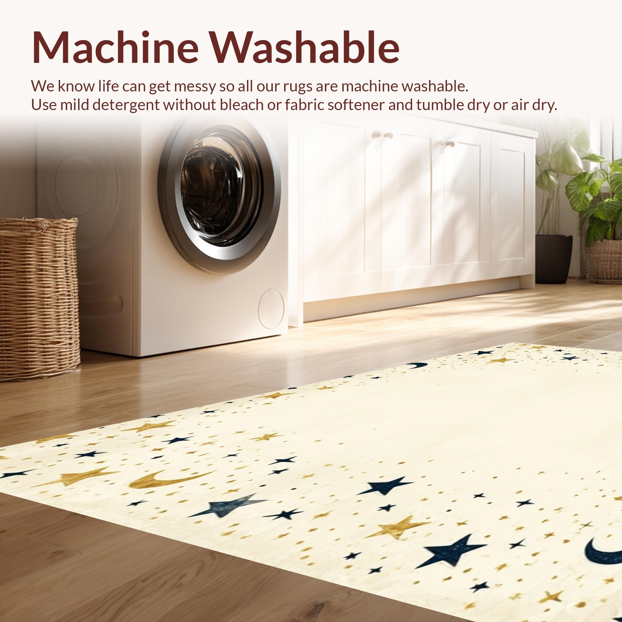 - Machine Washable: Our rugs can be easily thrown in the wash machine.