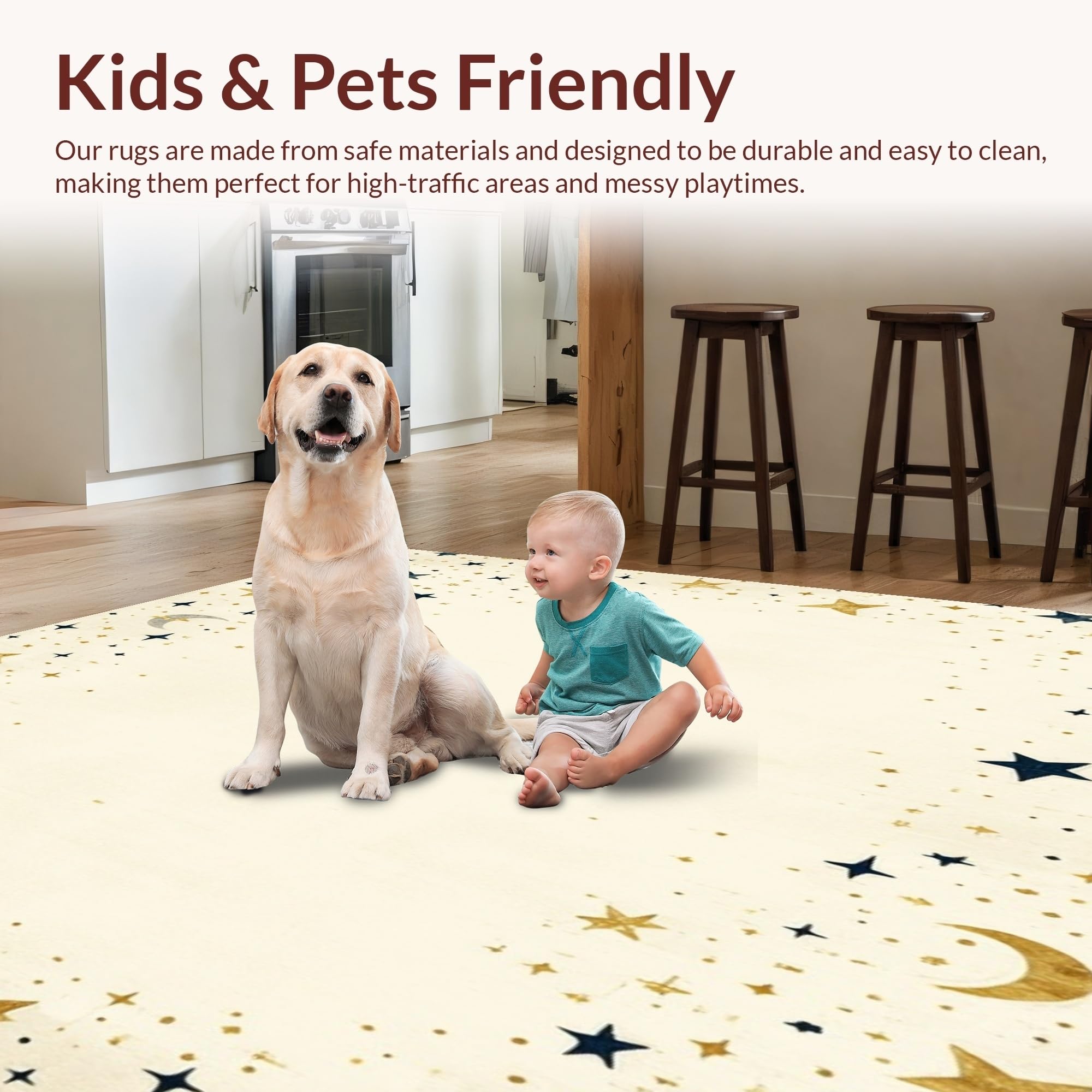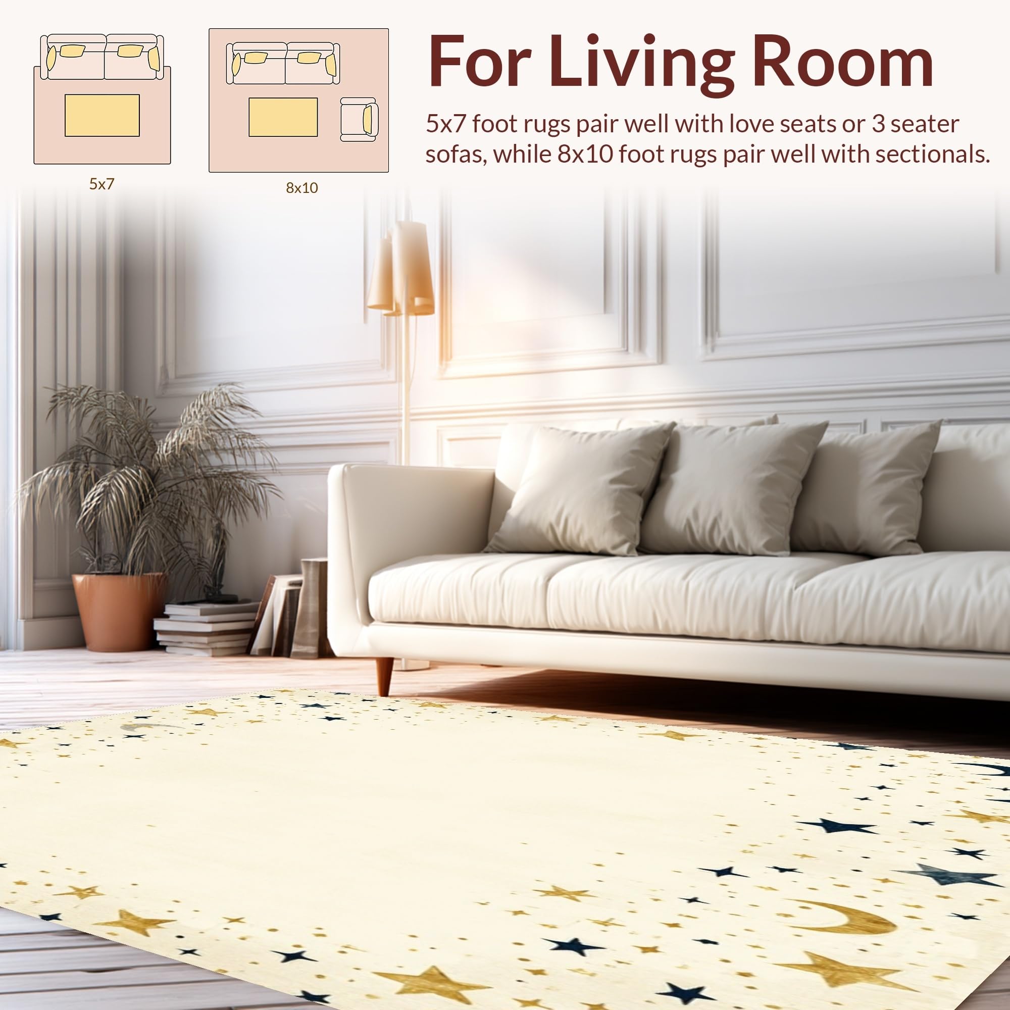 Ultra Soft Area Rug, Non Slip, Stain Resistant, Washable Area Rugs for Living Room, Bedroom, Cosmic Dance Beige Half Moon Area with Star Motifs Witchy(Beige) Overview: