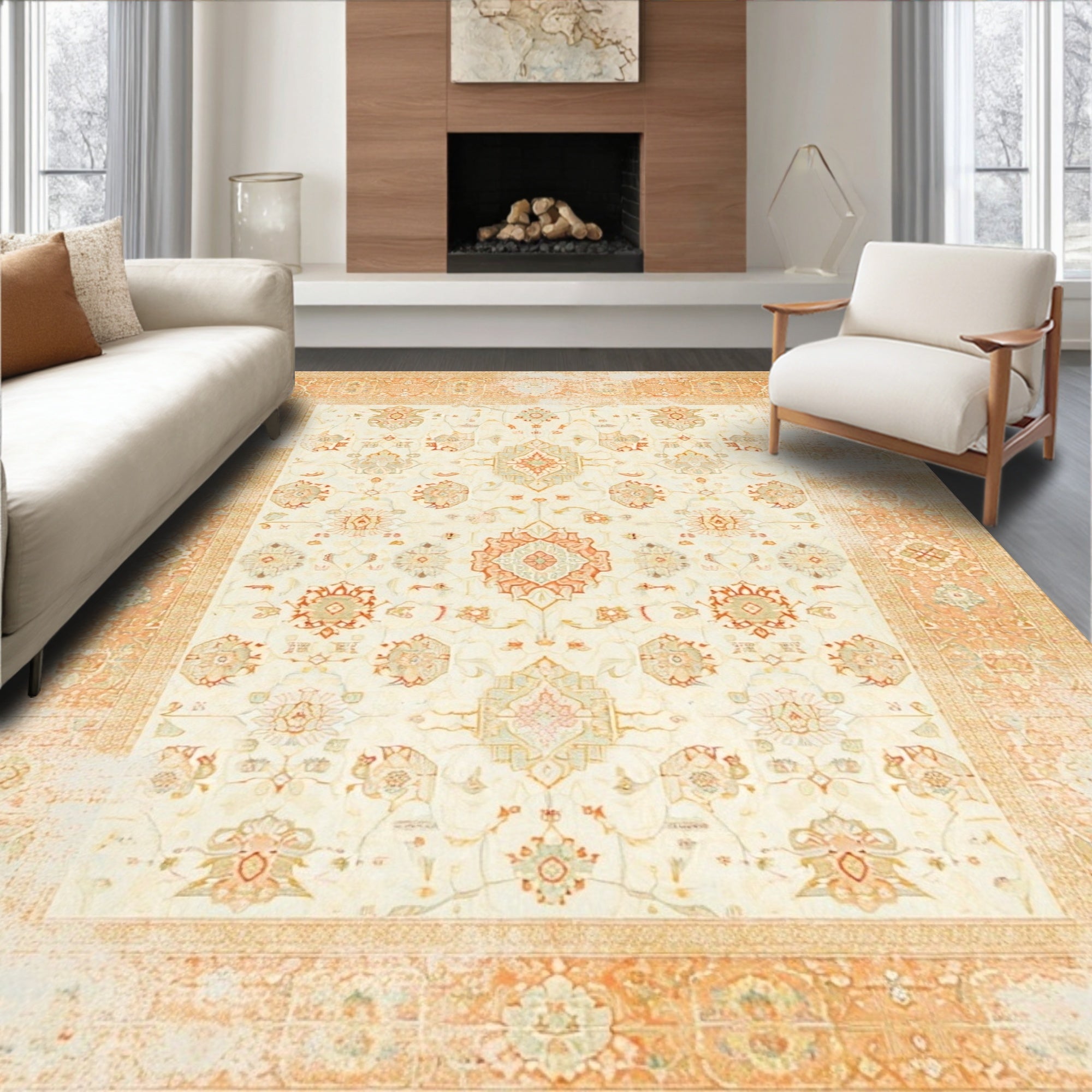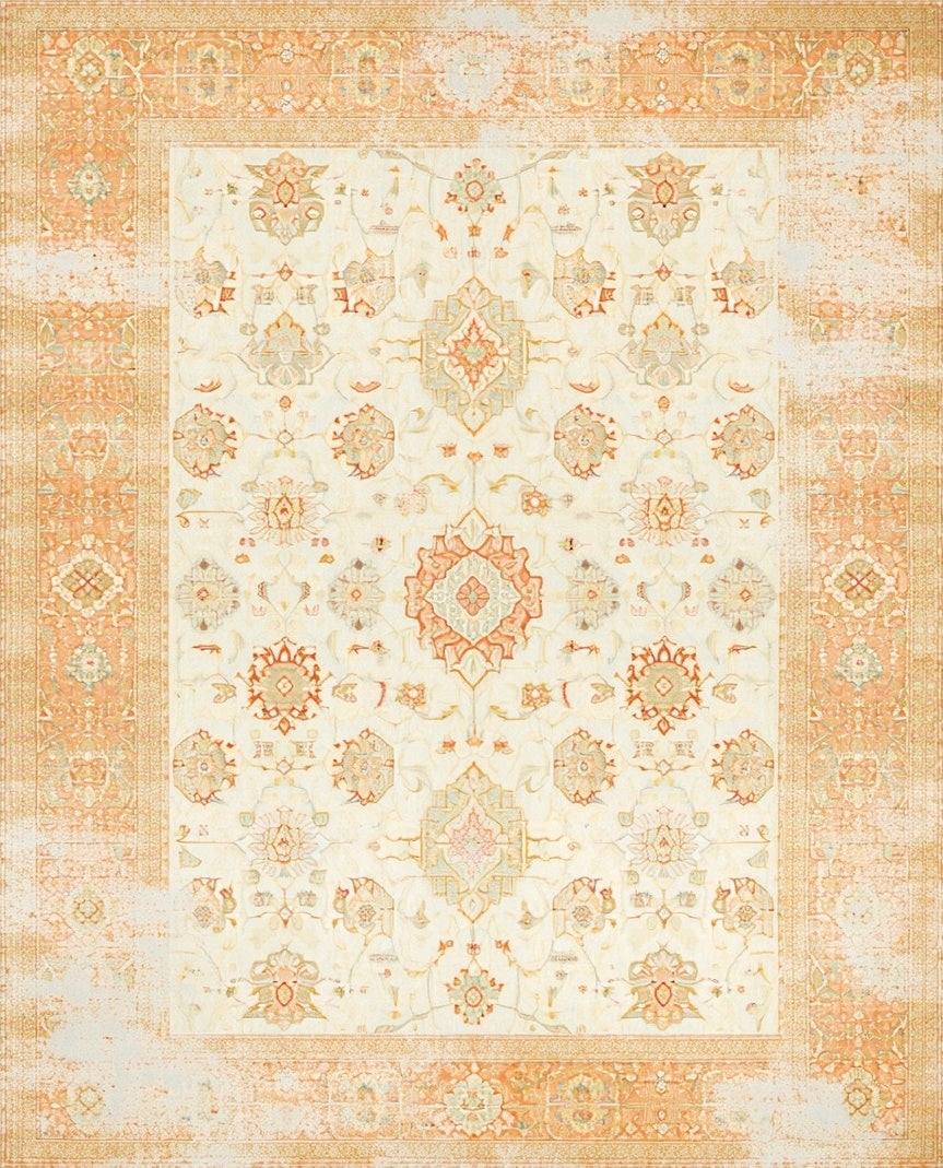 Ultra Soft Area Rug, Non Slip, Stain Resistant, Washable Area Rugs for Living Room, Bedroom, Cottage Charm with Faded Ornamental and Diamond Motifs(Beige) Overview: