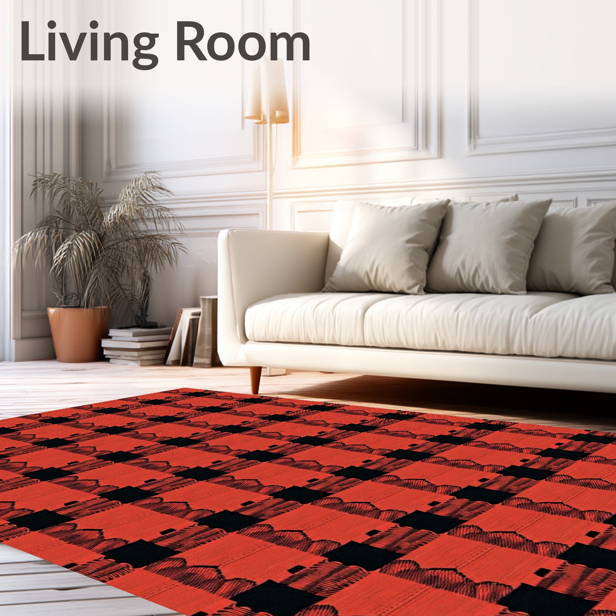 Ultra Soft Area Rug, Non Slip, Stain Resistant, Washable Area Rugs for Living Room, Bedroom, Country Gingham Crisscross Lattice Harvest Festival Accessory(Red) Overview: