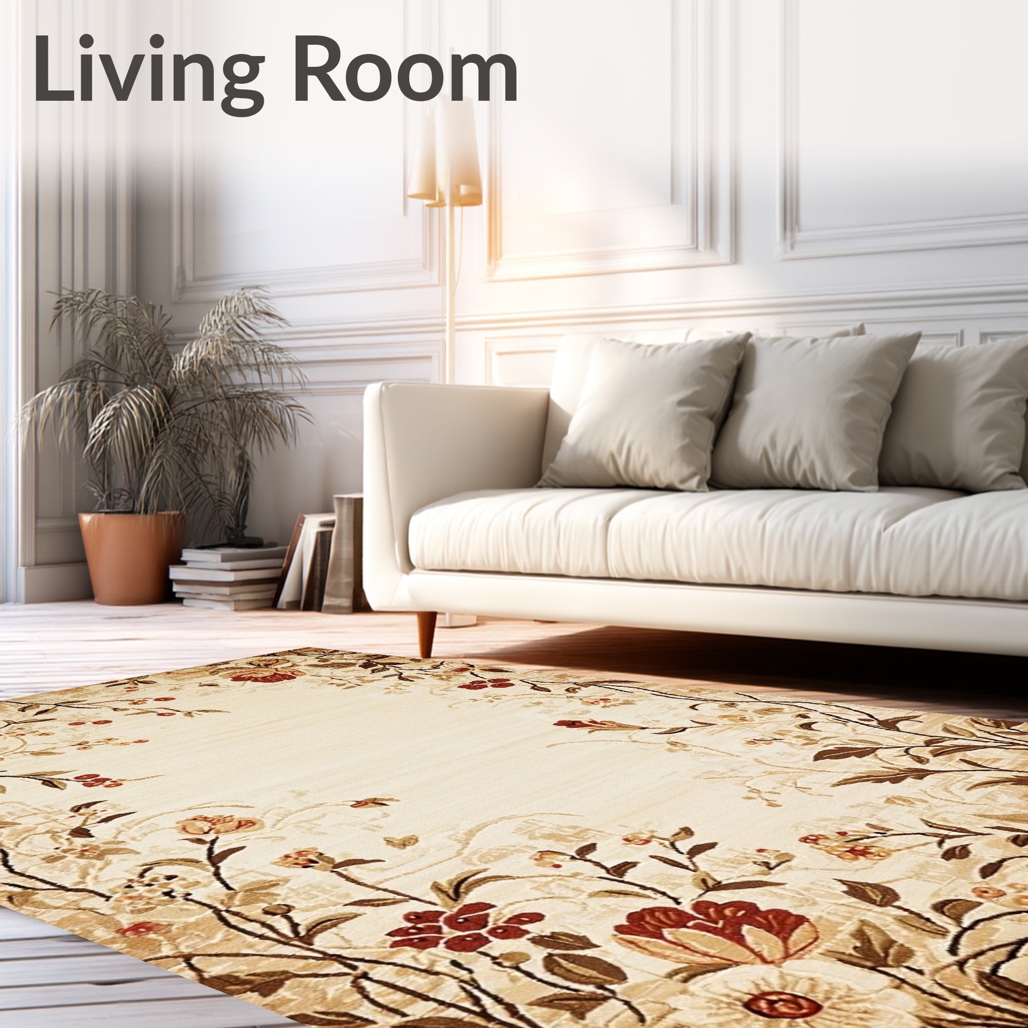 Ultra Soft Area Rug, Non Slip, Stain Resistant, Washable Area Rugs for Living Room, Bedroom, Countryside Collection Rustic Floral Medley Design(Beige) Overview: