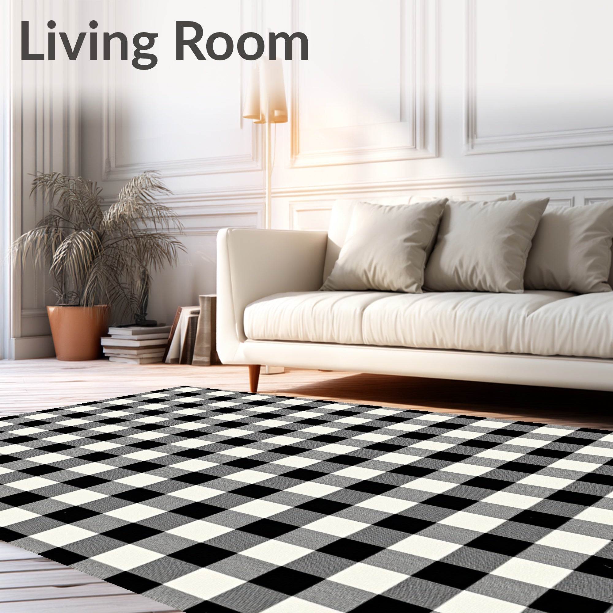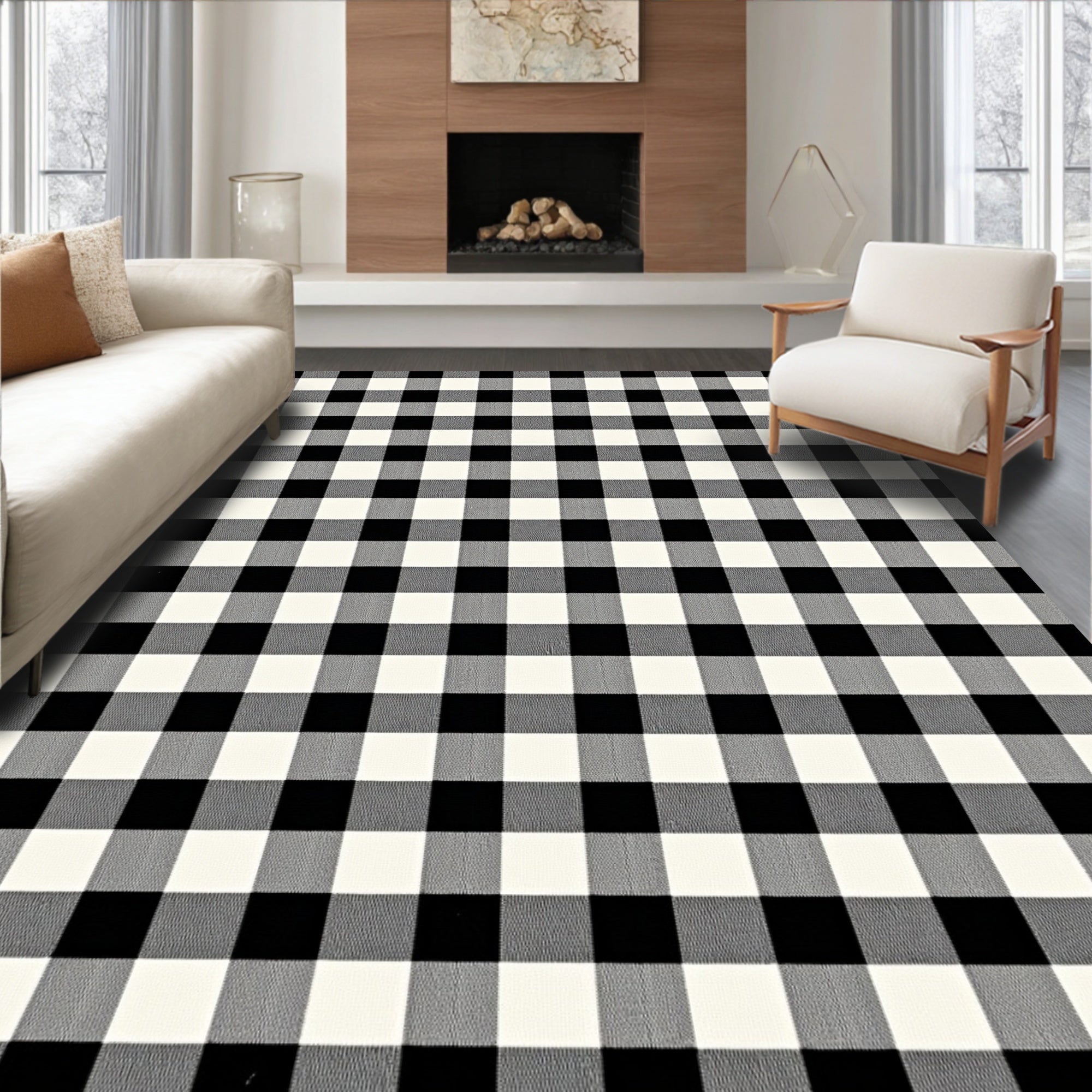 Ultra Soft Area Rug, Non Slip, Stain Resistant, Washable Area Rugs for Living Room, Bedroom, Countryside Harvest Gingham Patterned Welcoming Doorstep(Black) Overview: